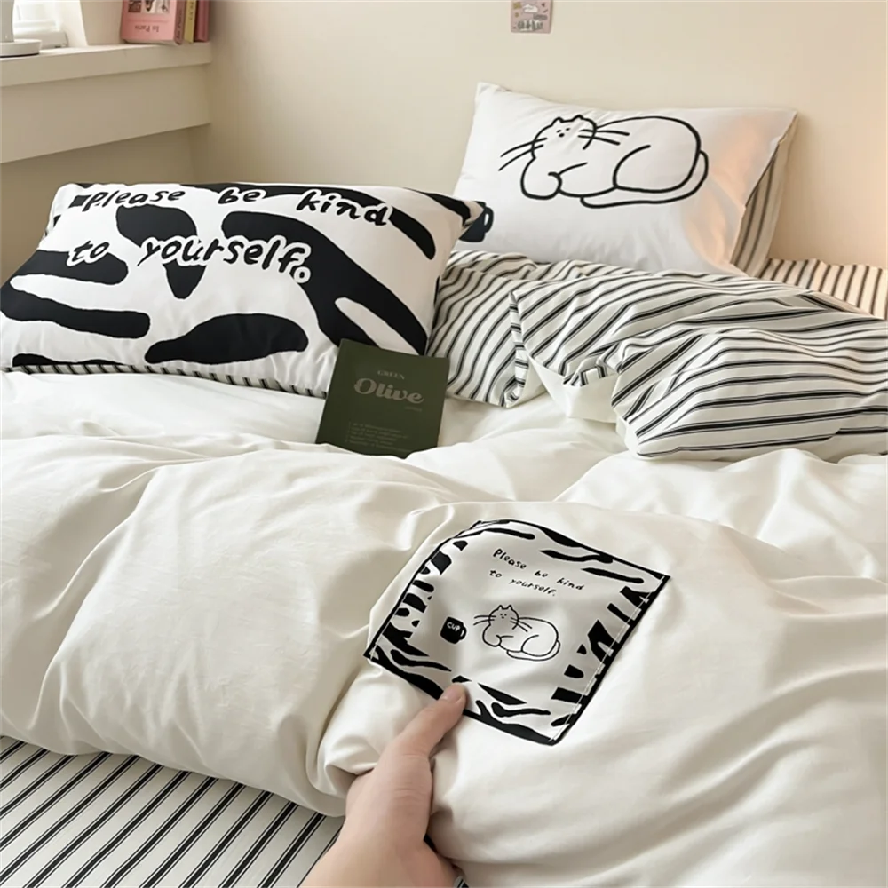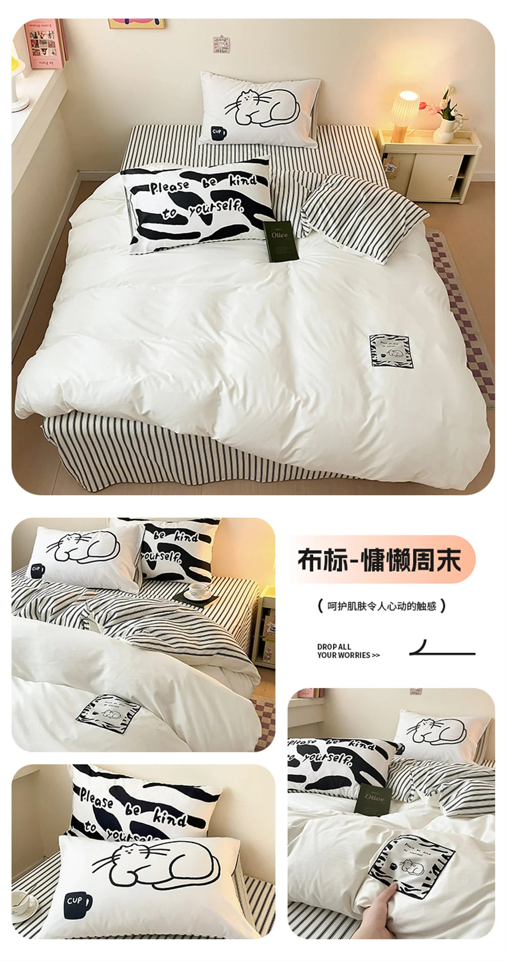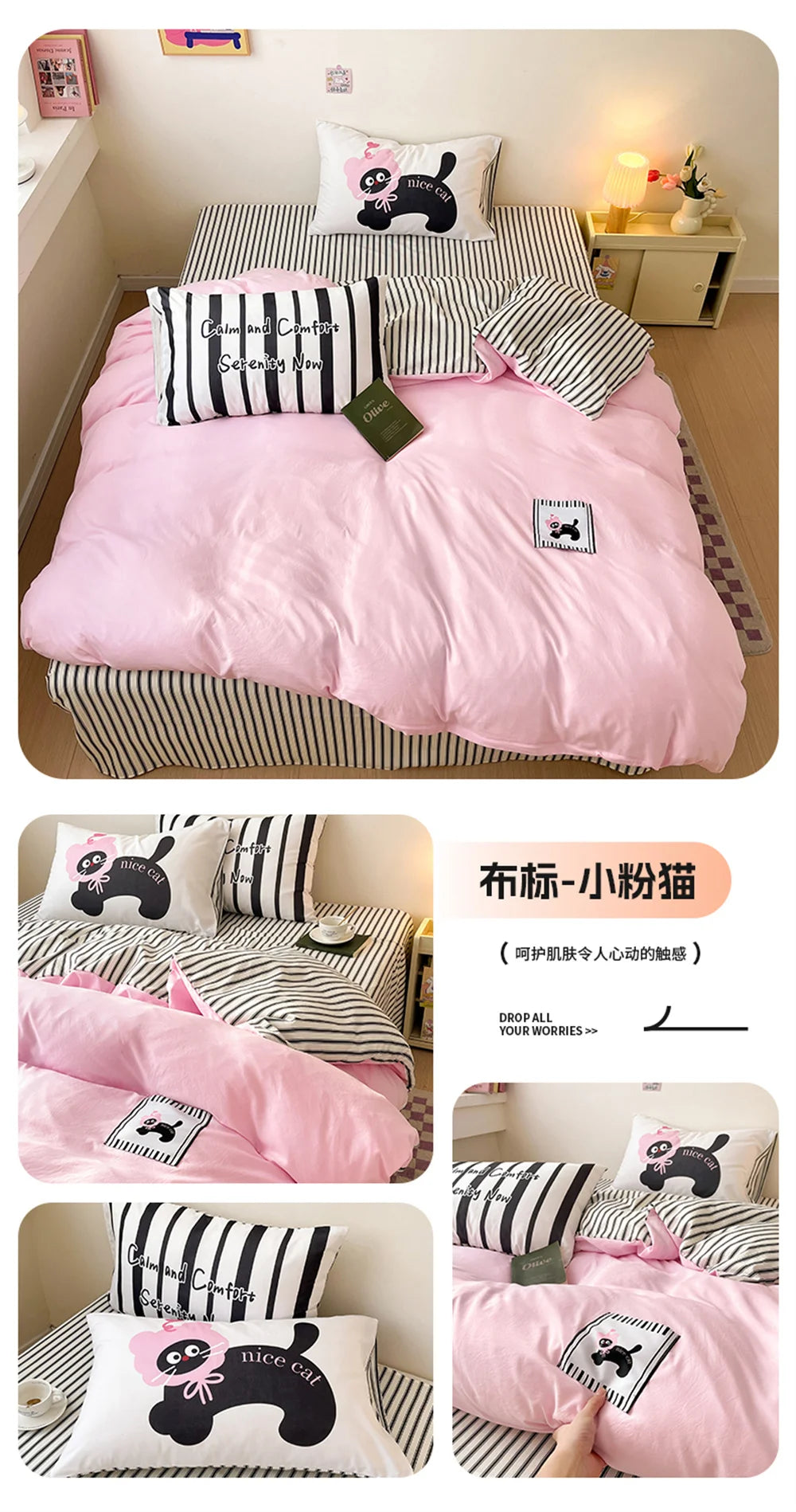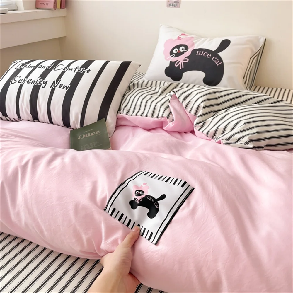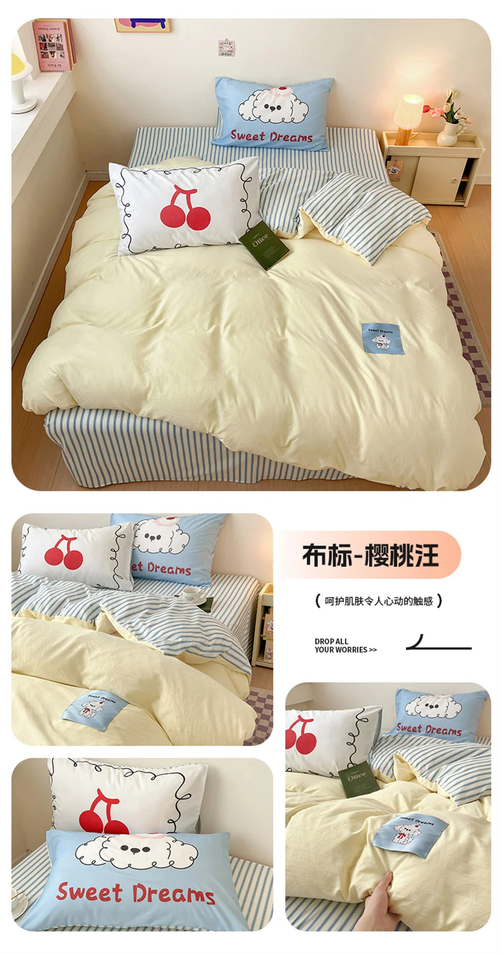 Kawaii Cartoon Dog Washed Cotton Bedding Set for Girl Boys Skin-friendly Duvet Cover Set with Sheet Soft Comfortable Quilt Cover