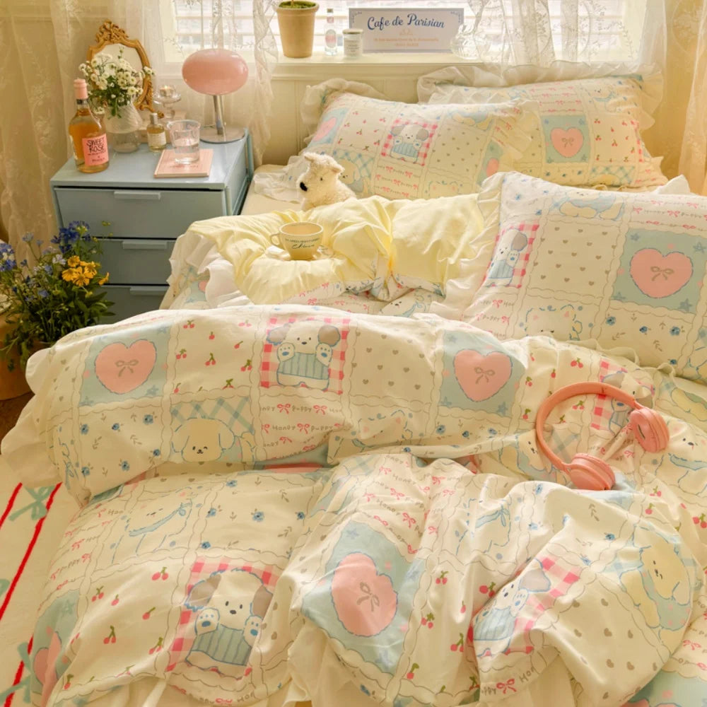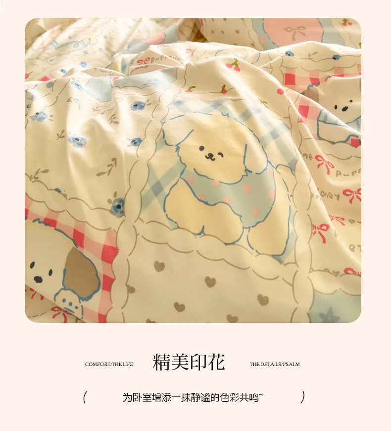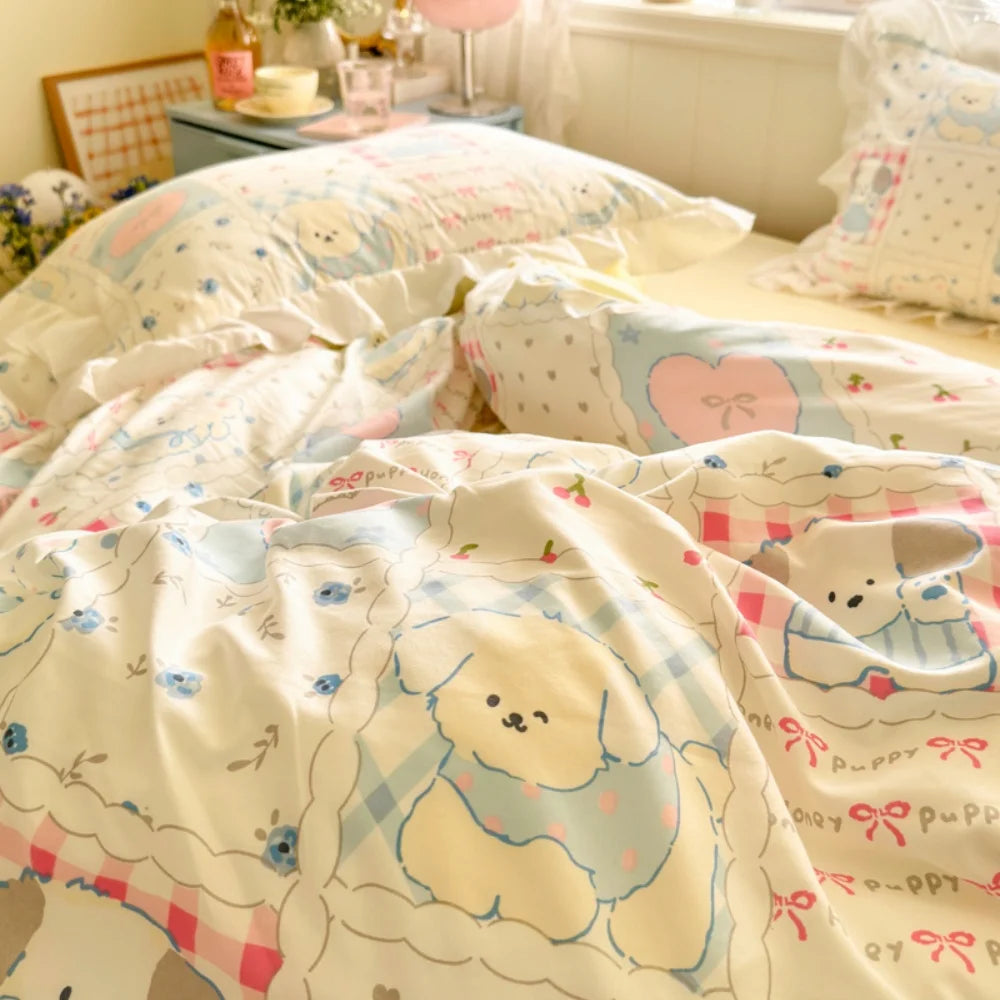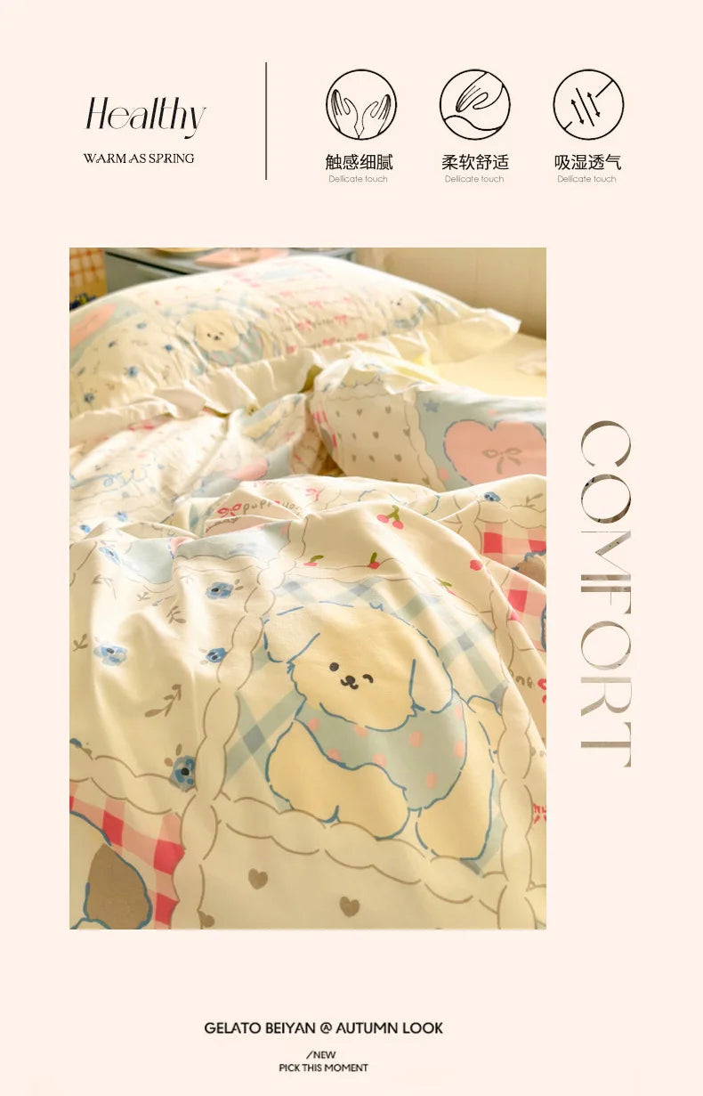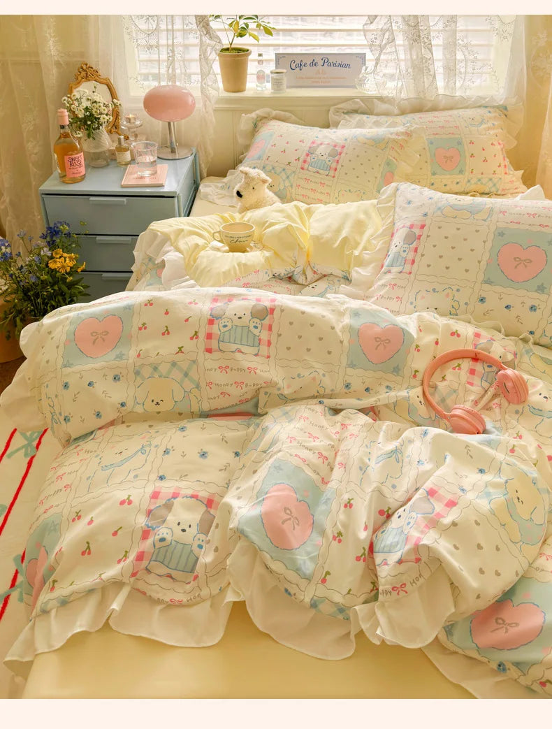 Korean Princess Style 4Pcs Floral Ruffles Bedding Set Single Queen Size Soft Skin-friendly Washed Cotton Duvet Cover Pillowcase