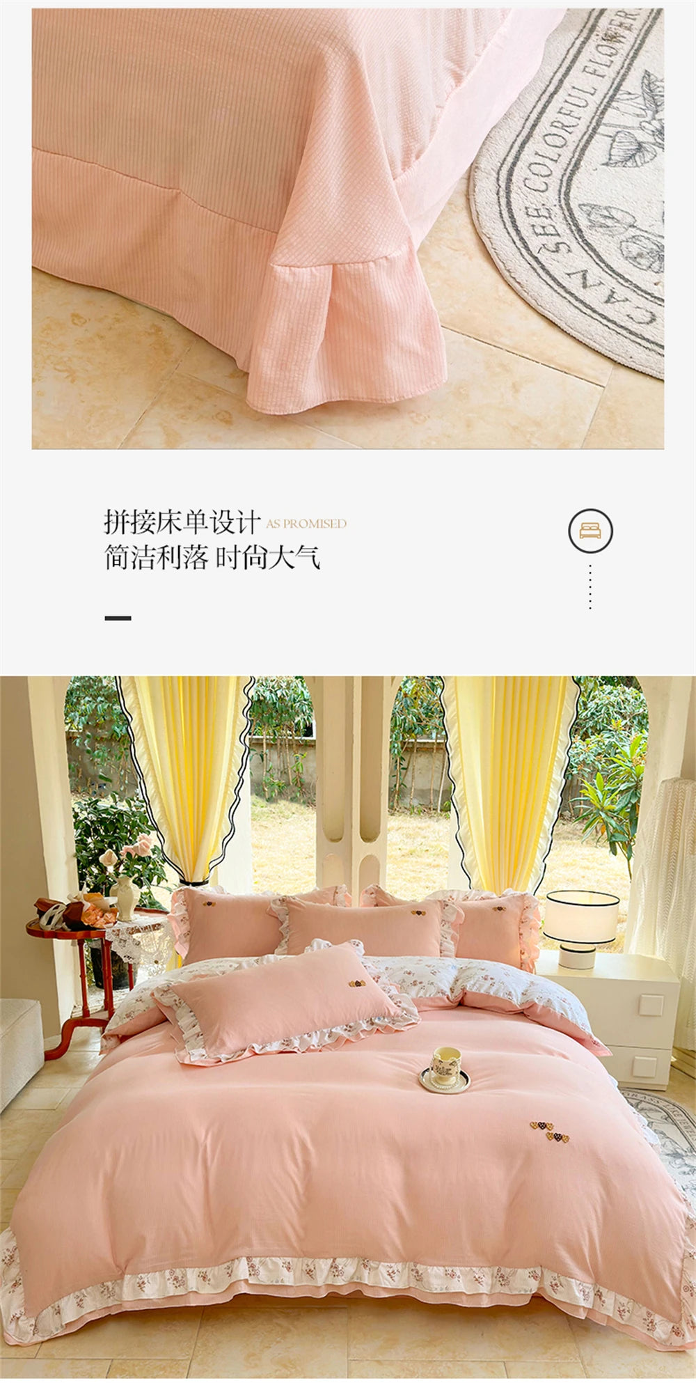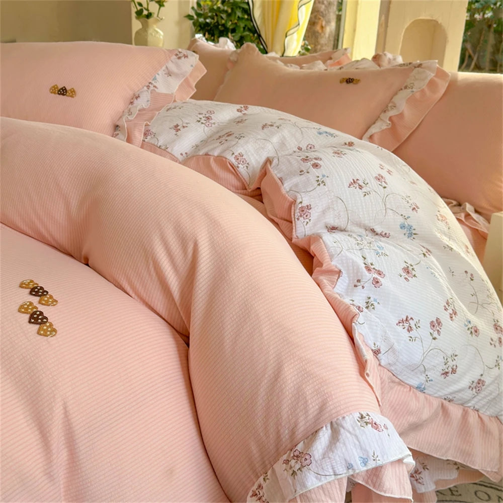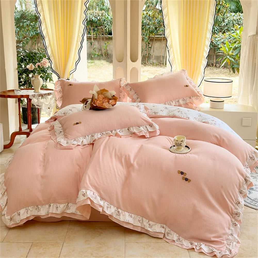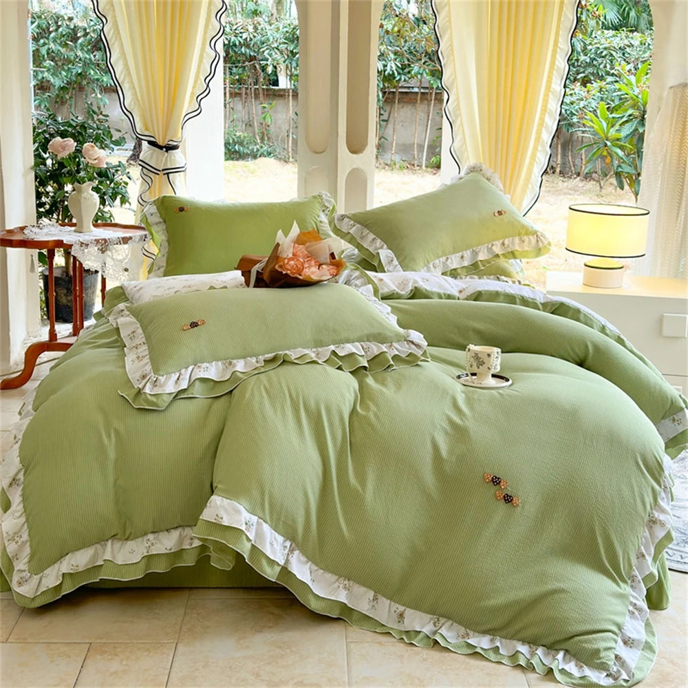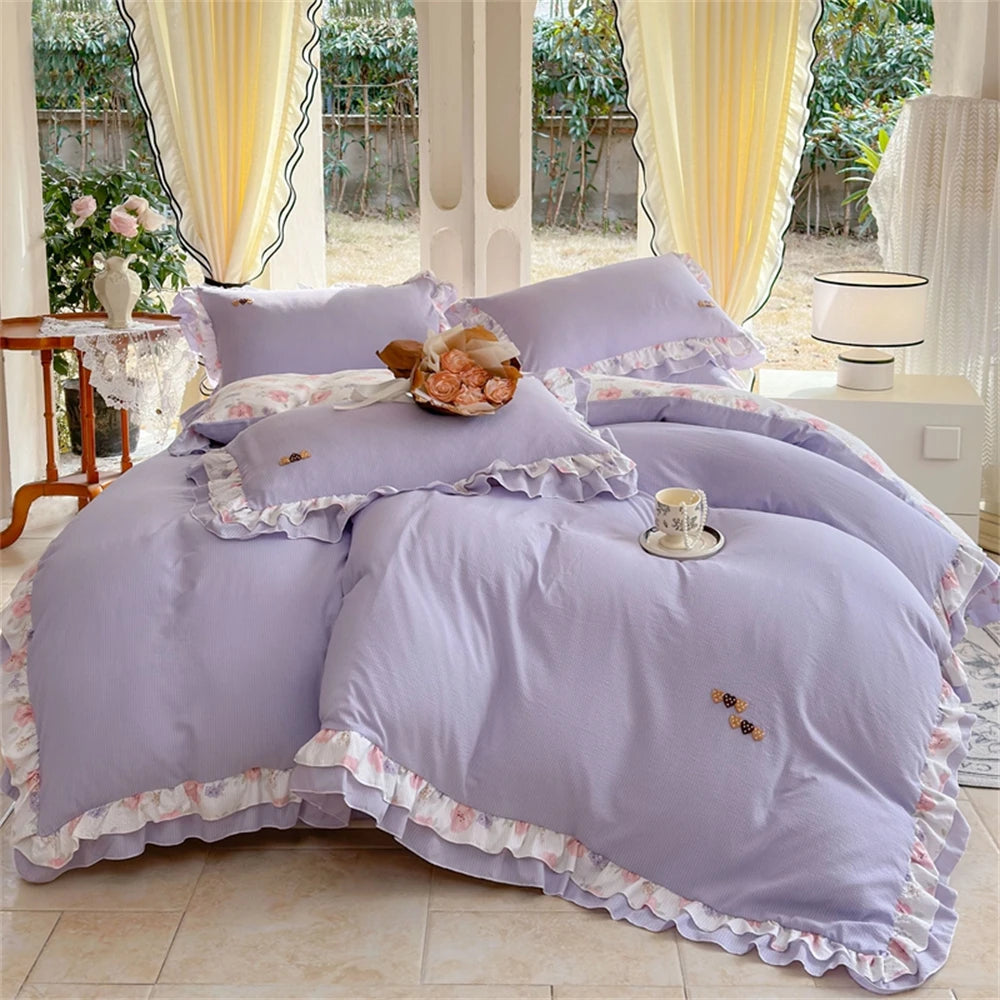 Korean Style Bedding Sets Four Piece Set With Lace Bed Flat Sheet Pillowcase Duvet Cover Set 200x230cm King Size Home Textiles