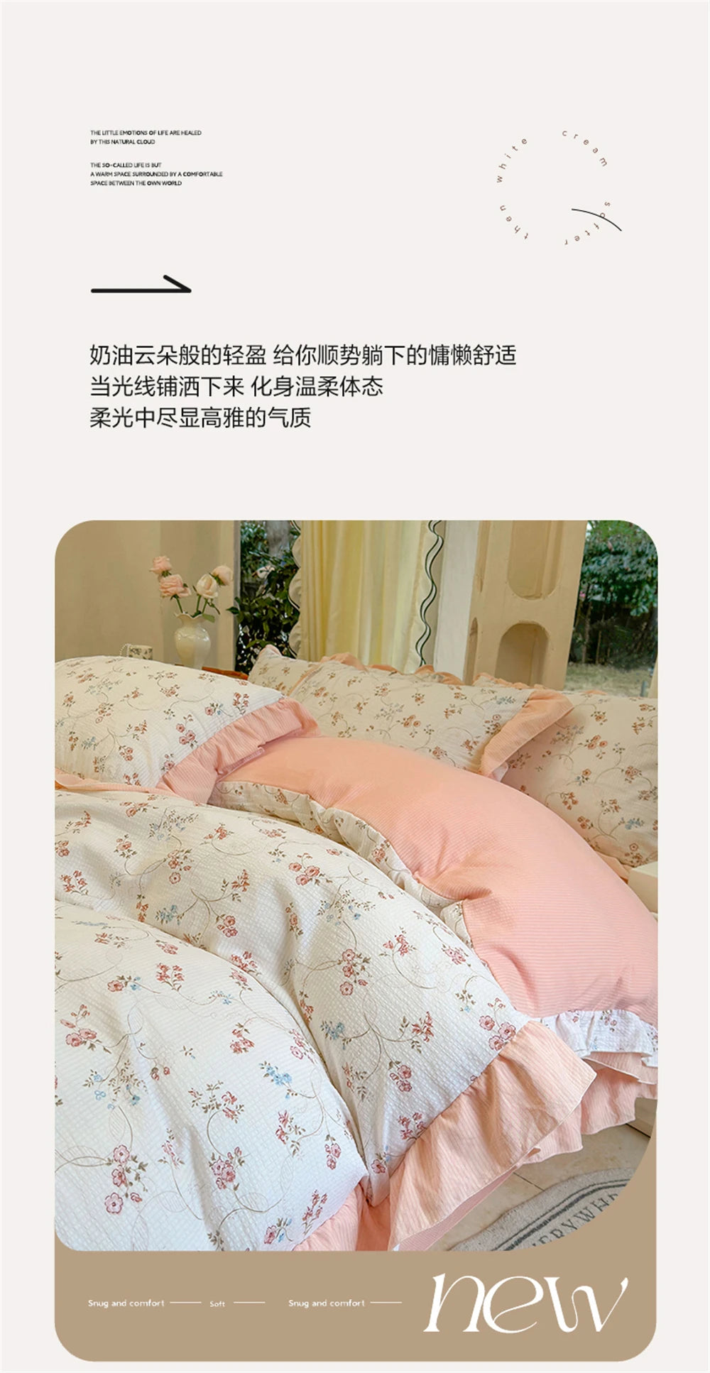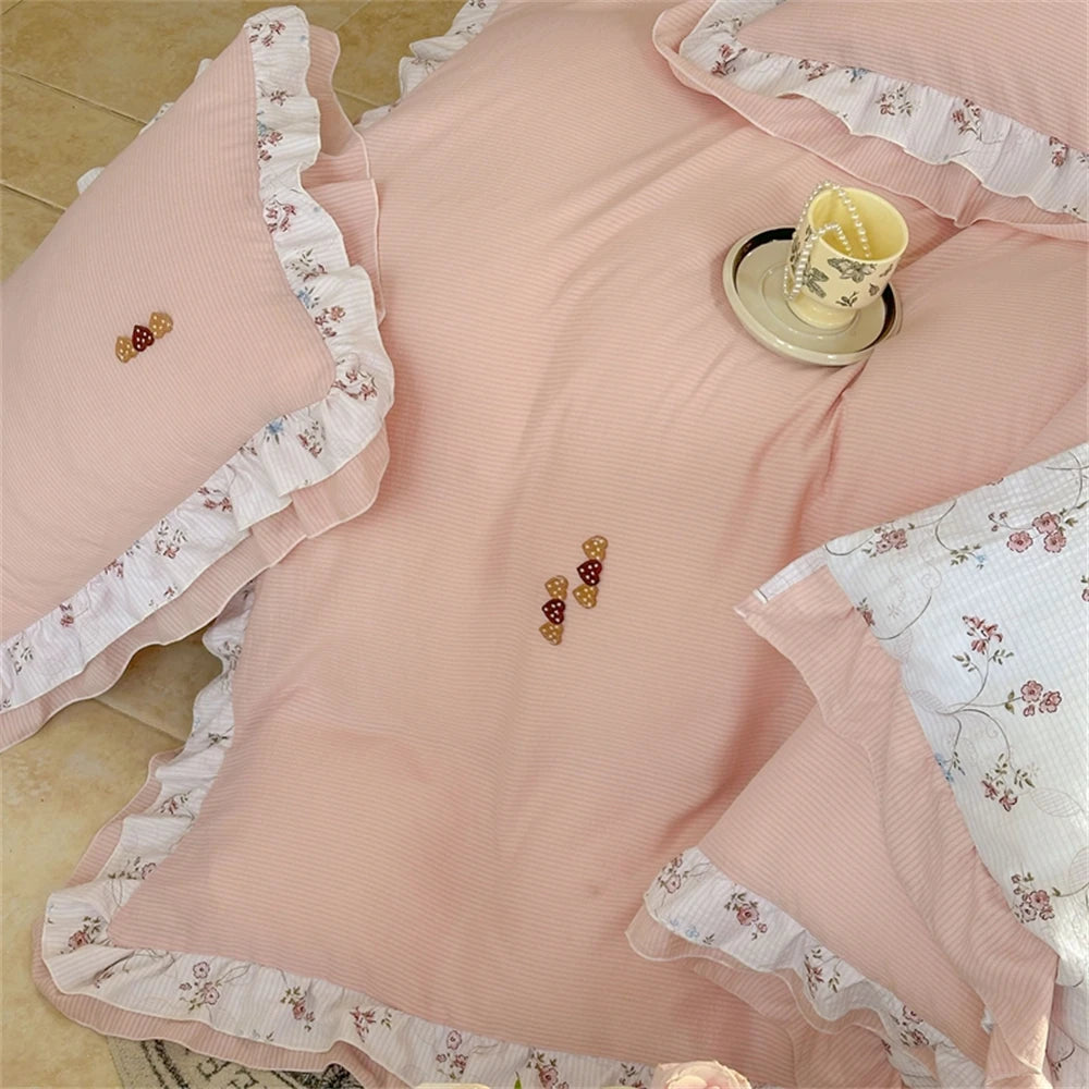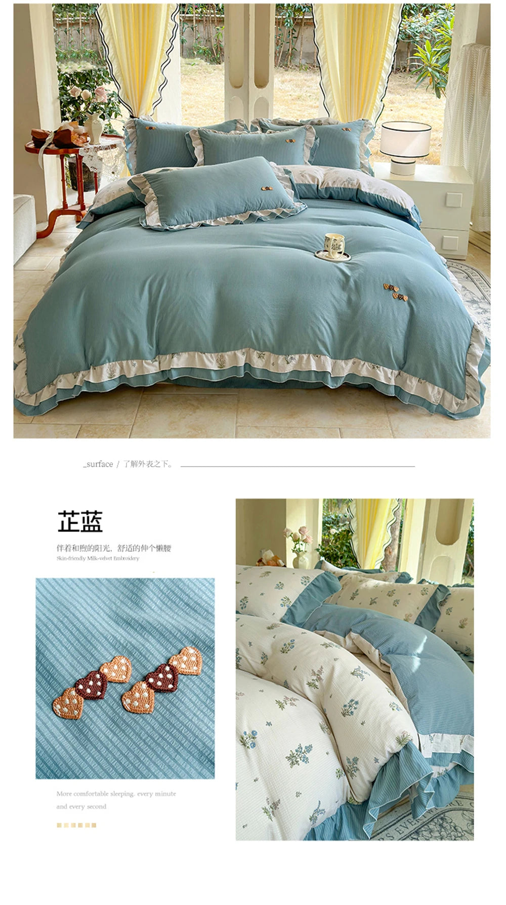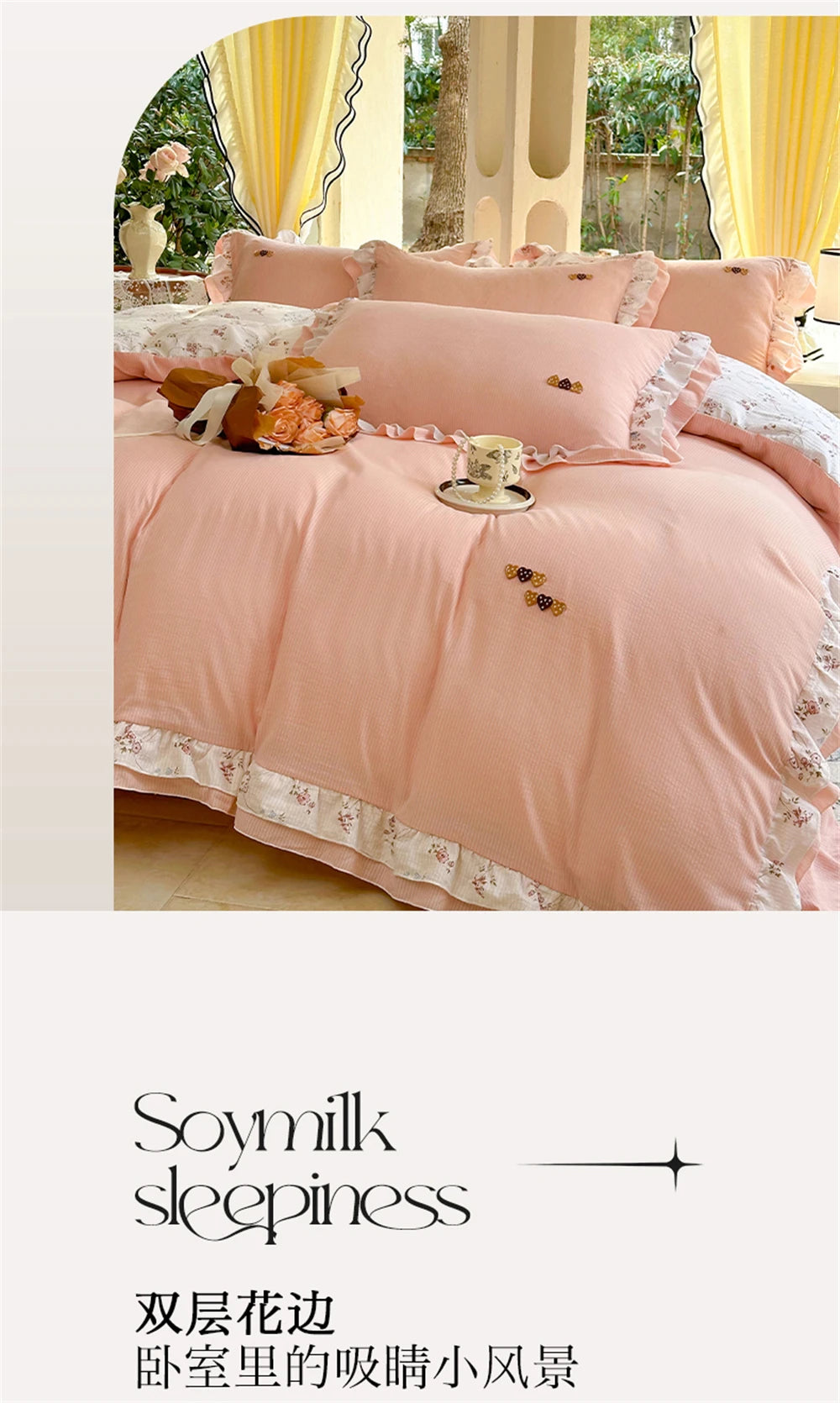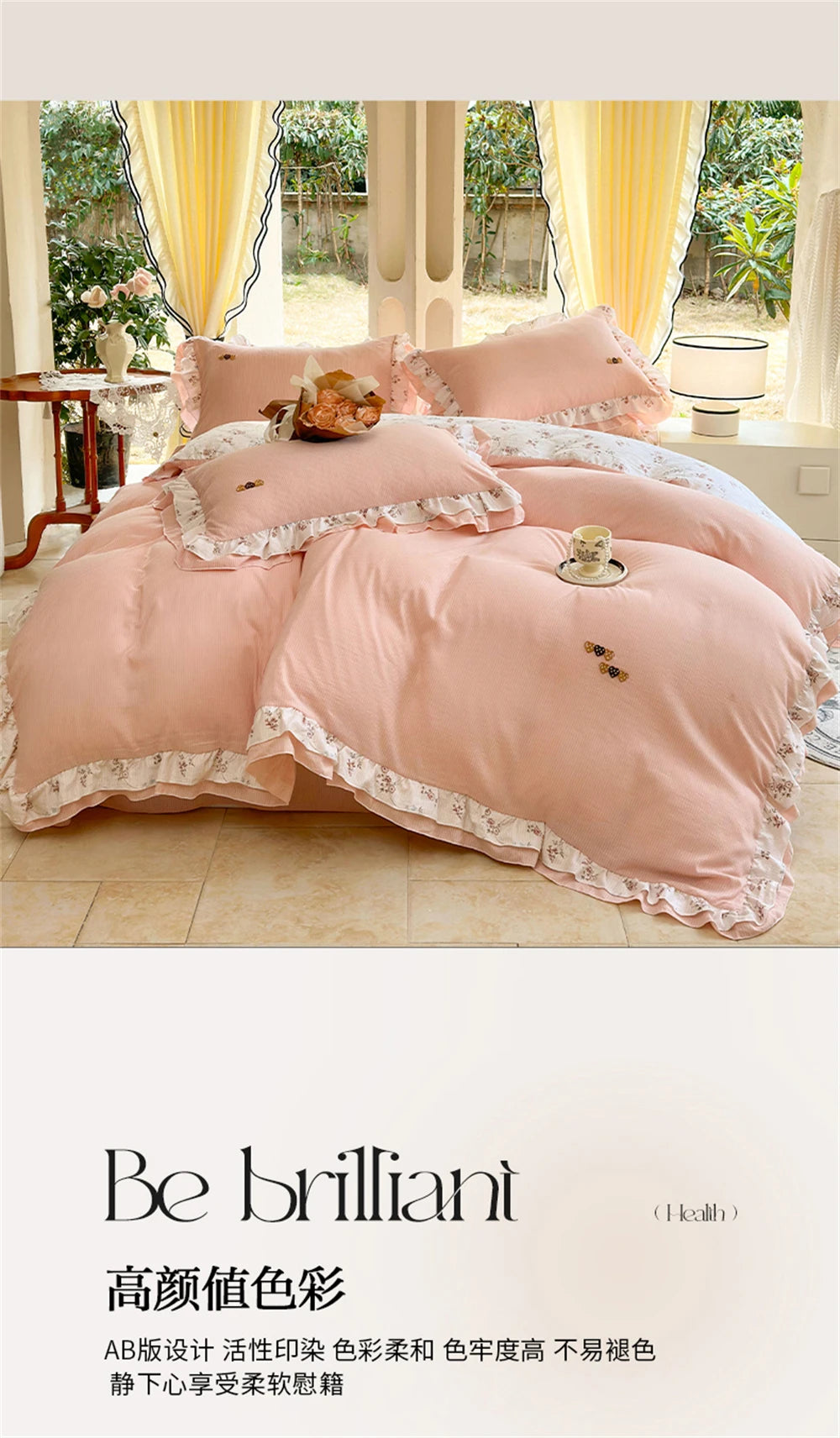 Korean Style Bedding Sets Four Piece Set With Lace Bed Flat Sheet Pillowcase Duvet Cover Set 200x230cm King Size Home Textiles