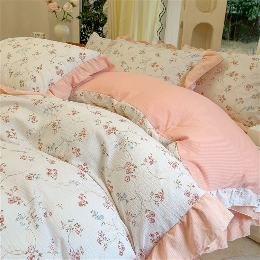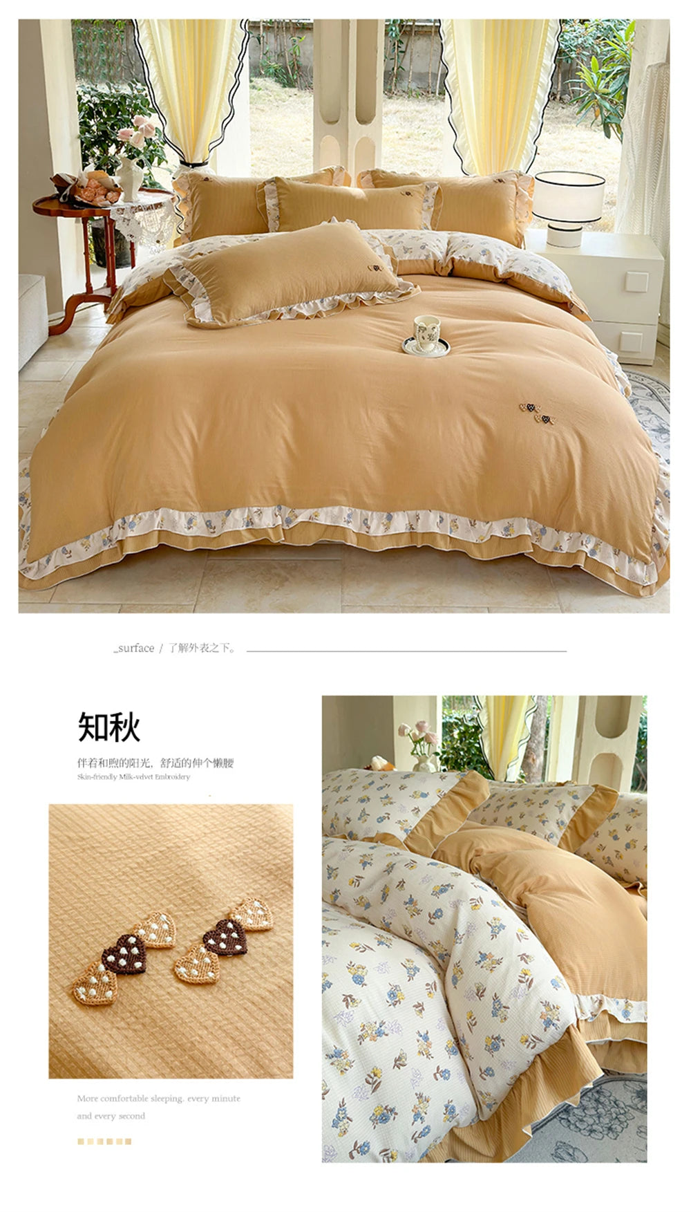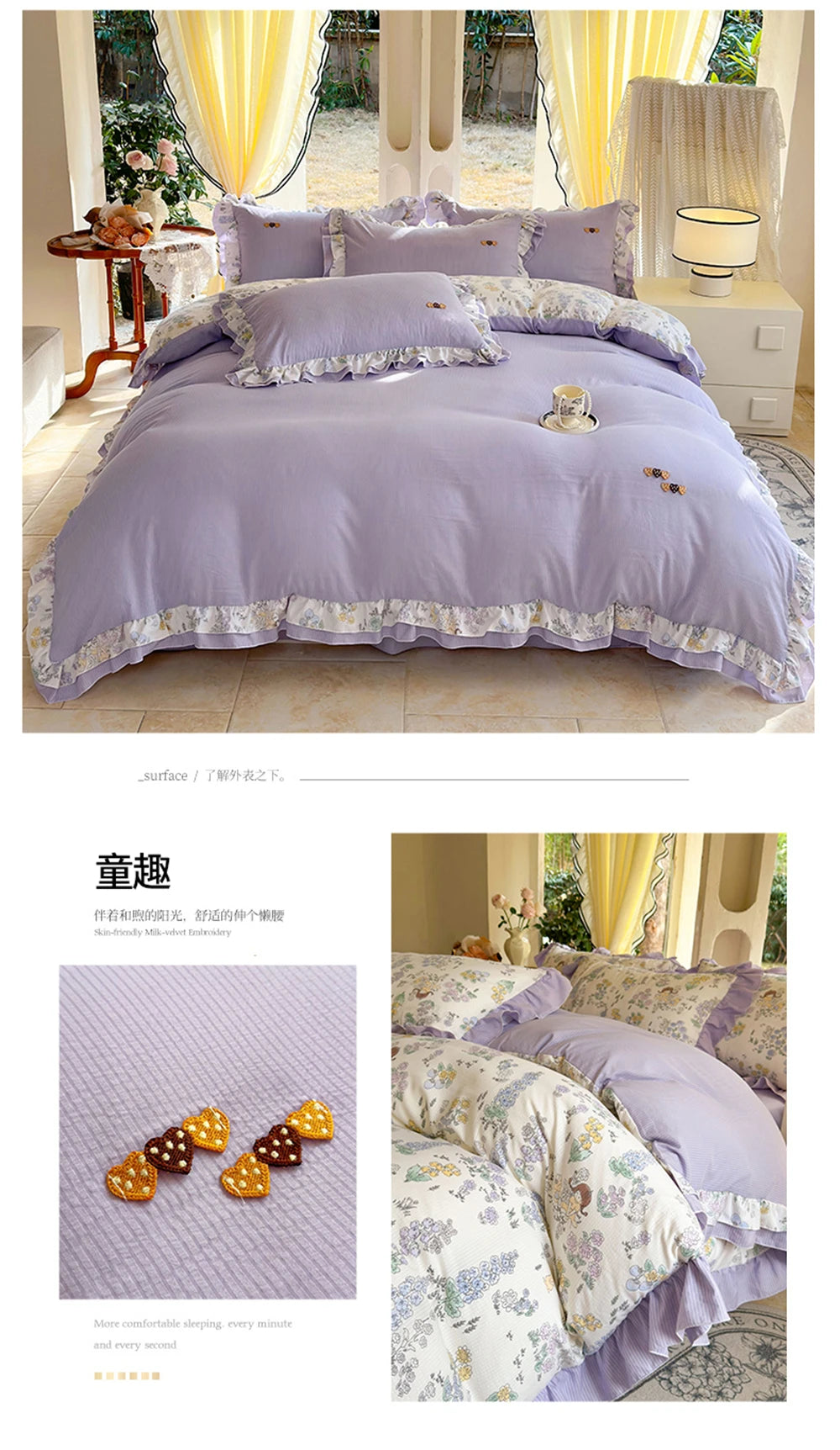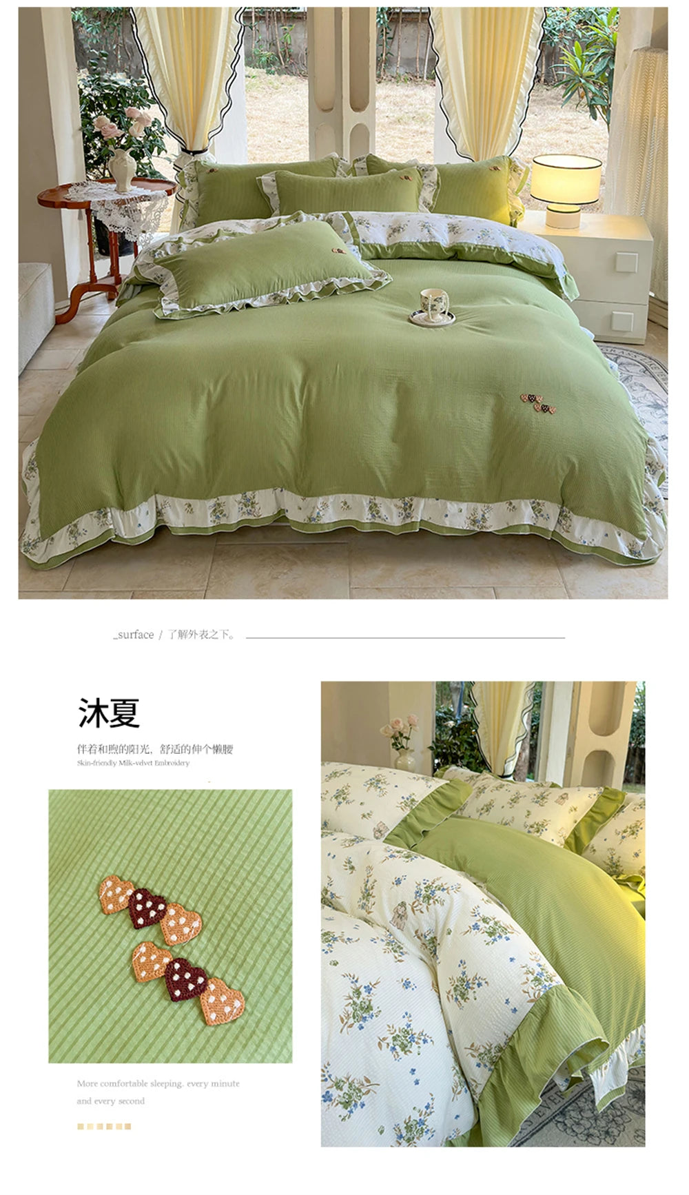 Korean Style Bedding Sets Four Piece Set With Lace Bed Flat Sheet Pillowcase Duvet Cover Set 200x230cm King Size Home Textiles