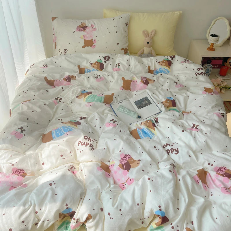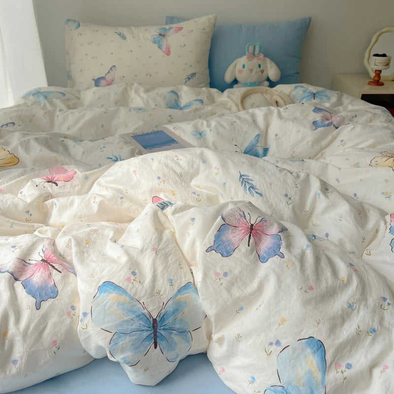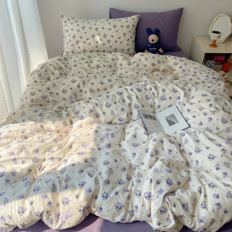 Korean Style Cute Bedding Set For Girls Bed Linen New Skin Friendly Fresh Flora Printed Washed Cotton Duvet Cover Set