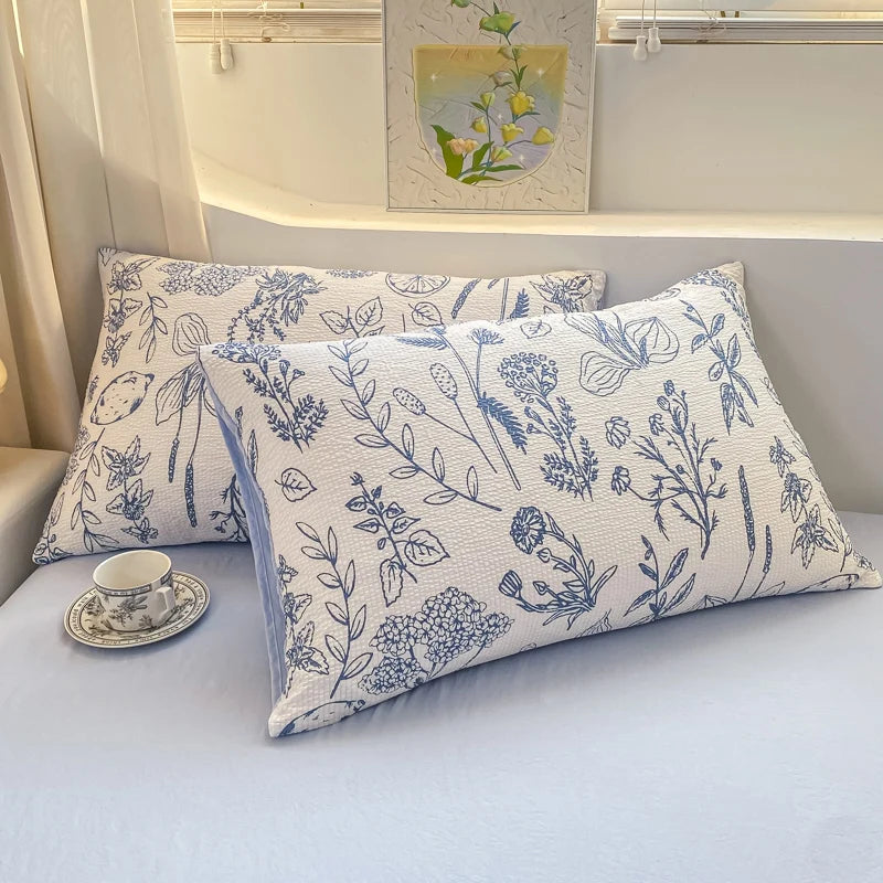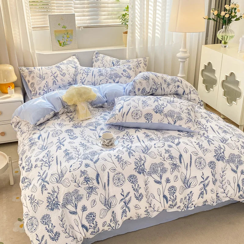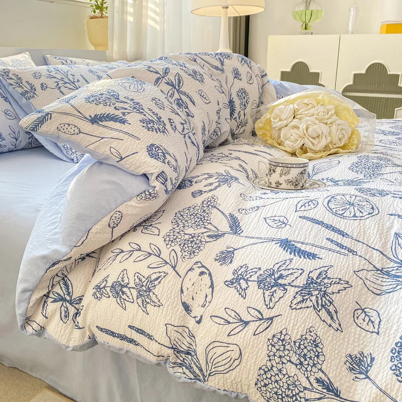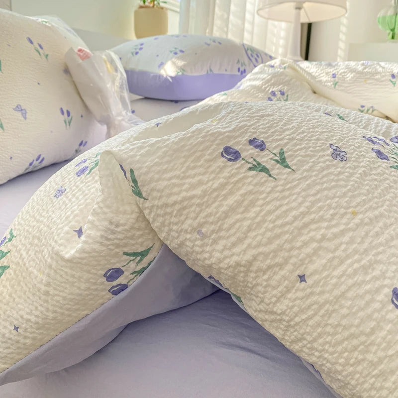 Korean Style Seersucker Washed cotton Bedding Set Girls Twin Queen Size Duvet Cover Bed Linens Kids Fashion