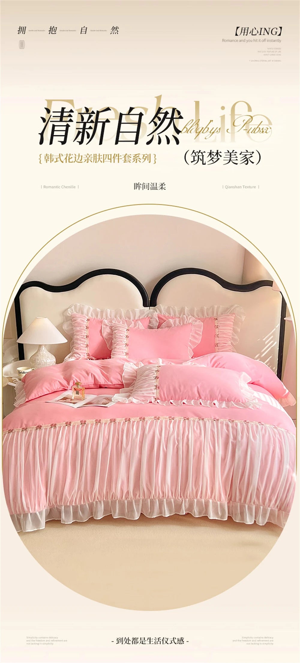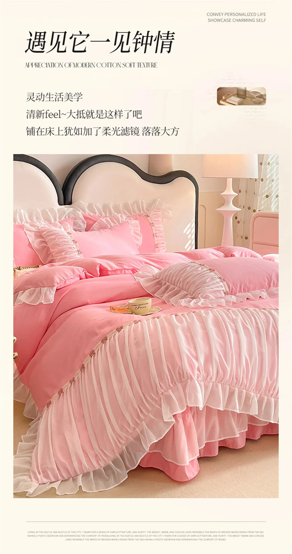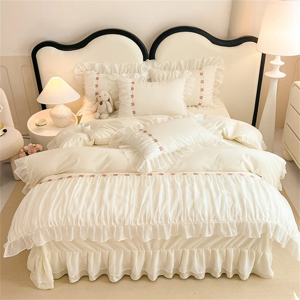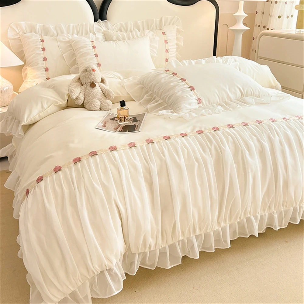Lace Bedding Set for Girl Ruffle Brushed Soft Microfiber Princess Style Queen Duvet Cover Set Bed Sheet Pillowcases Home Textile