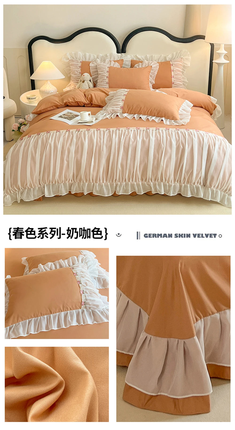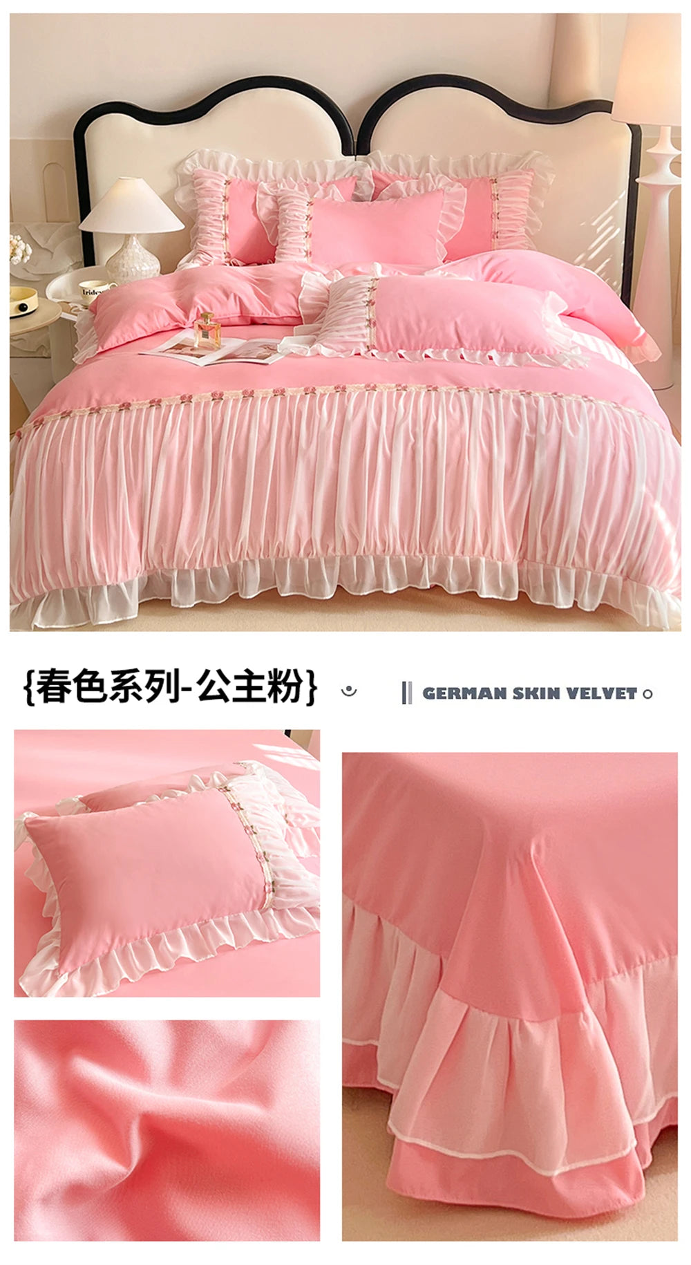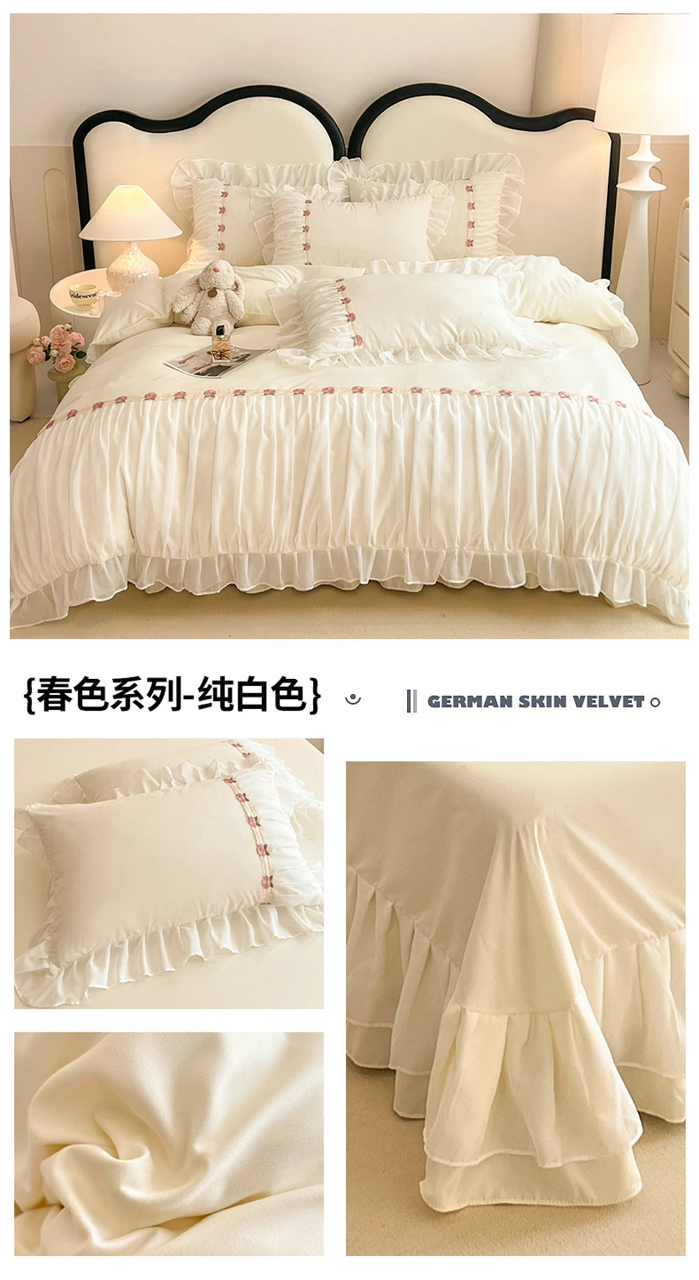 Lace Bedding Set for Girl Ruffle Brushed Soft Microfiber Princess Style Queen Duvet Cover Set Bed Sheet Pillowcases Home Textile
