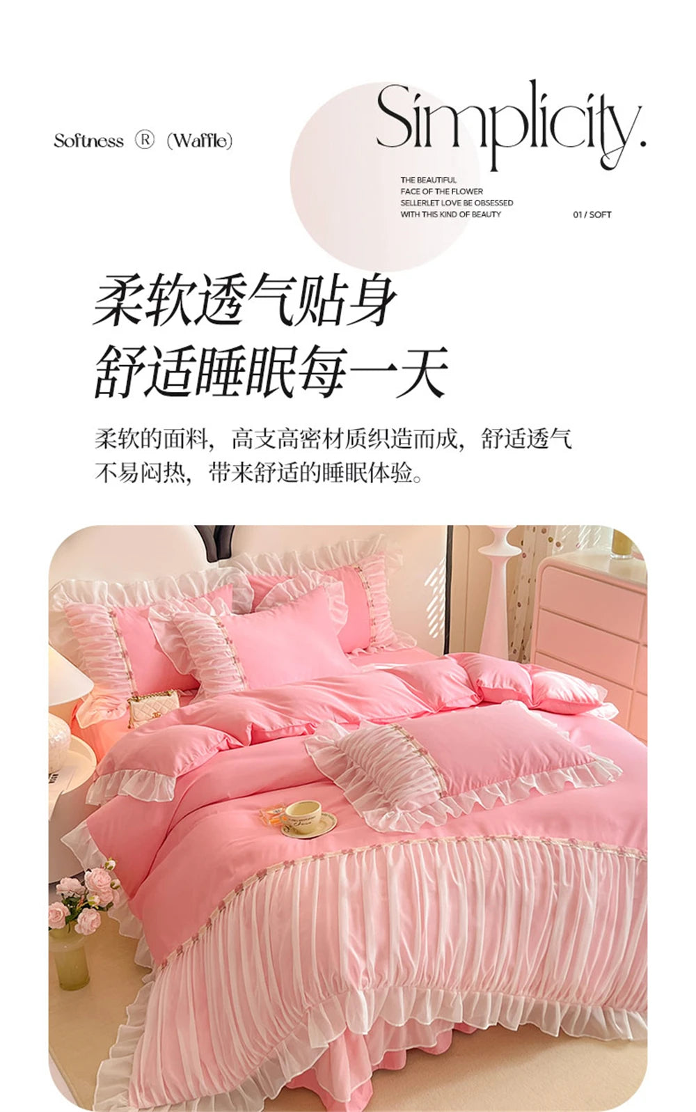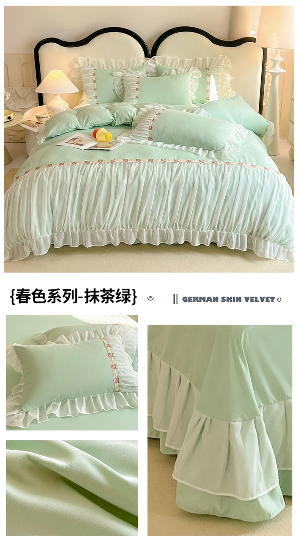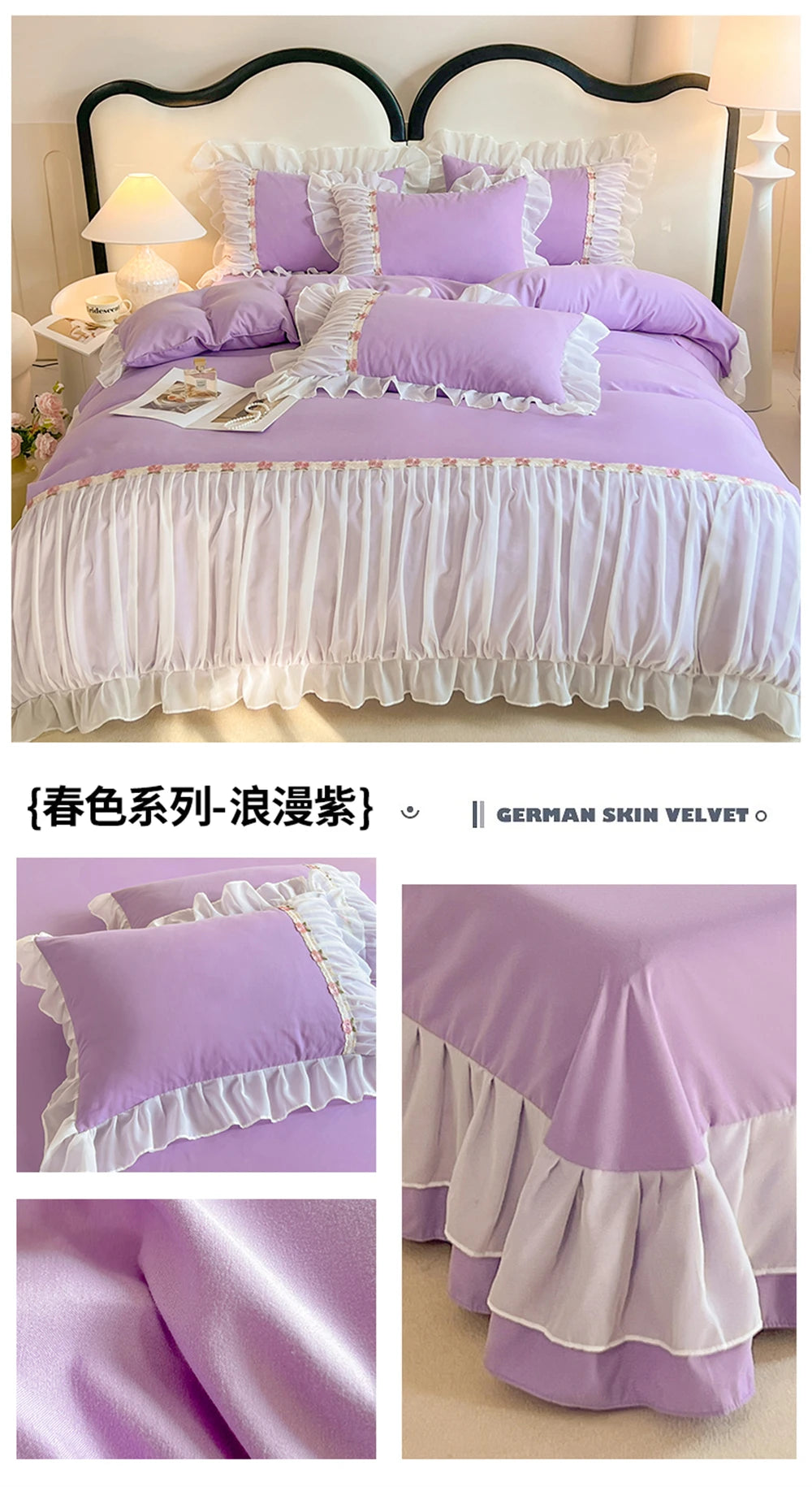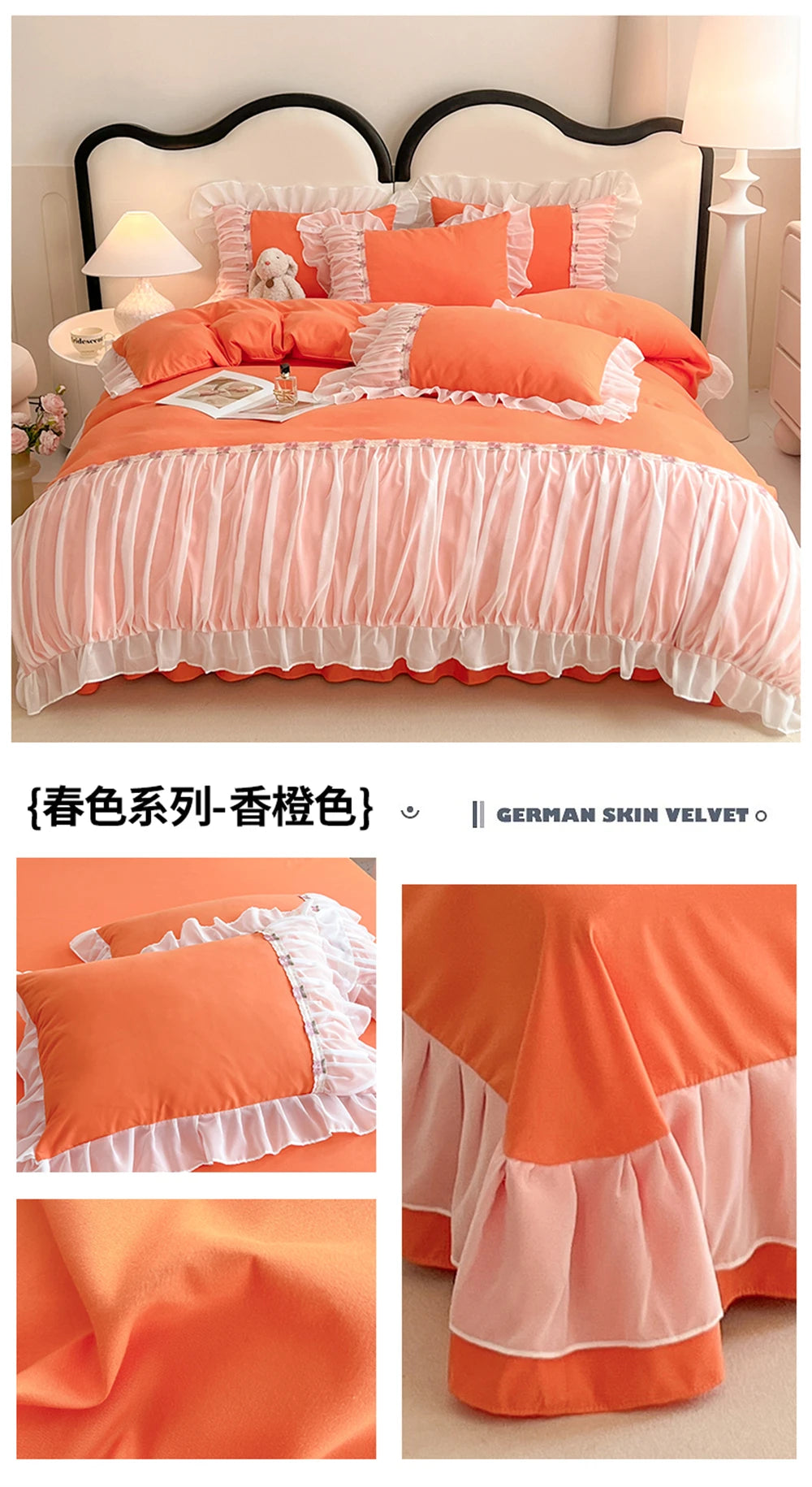 Lace Bedding Set for Girl Ruffle Brushed Soft Microfiber Princess Style Queen Duvet Cover Set Bed Sheet Pillowcases Home Textile