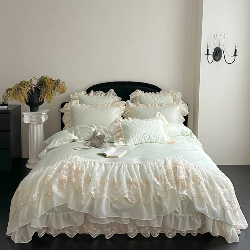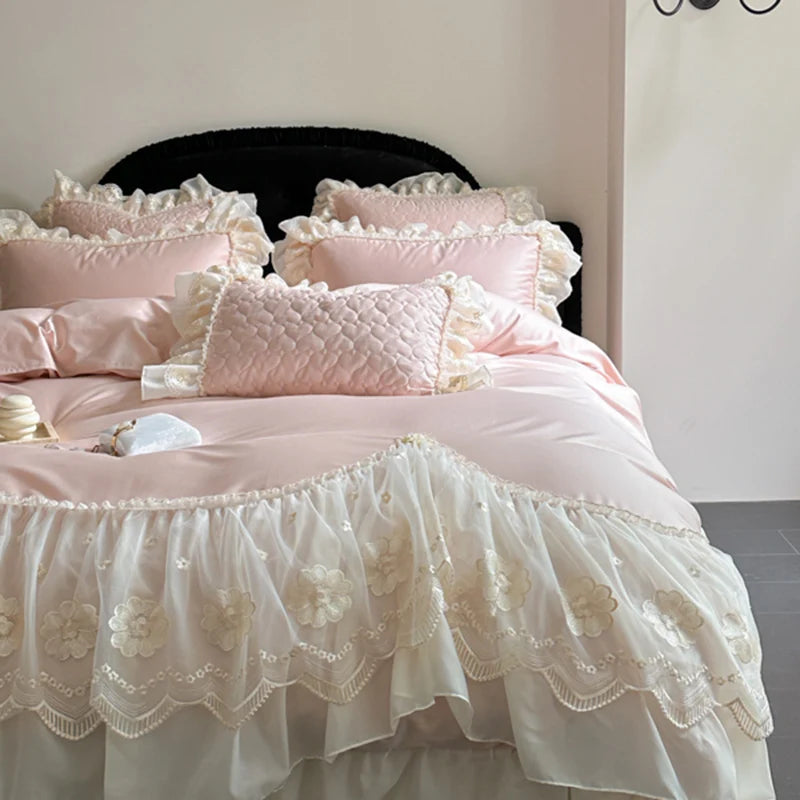 Lace Princess Bedding Set Gorgeous Embroidery Romantic Flat Bed Sheet Pillowcases Queen King Size Bed Linen Set Gift for Family