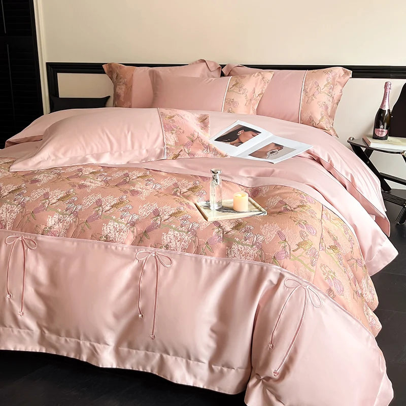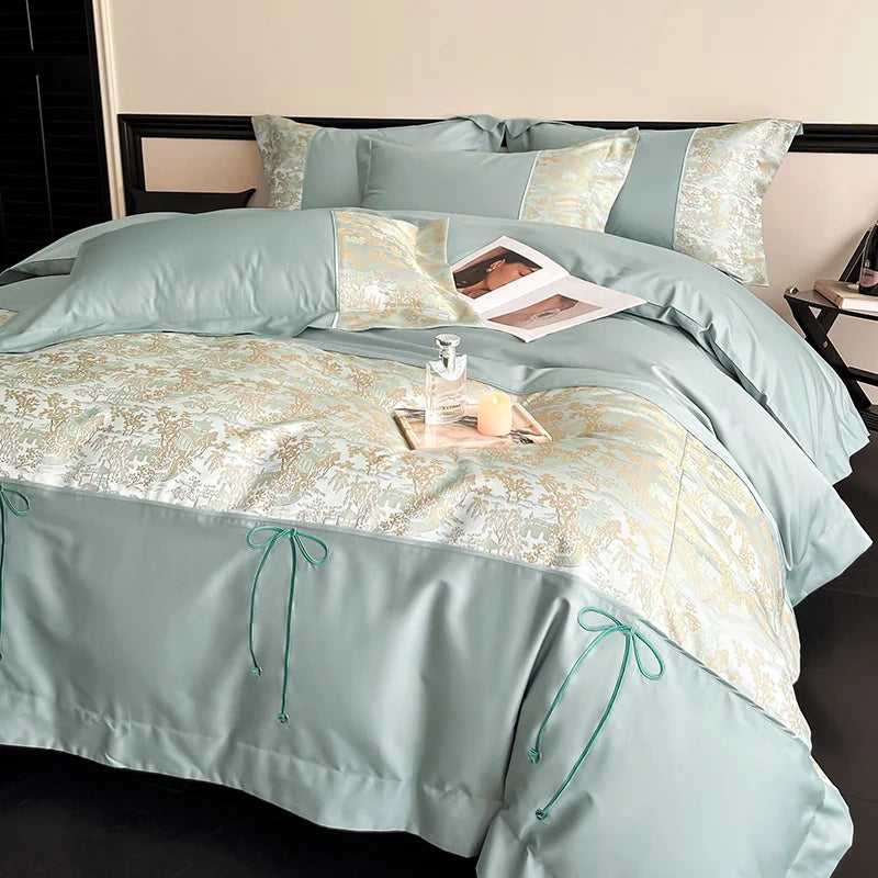Luxury Chinese Style Jacquard Patchwork Embroidery Bedding Set 100% Cotton Duvet Cover Set Flat/Fitted Bed Sheet Pillowcases