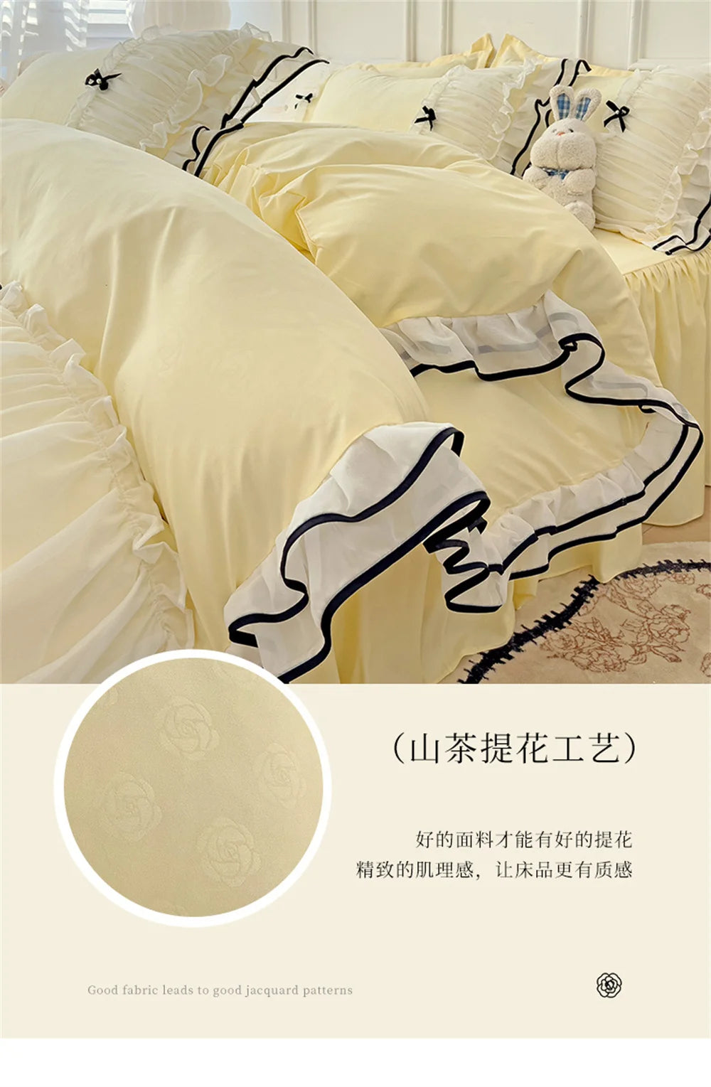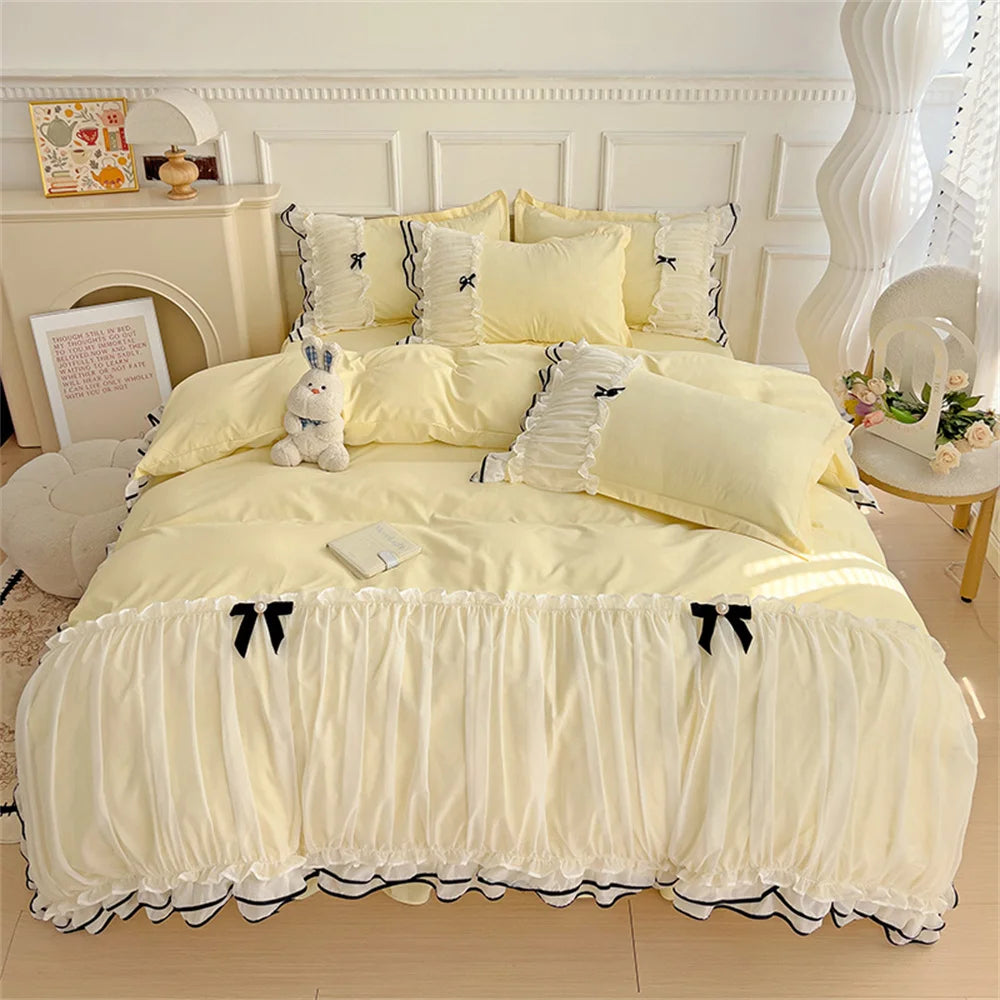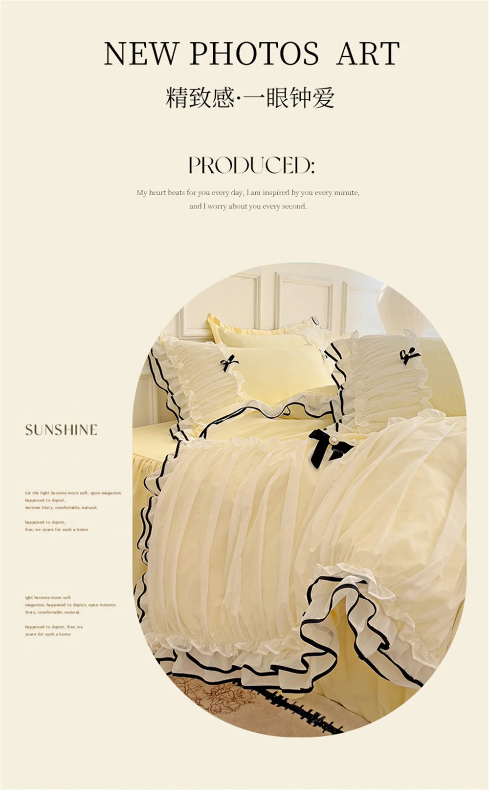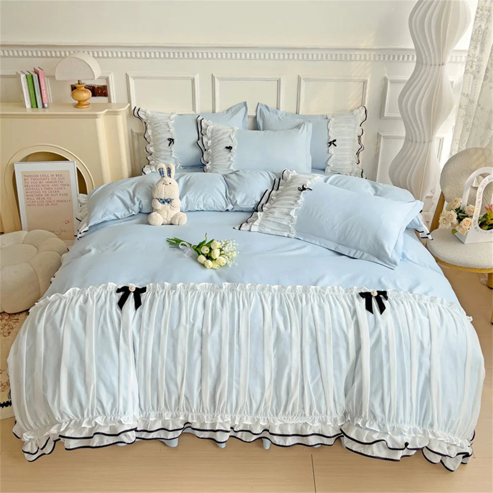 Luxury Princess Bedding Sets Princess Style Fashion 4Pcs Duvet Cover Bed Sheet Pillowcase Lace Ruffles Bed Skirt Bedroom Decor