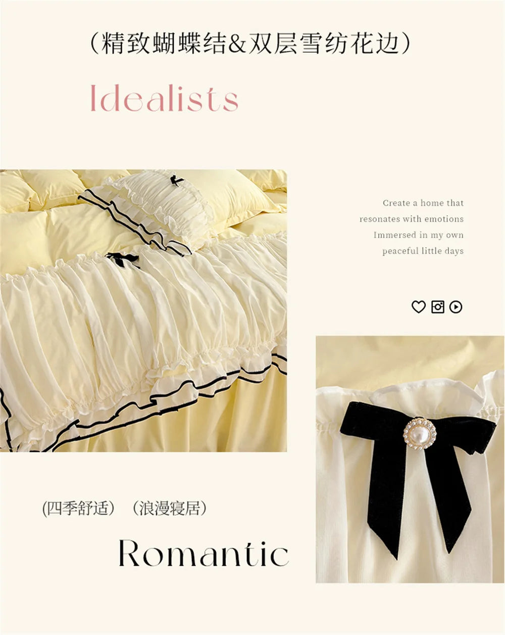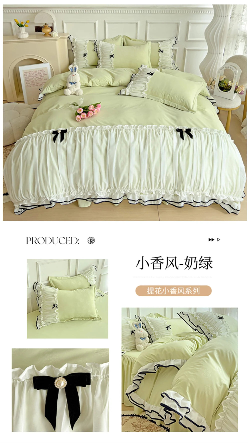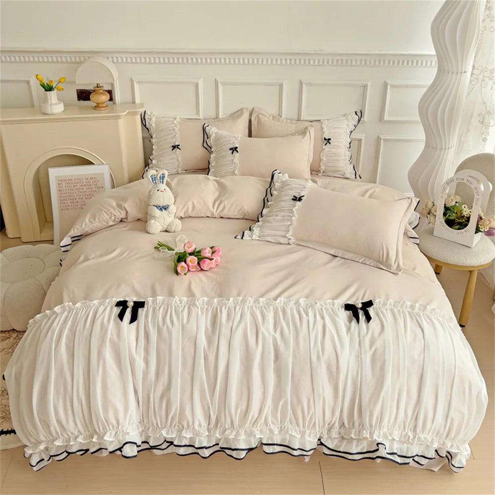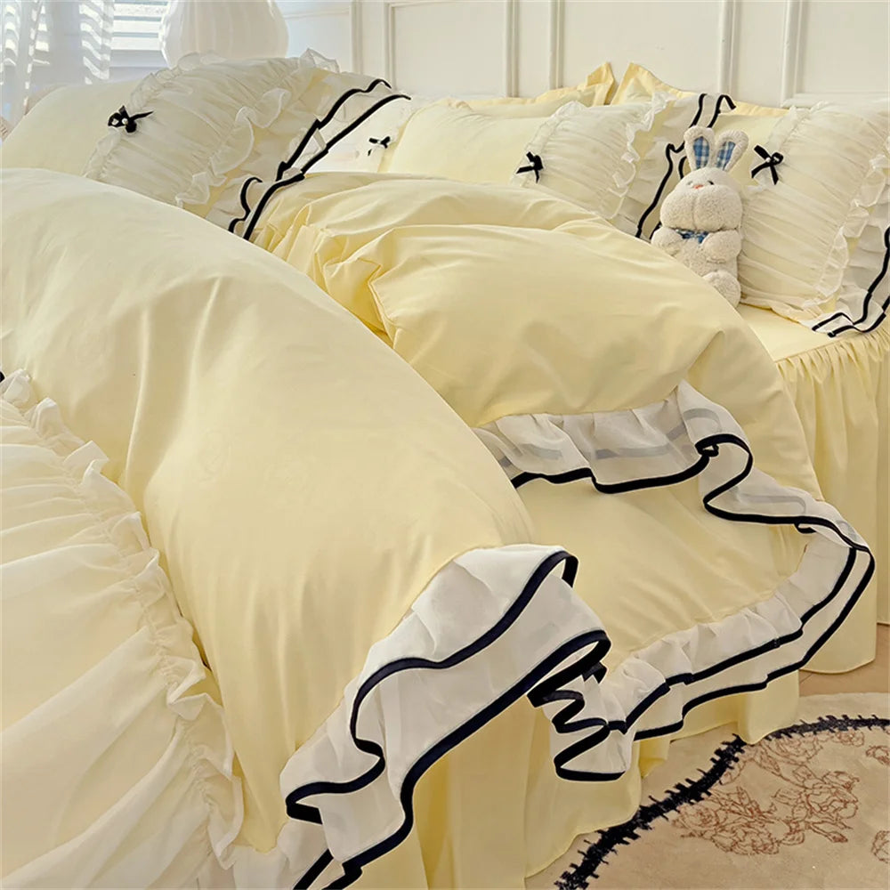 Luxury Princess Bedding Sets Princess Style Fashion 4Pcs Duvet Cover Bed Sheet Pillowcase Lace Ruffles Bed Skirt Bedroom Decor
