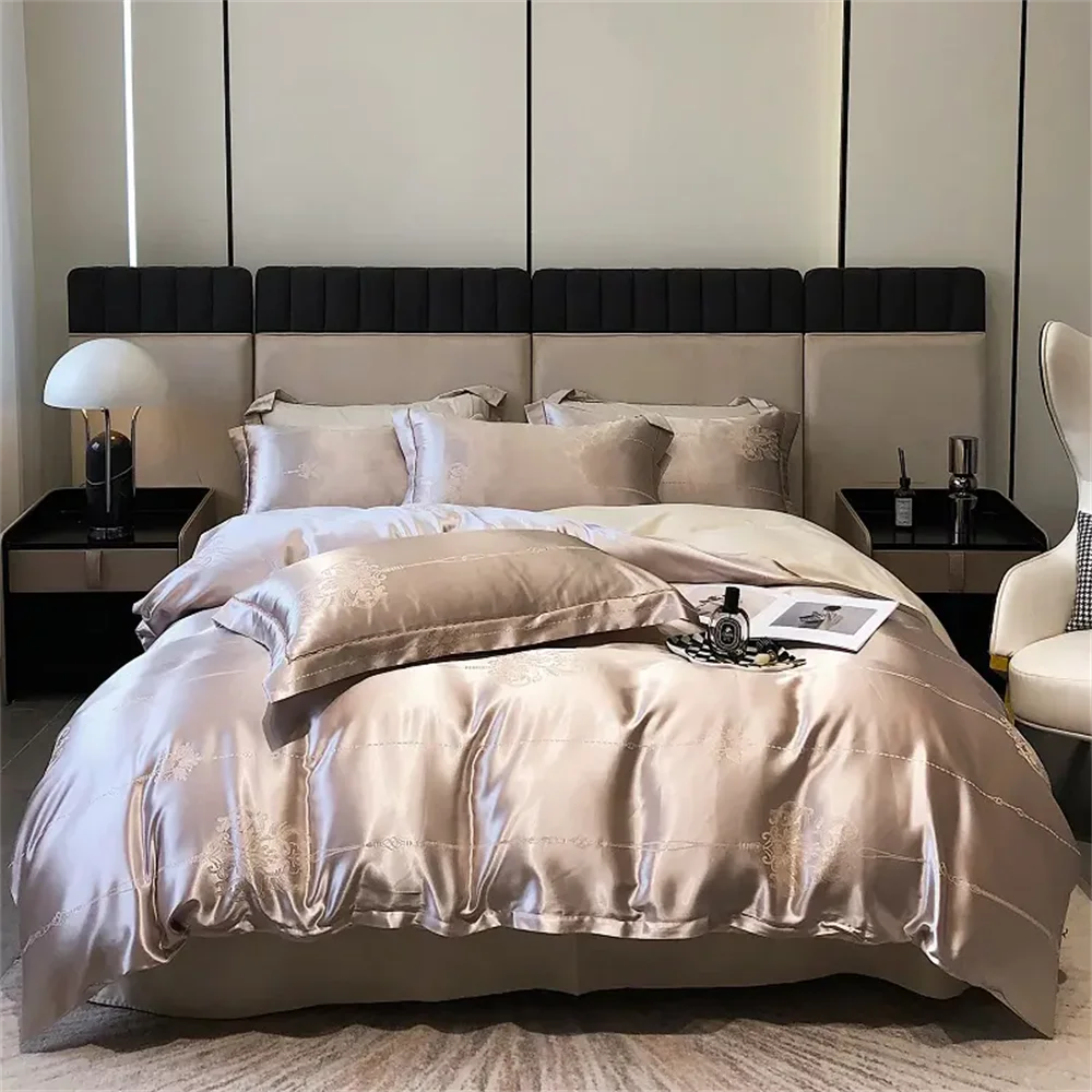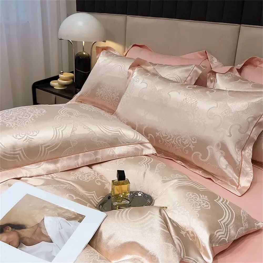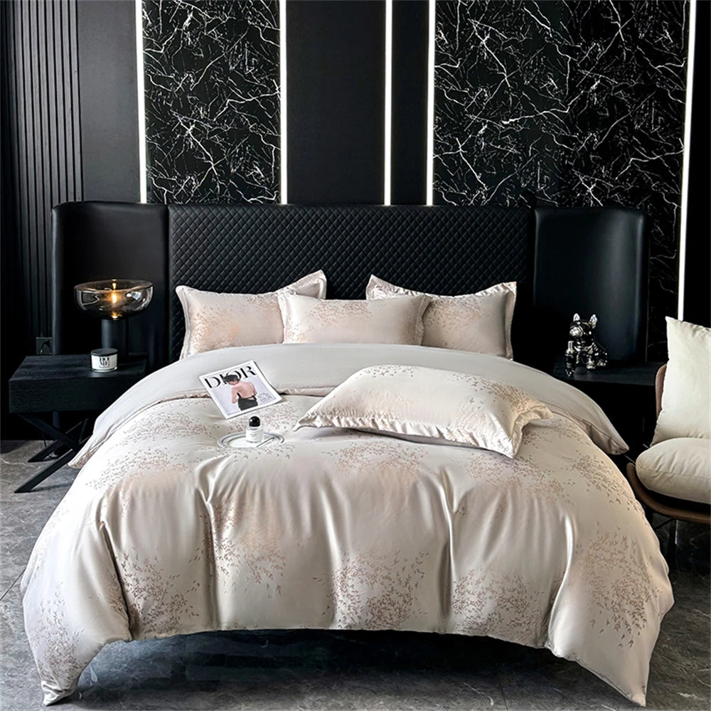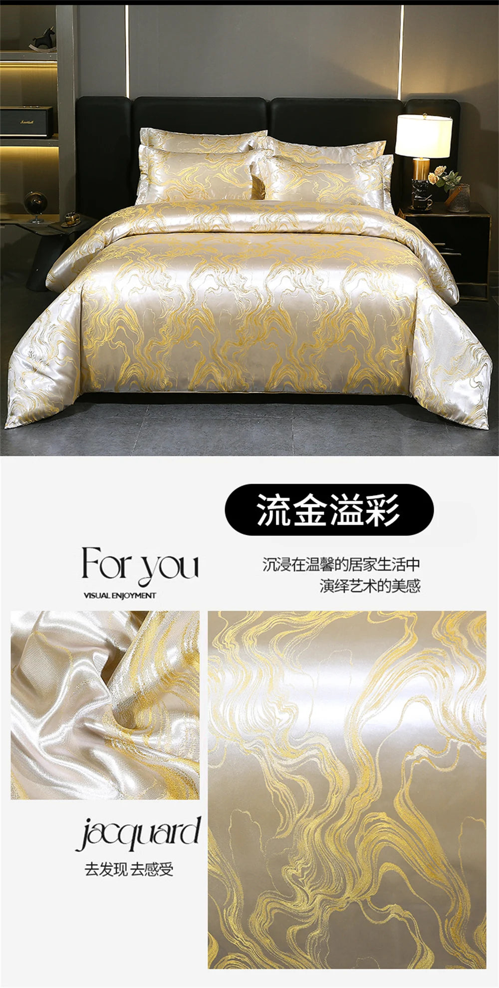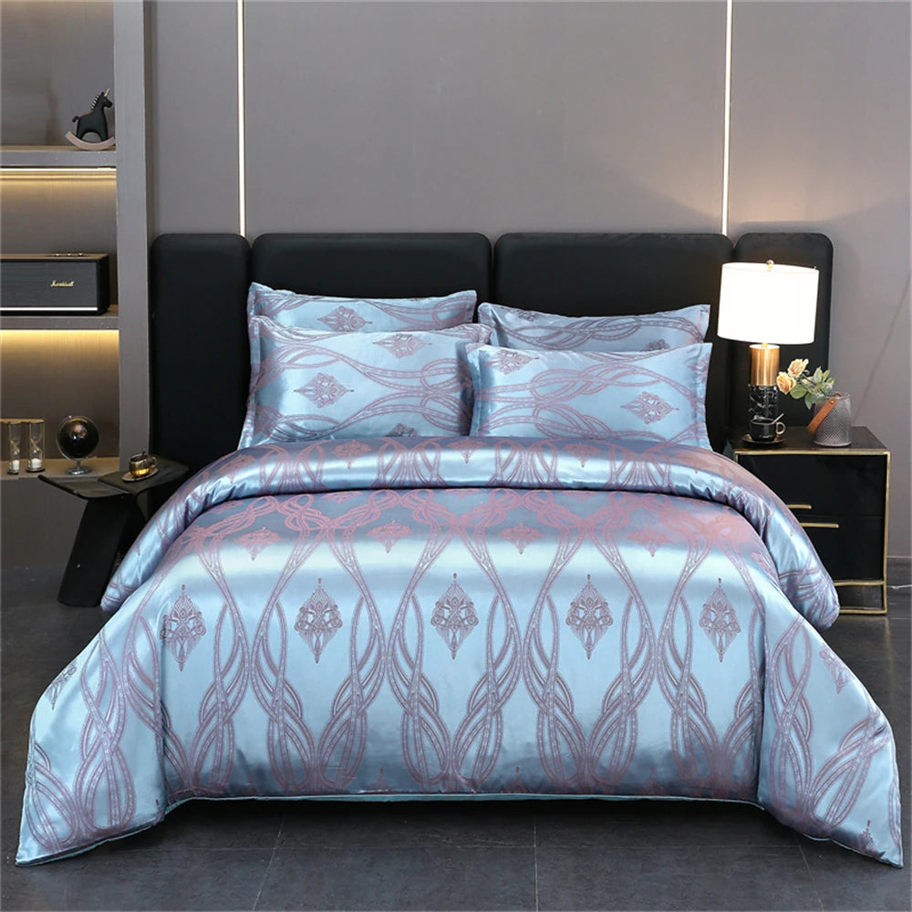 Luxury Satin Jacquard Duvet Cover Set Nordic Double Bed Quilt Cover Bedding Set Adlut Pillowcases Sheet Queen King Home Textiles