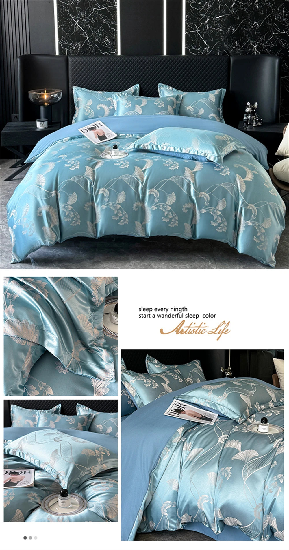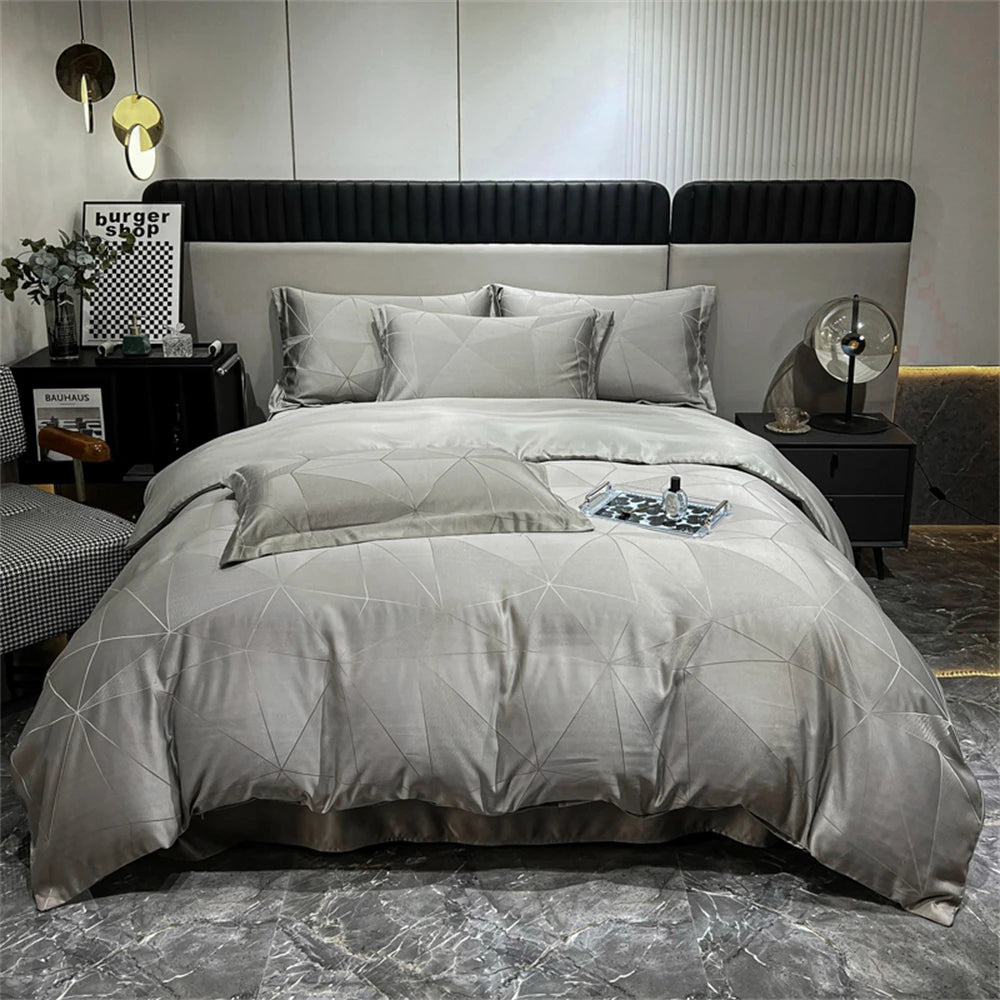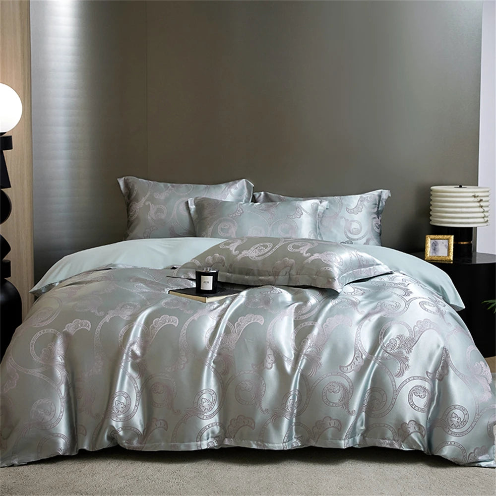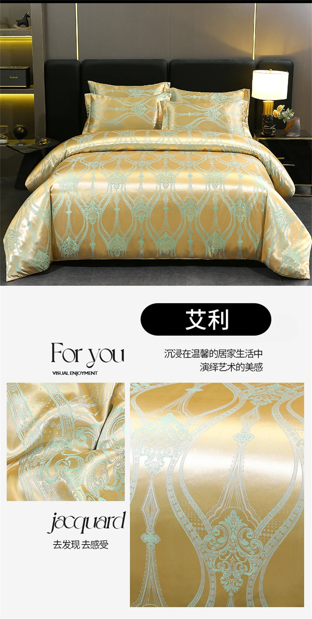 Luxury Satin Jacquard Duvet Cover Set Nordic Double Bed Quilt Cover Bedding Set Adlut Pillowcases Sheet Queen King Home Textiles