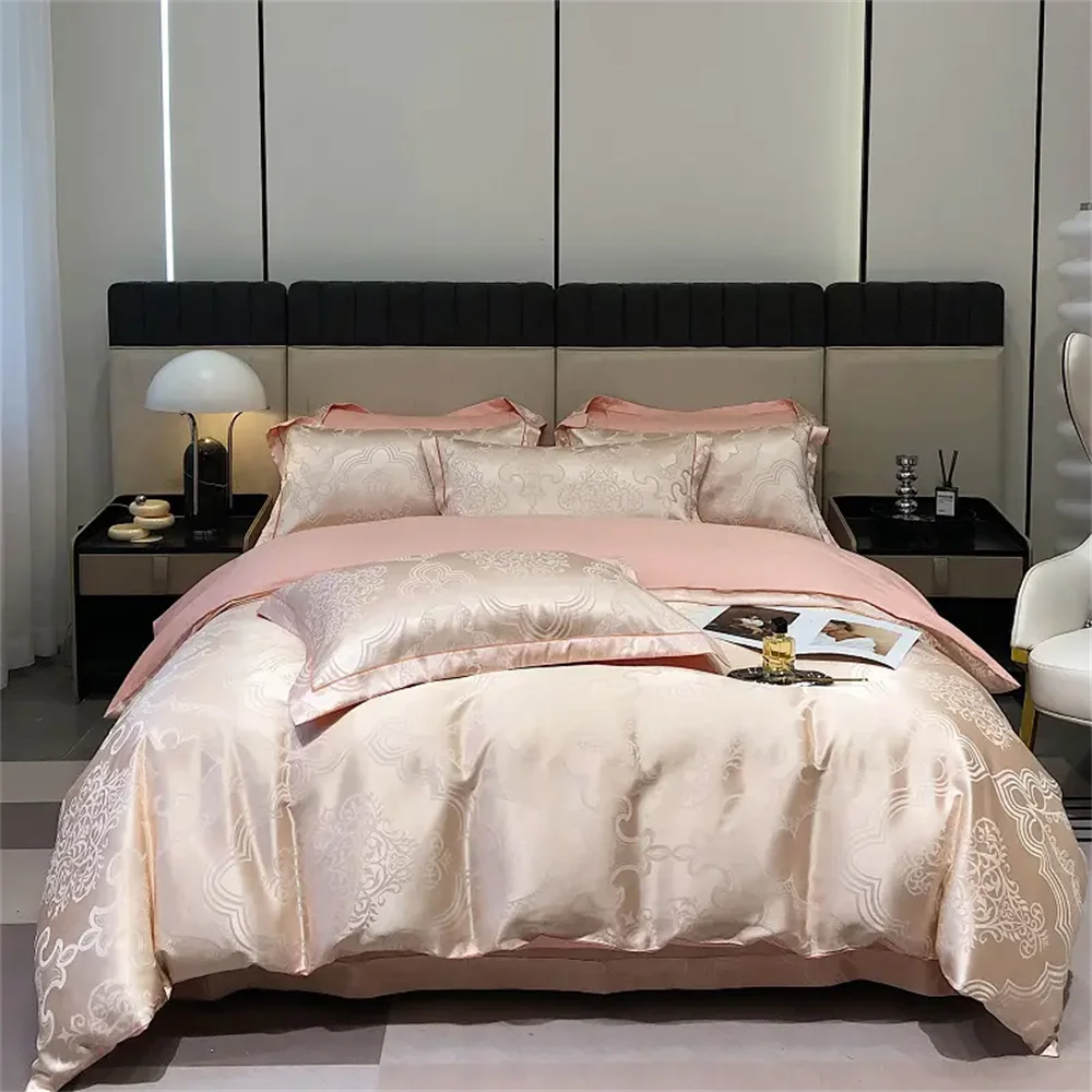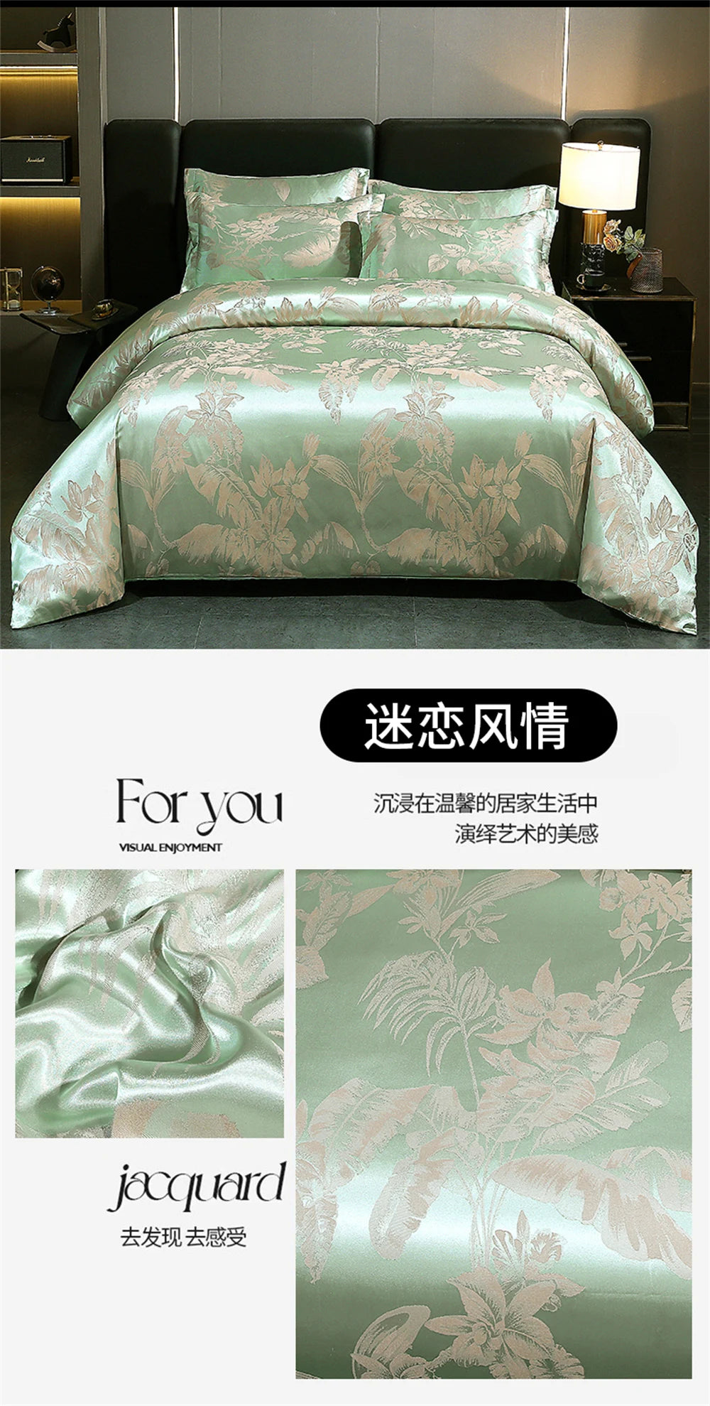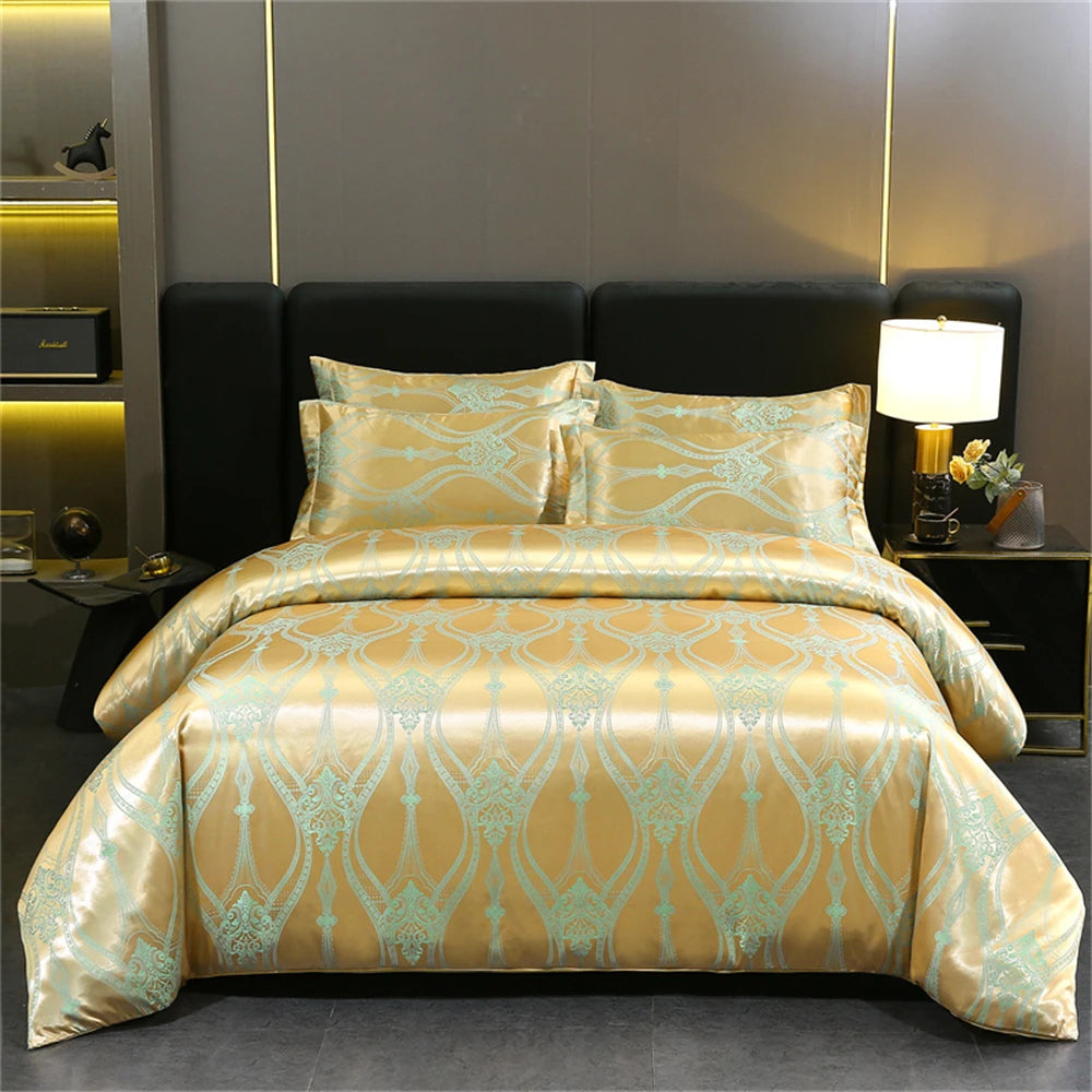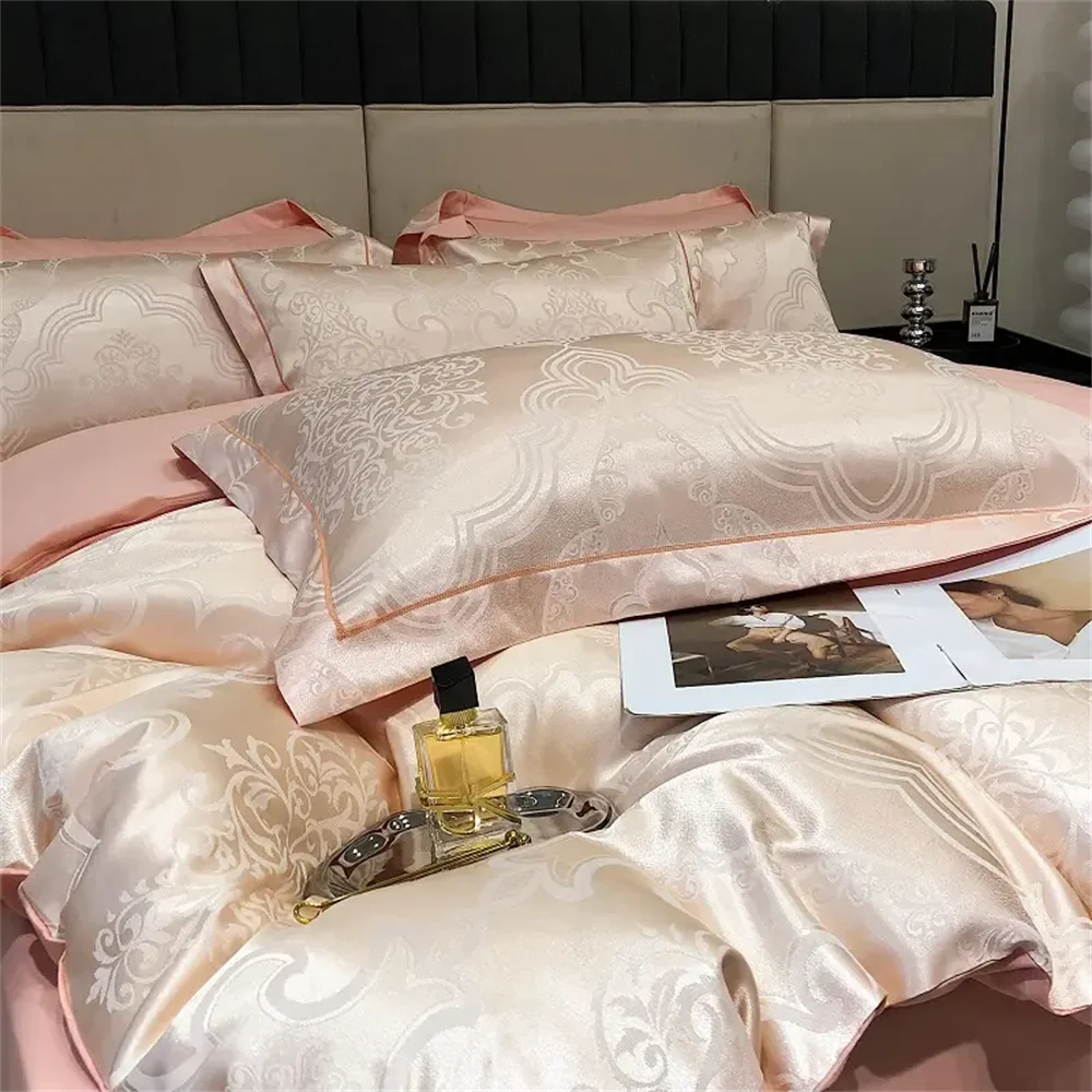 Luxury Satin Jacquard Duvet Cover Set Nordic Double Bed Quilt Cover Bedding Set Adlut Pillowcases Sheet Queen King Home Textiles