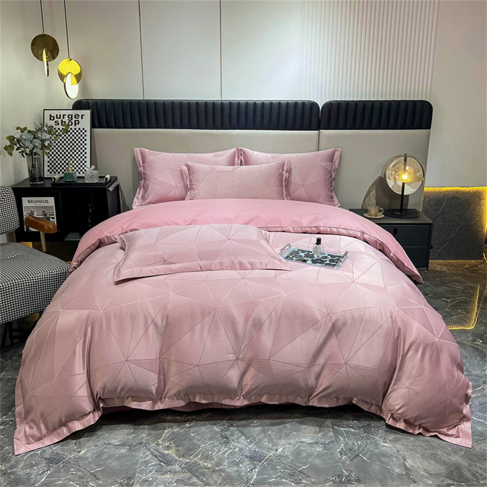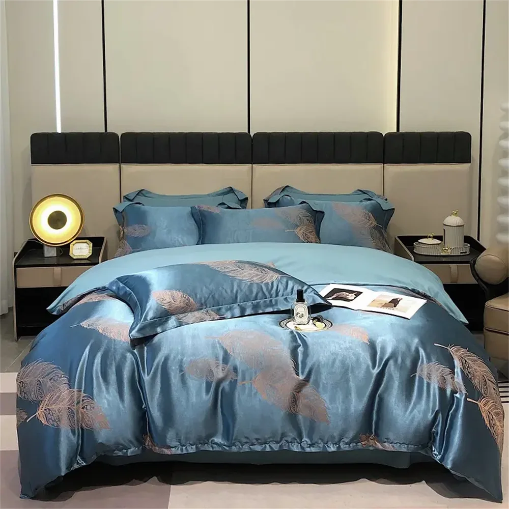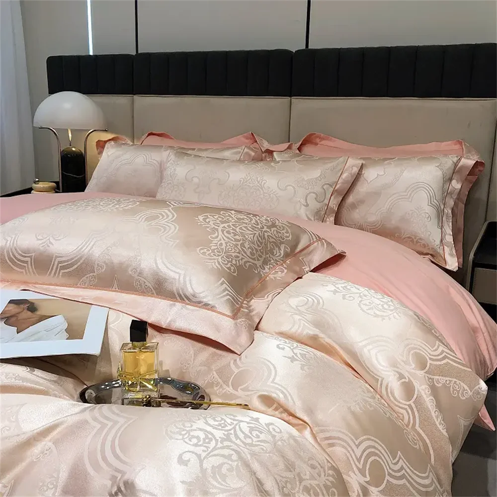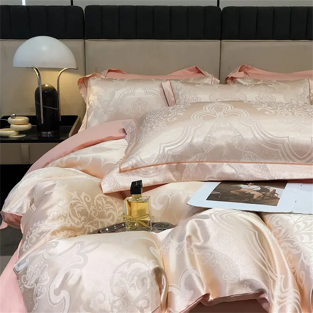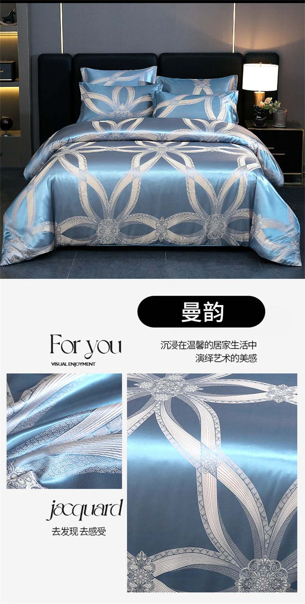 Luxury Satin Jacquard Duvet Cover Set Nordic Double Bed Quilt Cover Bedding Set Adlut Pillowcases Sheet Queen King Home Textiles