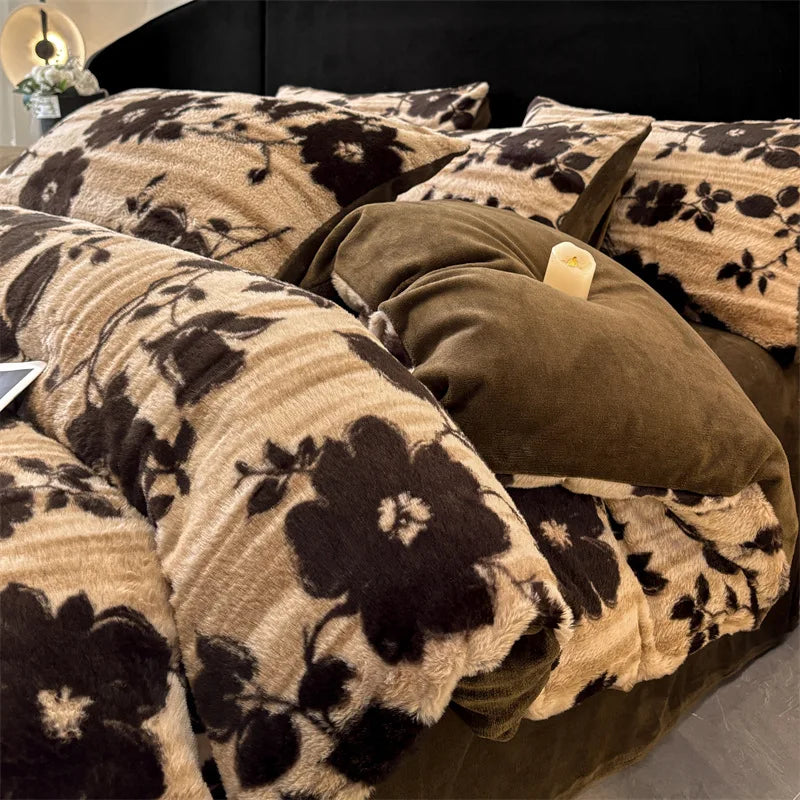 New autumn and winter thickened warm and comfortable rabbit plush four-piece set student dormitory three-piece bedding