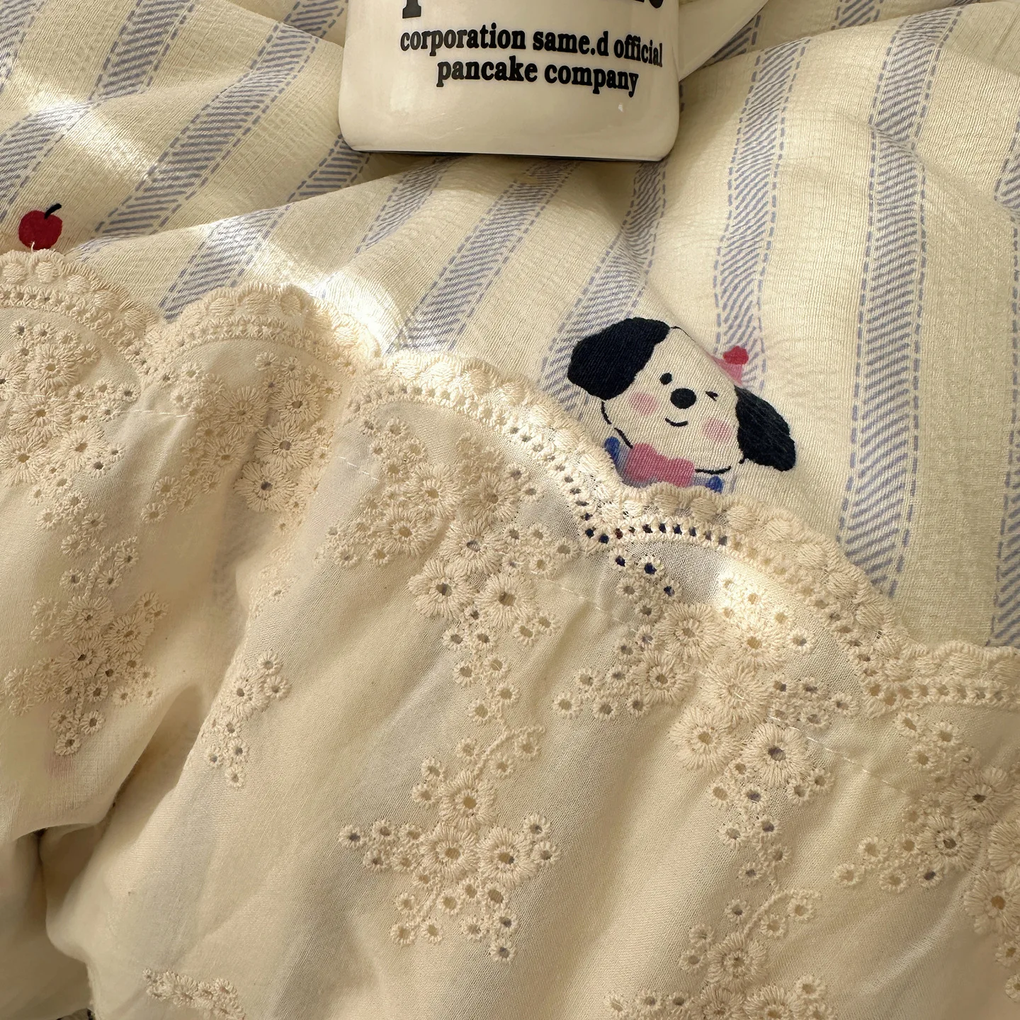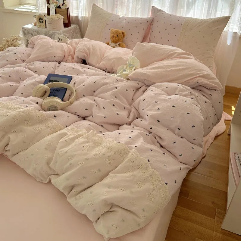 New lace washed cotton bed four-piece set Korean dormitory quilt cover student bed sheet three-piece set