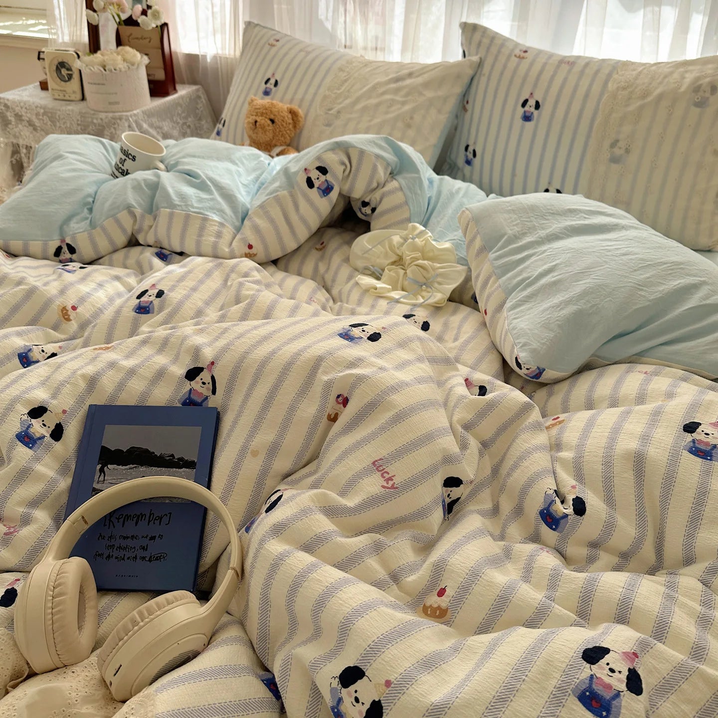New Stripe Series Quilt Cover Skin Friendly 4-piece Bedding Set Pillow Case with Bed Sheet Four General 150x200 200x230