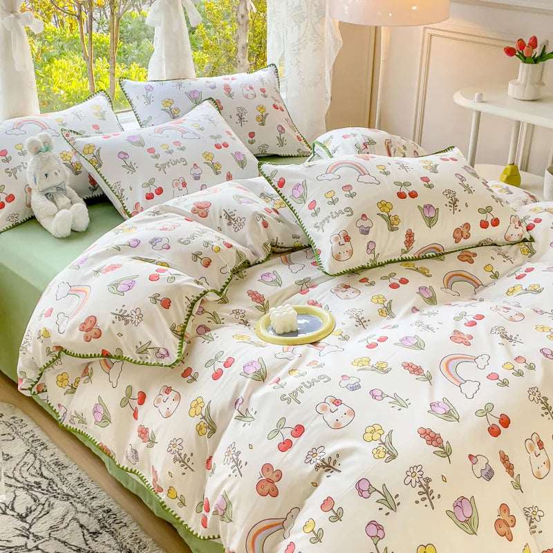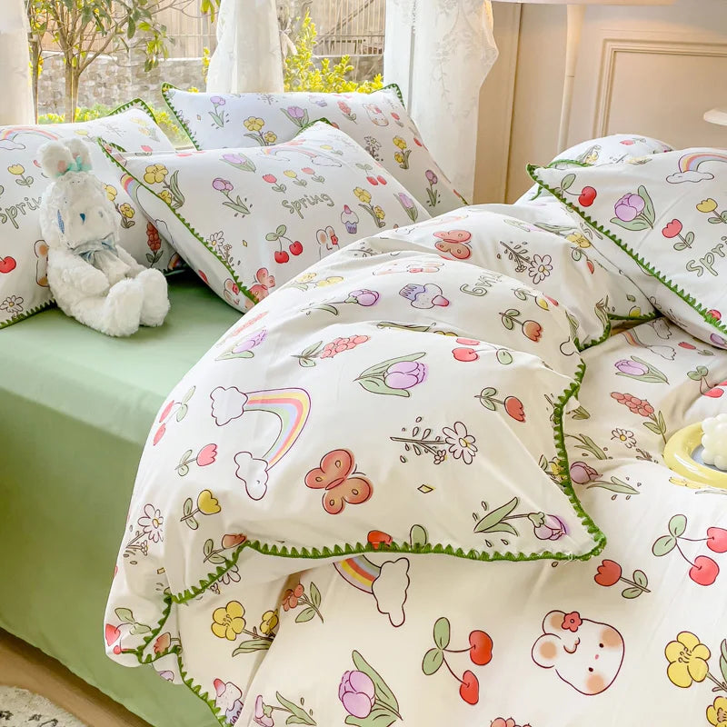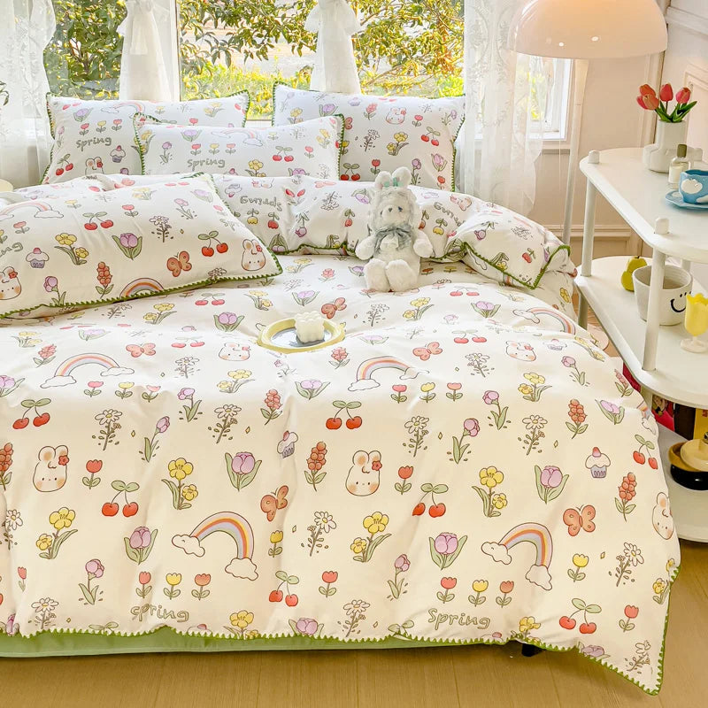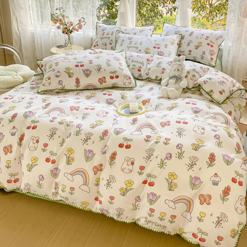 Pastoral Girls Flower Bedding Sets, Washed Cotton Bed Linens, Soft Quilt Cover Sheet Set, Simple Bedspread, Home Textiles
