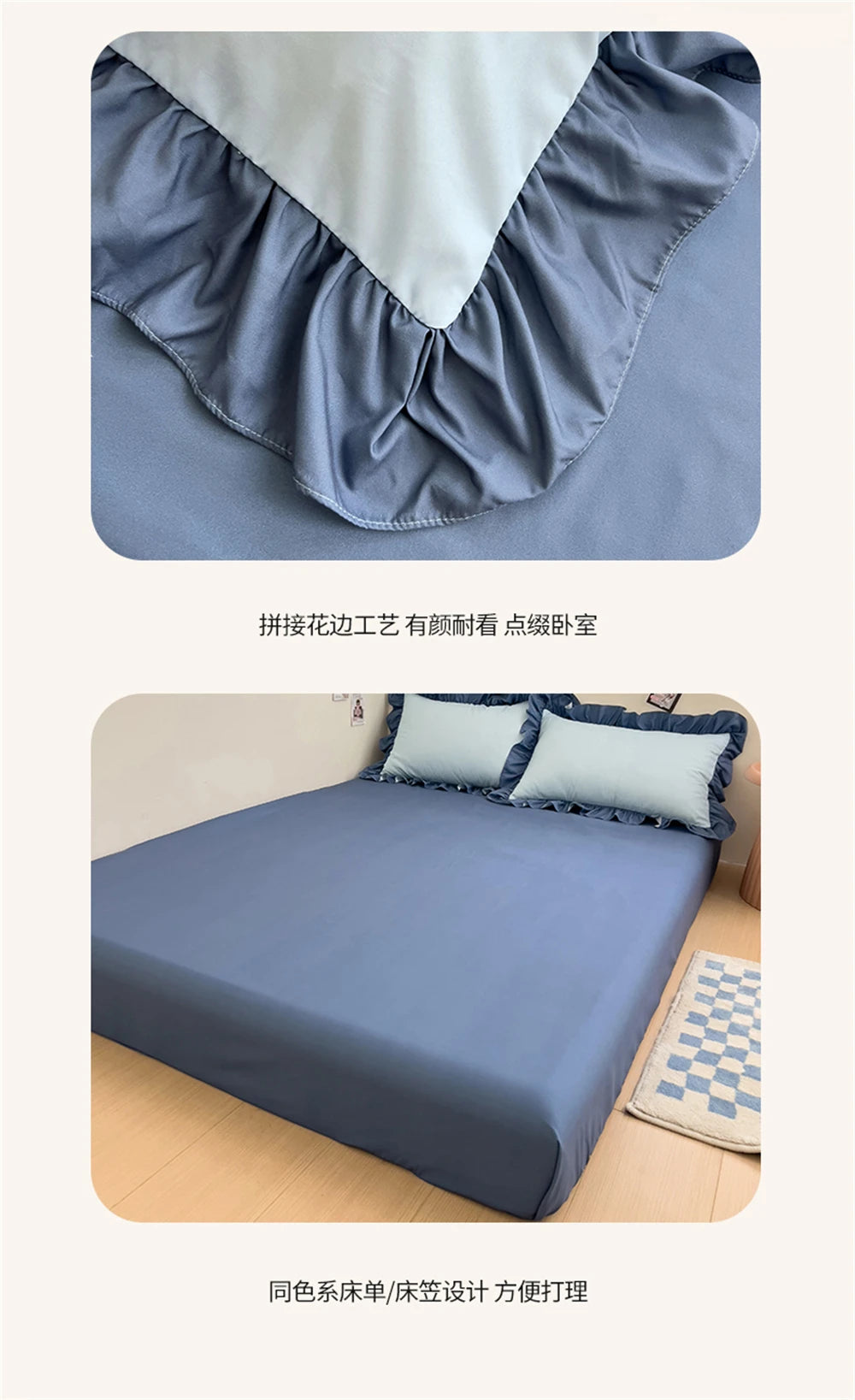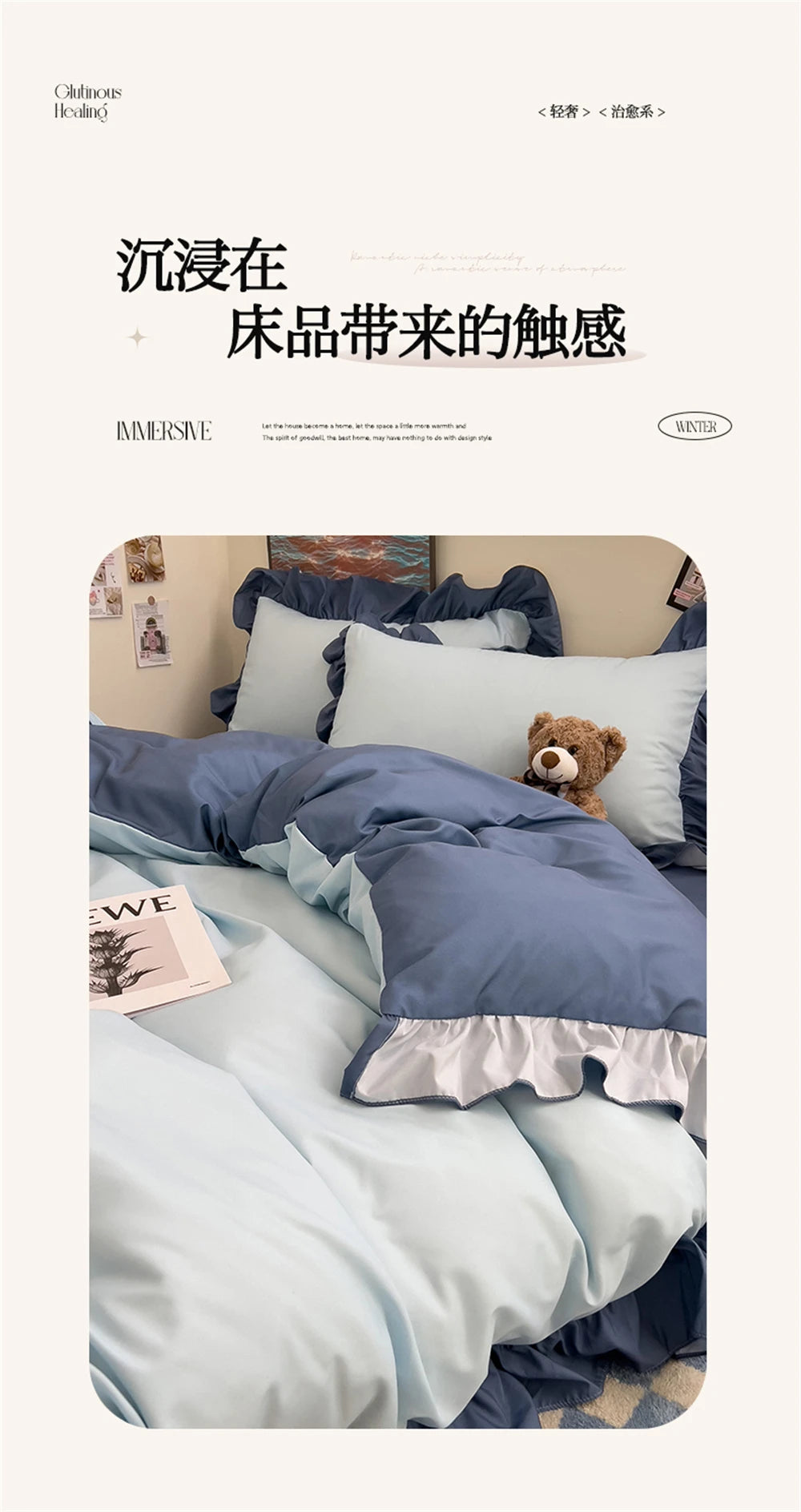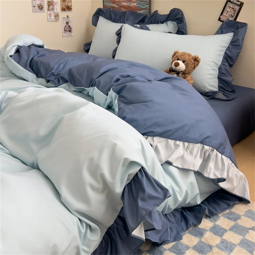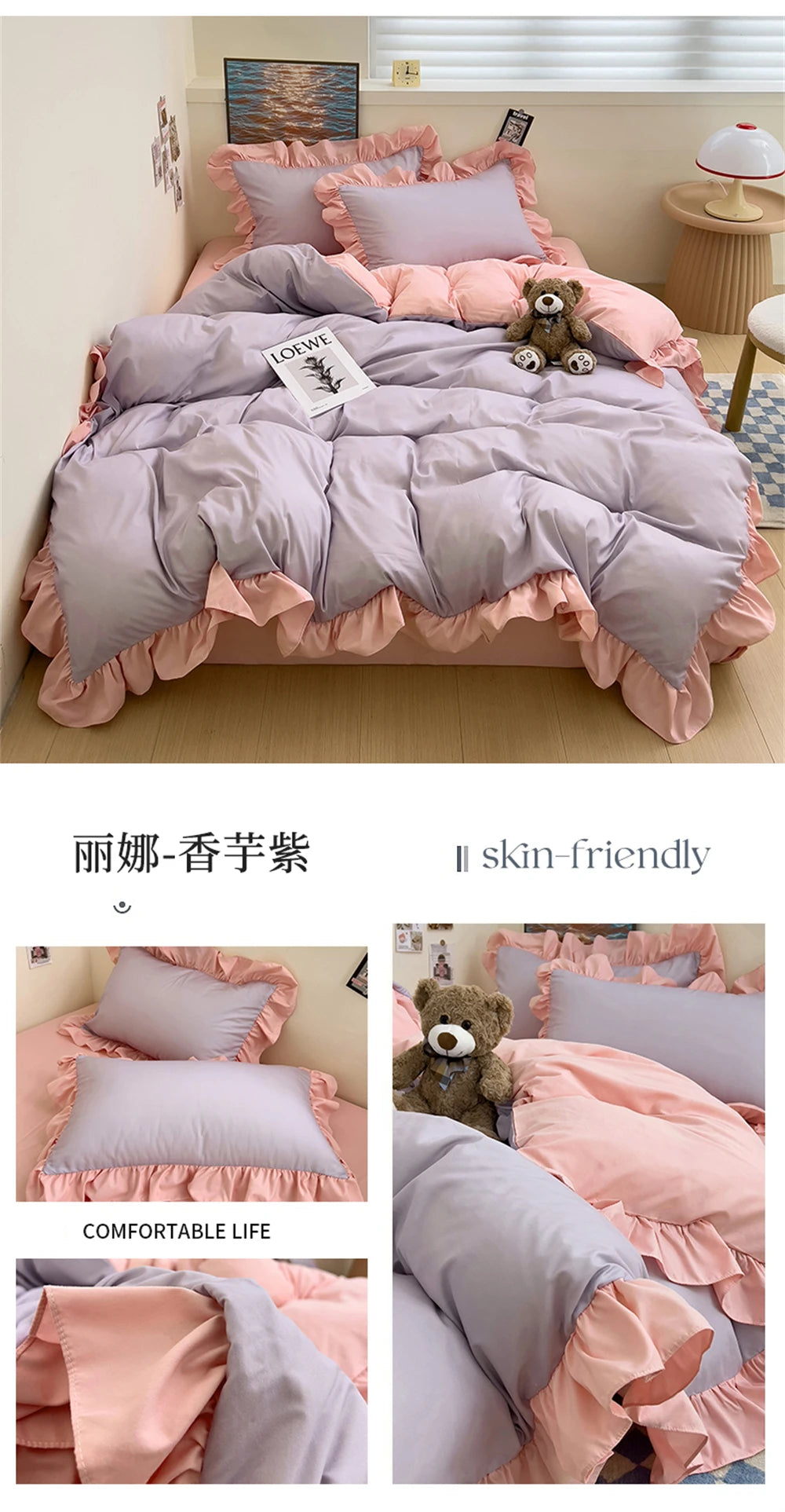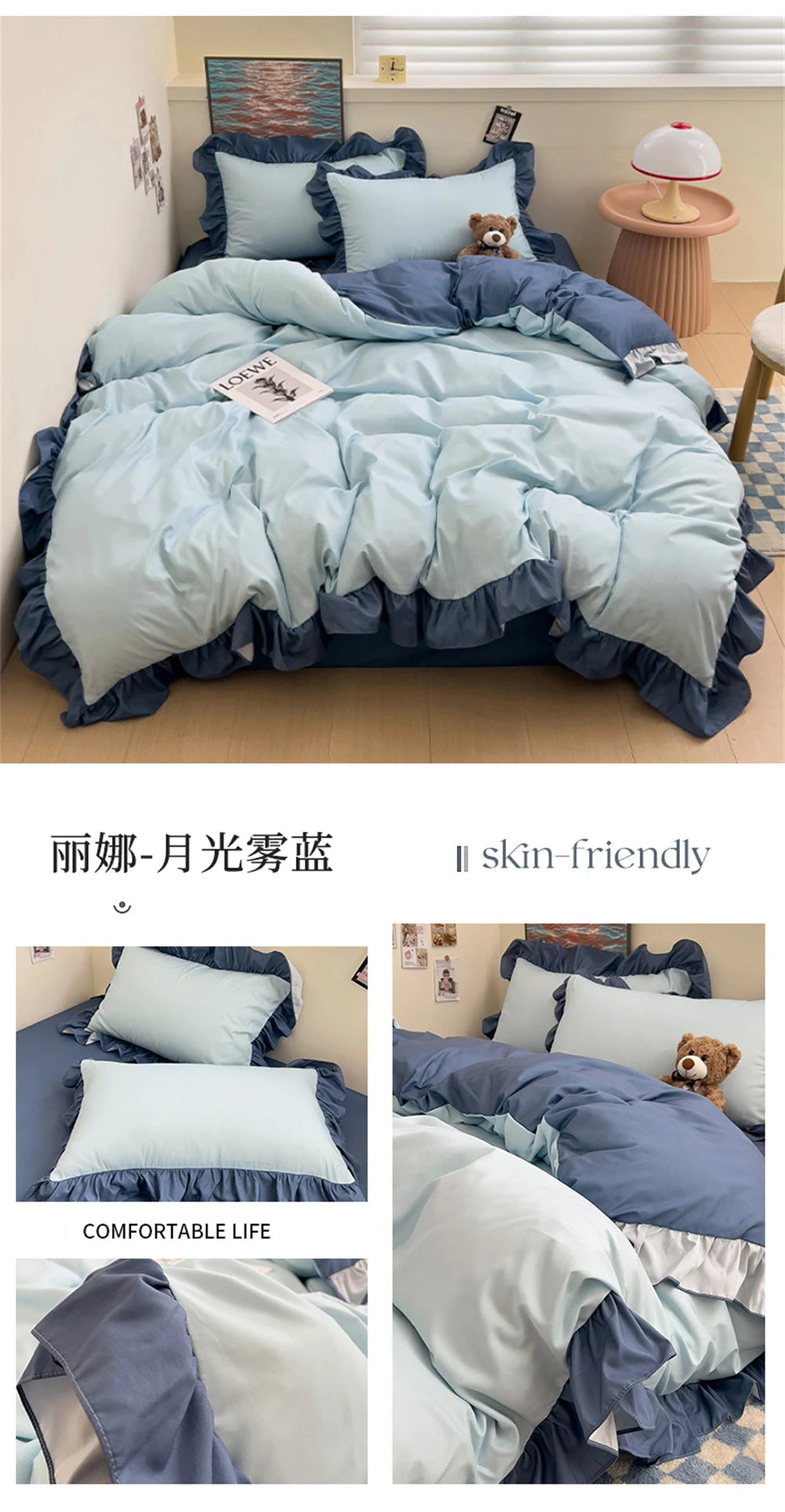 Princess Style Bedding Set Soft Bedroom Decor Comforter Ruffle Duvet Cover Set Pillowcase Bed Sheet Washed Cotton Four Piece Set