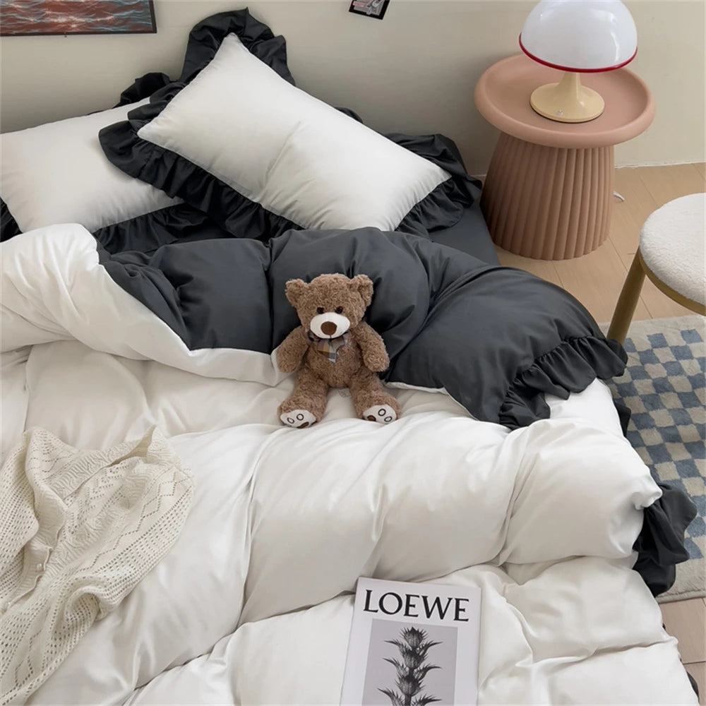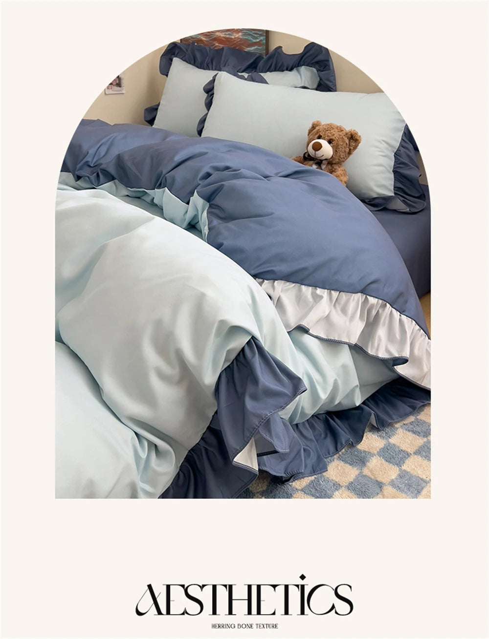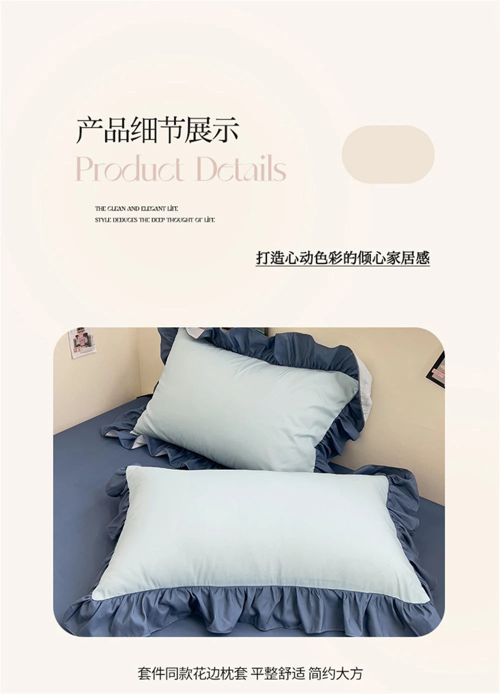 Princess Style Bedding Set Soft Solid Color Ruffle Duvet Cover Set Comforter Pillowcase Bed Sheet Washed Cotton Four Pieces Set