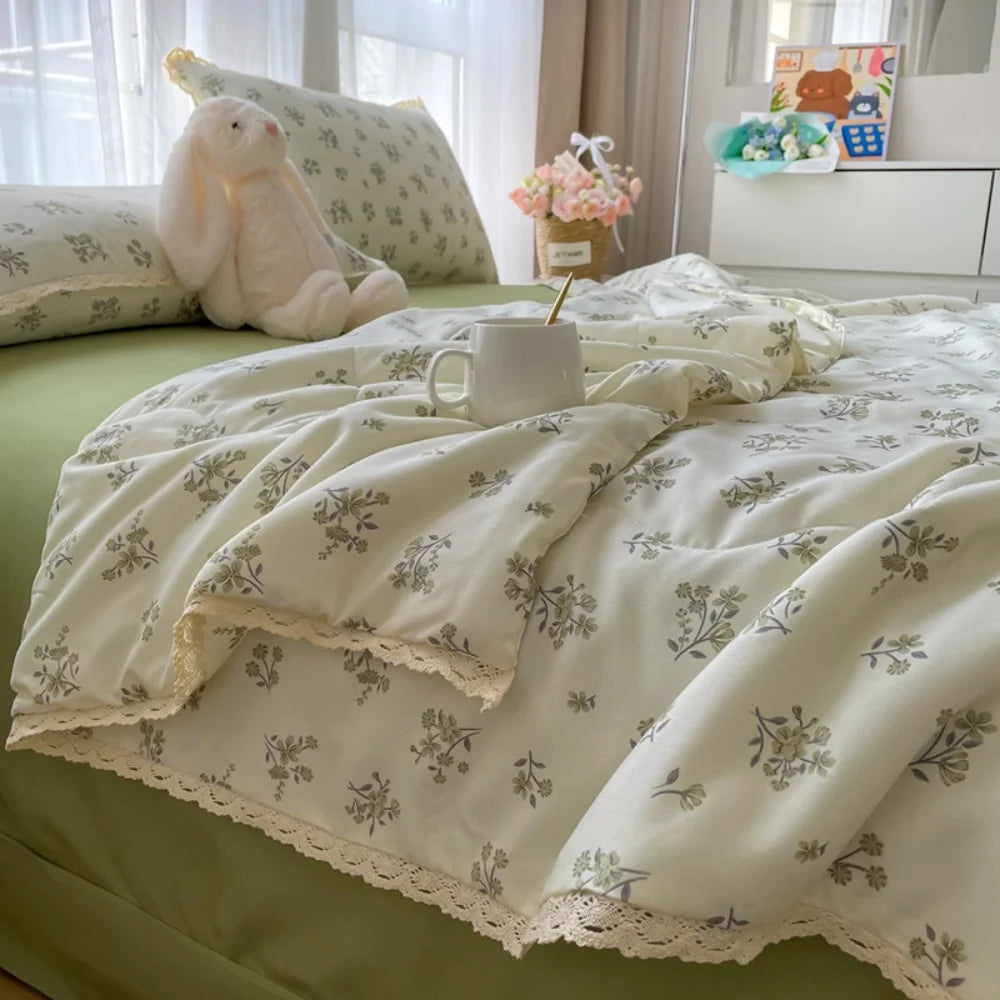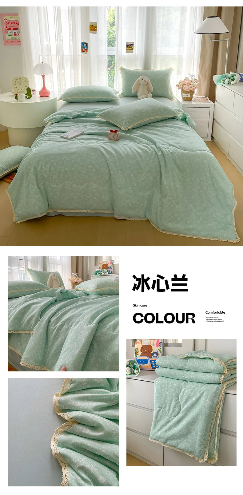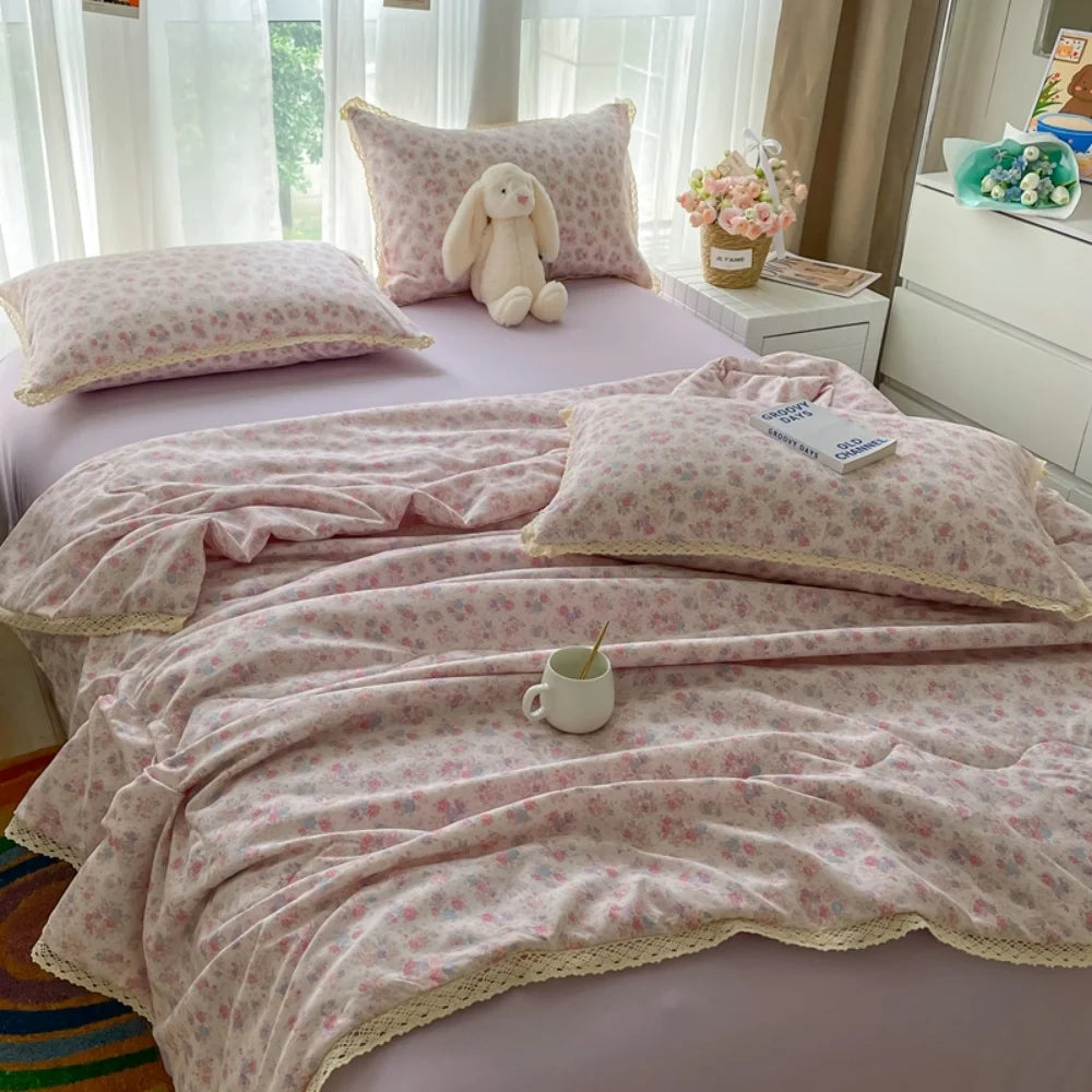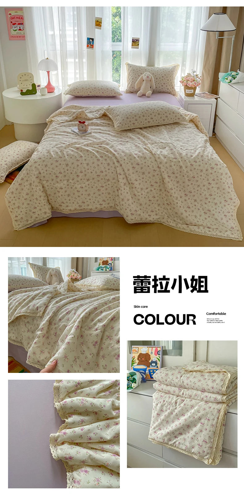 Printed Floral Summer Quilt Four Piece Set Suitable for Bedroom Bedding Set Summer Quilt Bed Sheet With Pillowcases Home Textile