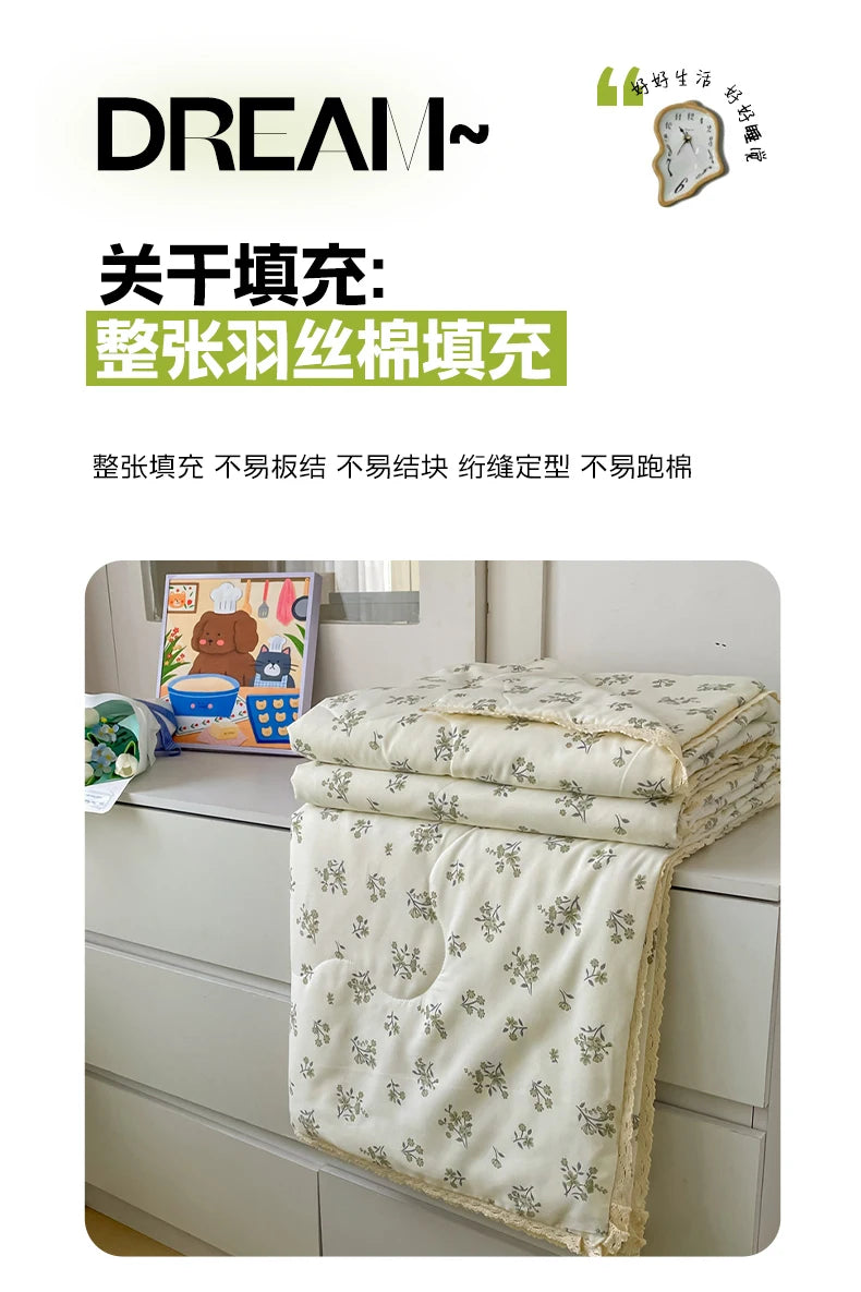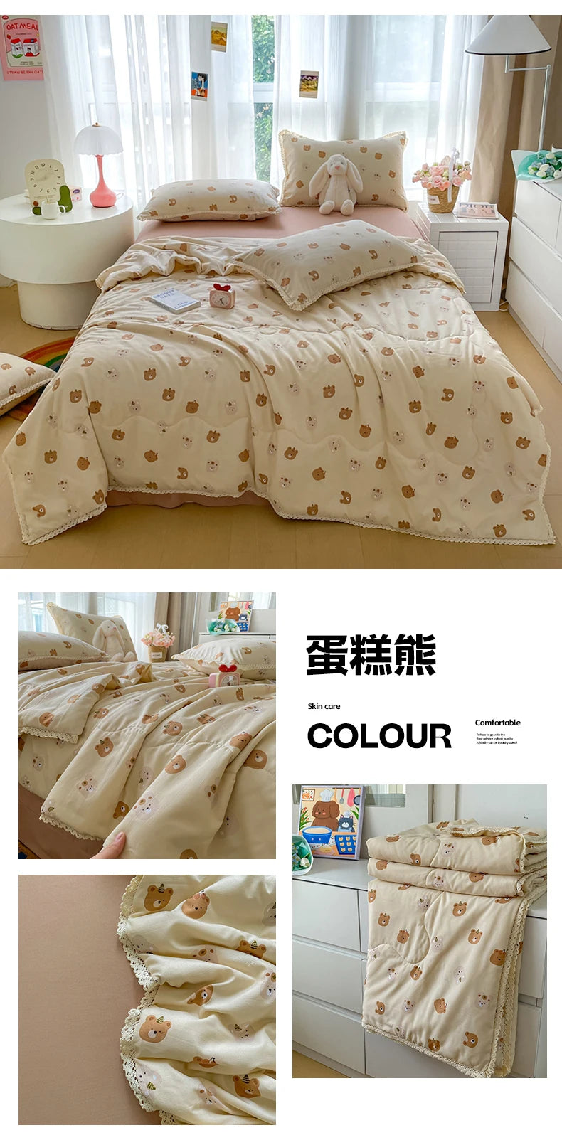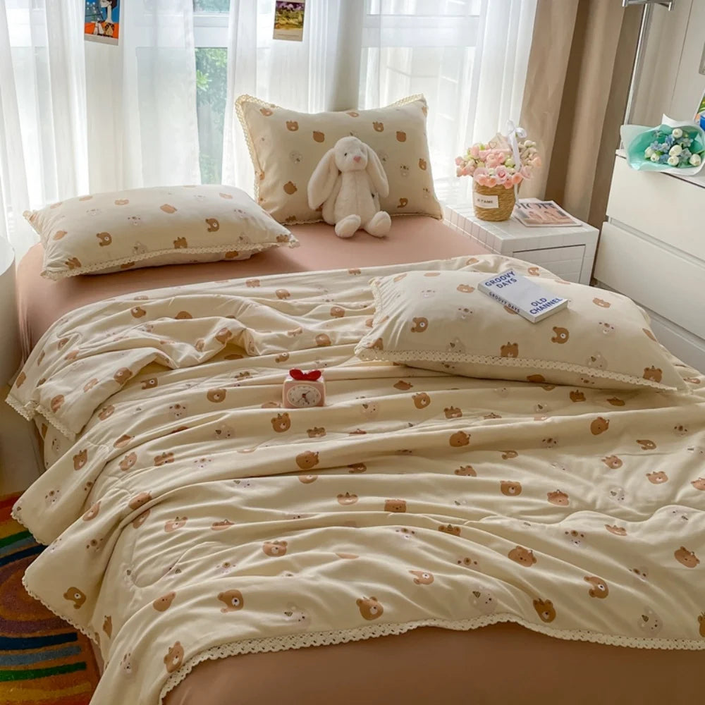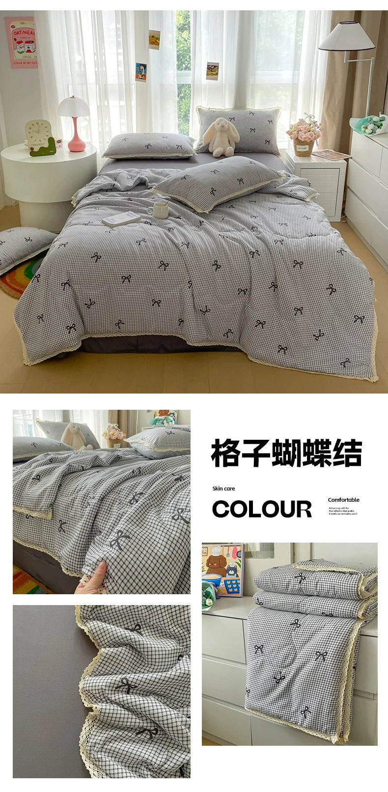 Printed Floral Summer Quilt Four Piece Set Suitable for Bedroom Bedding Set Summer Quilt Bed Sheet With Pillowcases Home Textile