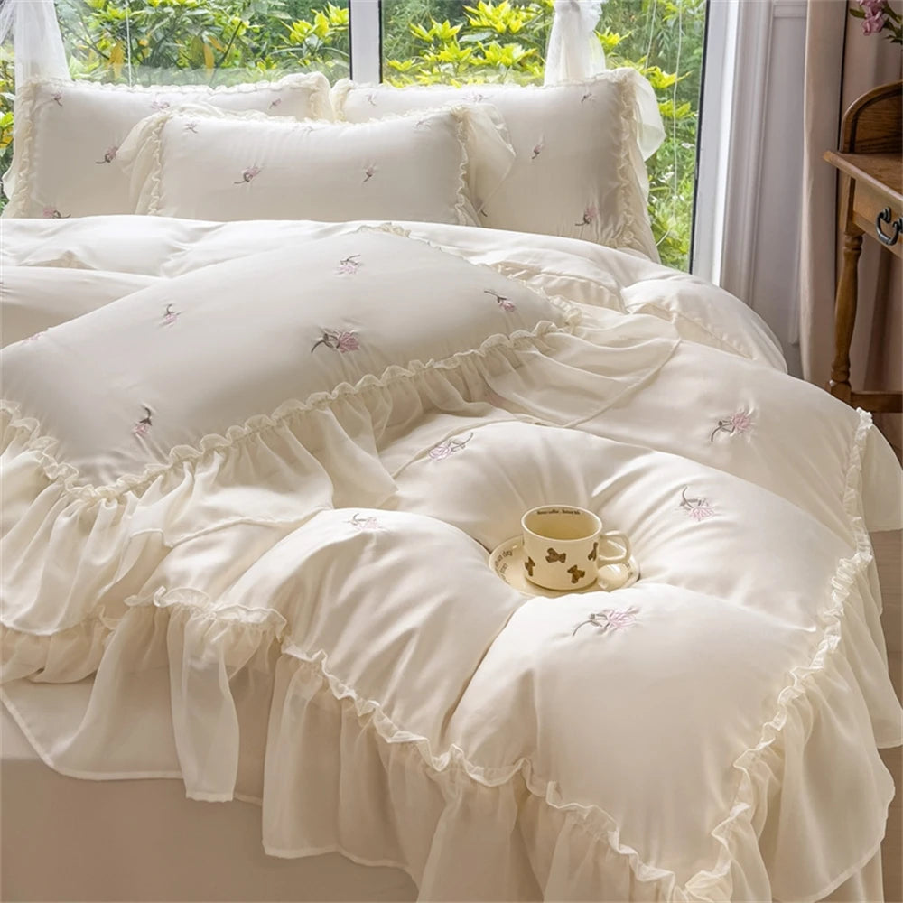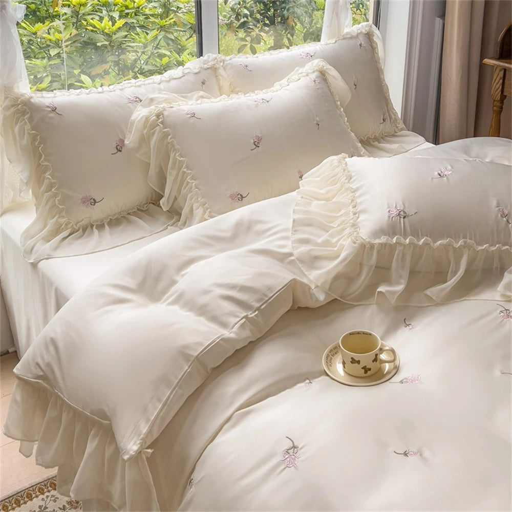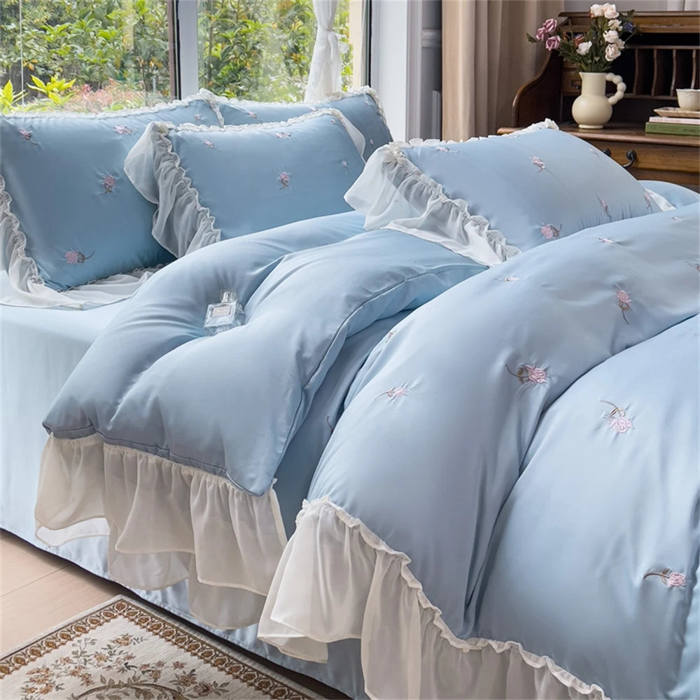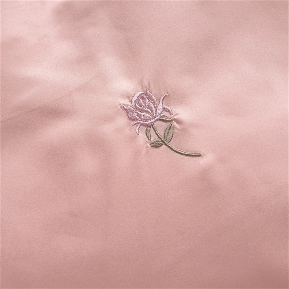 Rose Embroidery Bedding Set Silky Luxury Bedsheets Set Pillowcase Duvet Cover Bedclothes Skin-friendly Bed Linen Home Textiles
