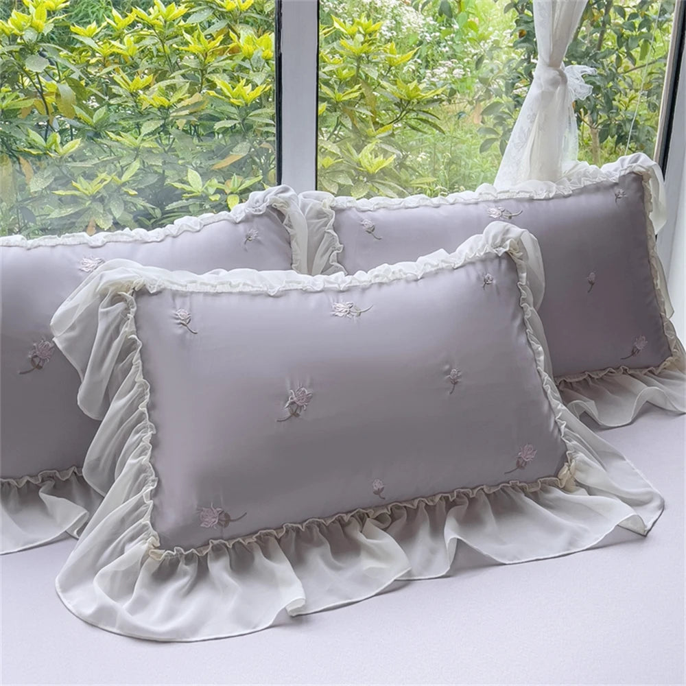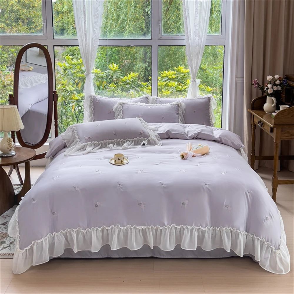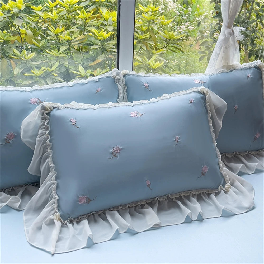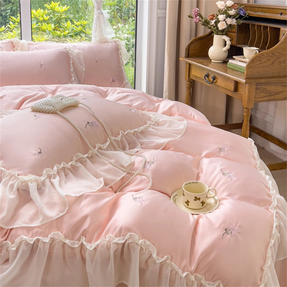 Rose Embroidery Bedding Set Silky Luxury Bedsheets Set Pillowcase Duvet Cover Bedclothes Skin-friendly Bed Linen Home Textiles