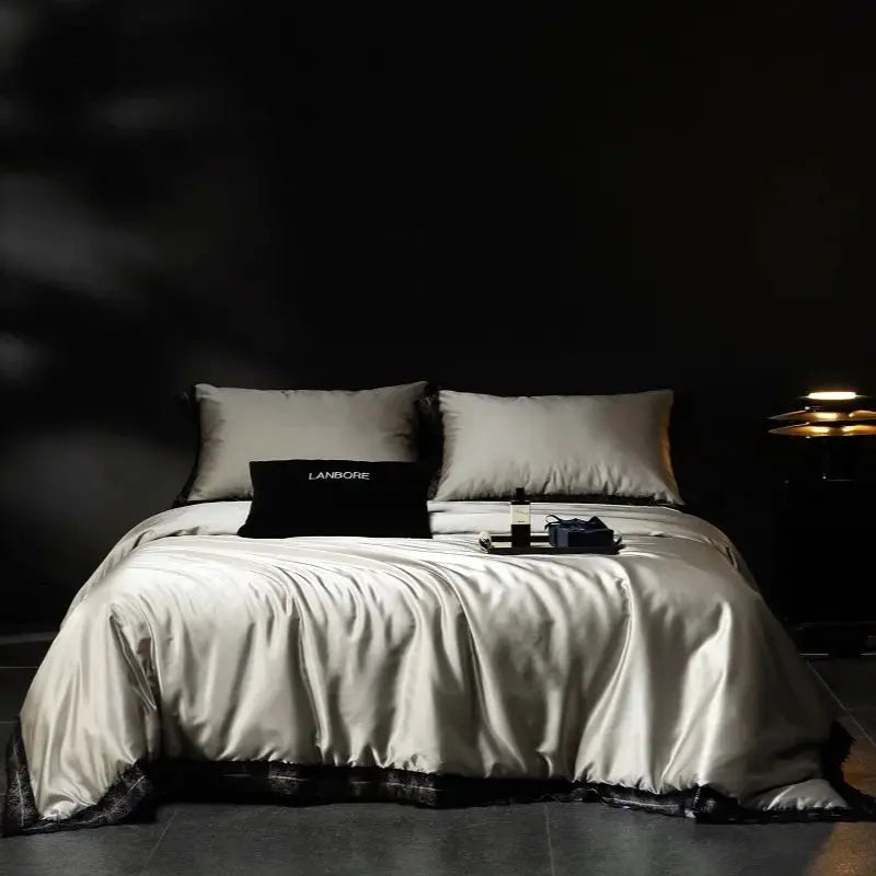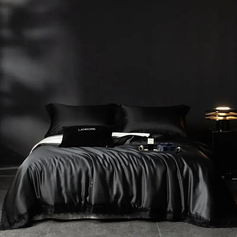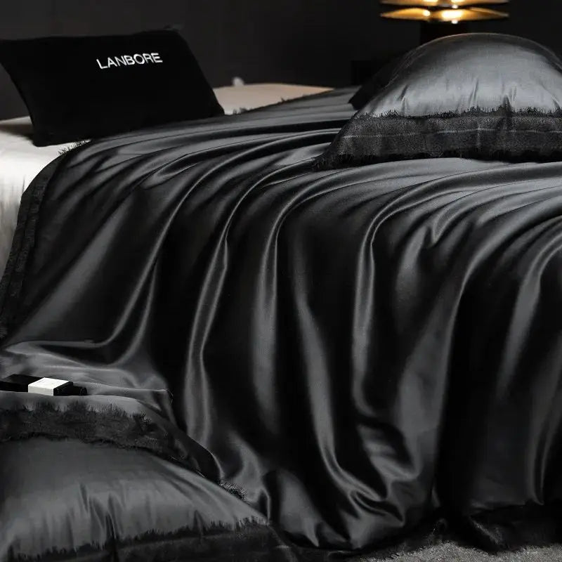 Vintage French Tassel Lace Edge Brocade Lyocell Cotton Soft Silky Bedding Set Duvet Cover Flat/Fitted Bed Sheet Pillowcases 4Pcs