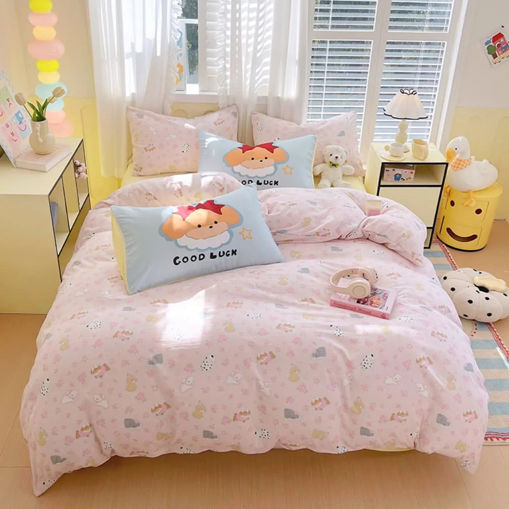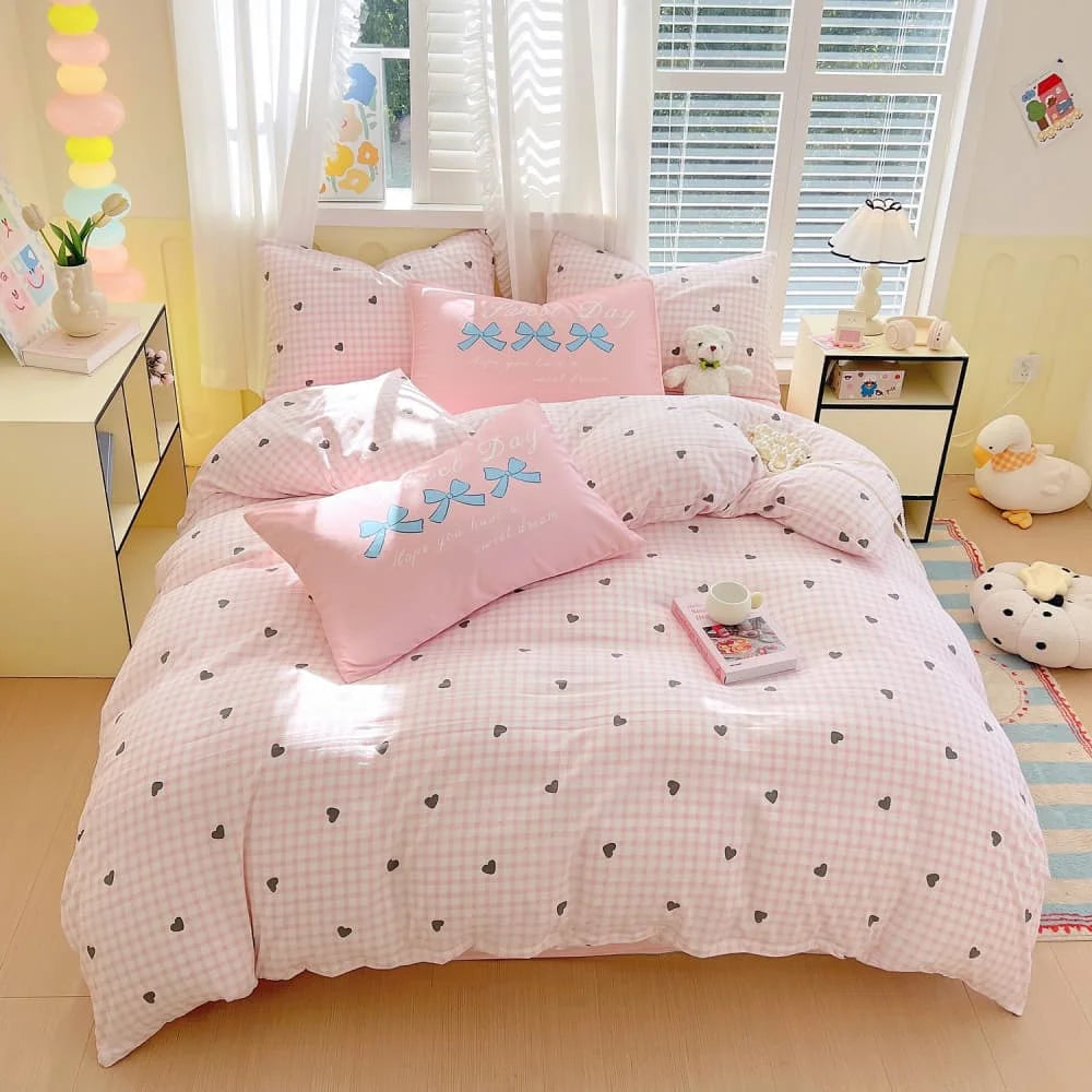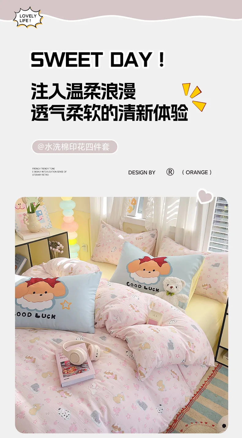 Washed Cotton Pink Duvet Cover Girl Room Decor Breathable Comforter Cover with 2 Pillowcases Bed Linens Bedding Set Home Textile