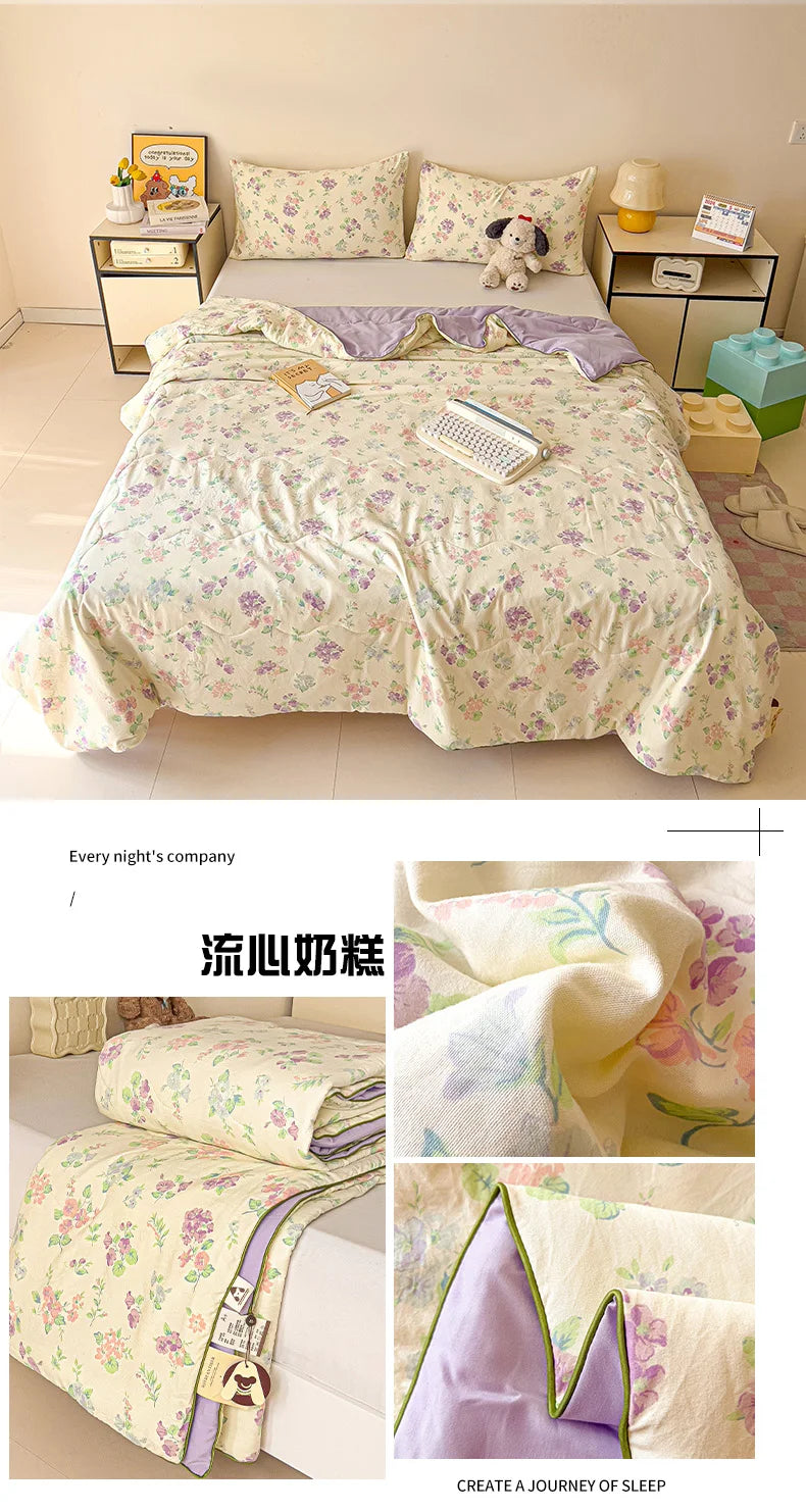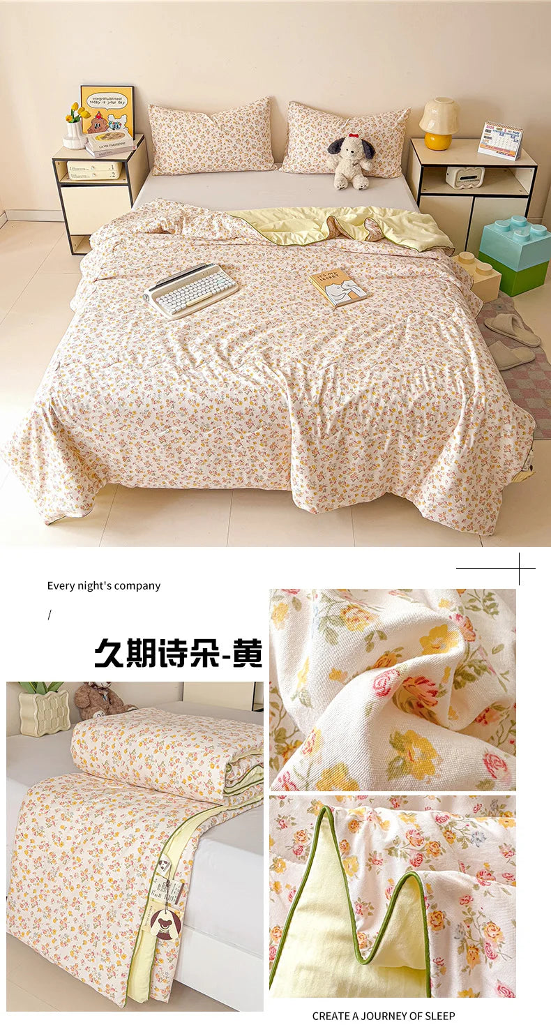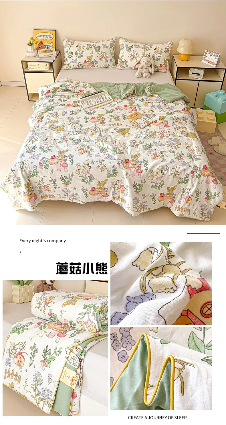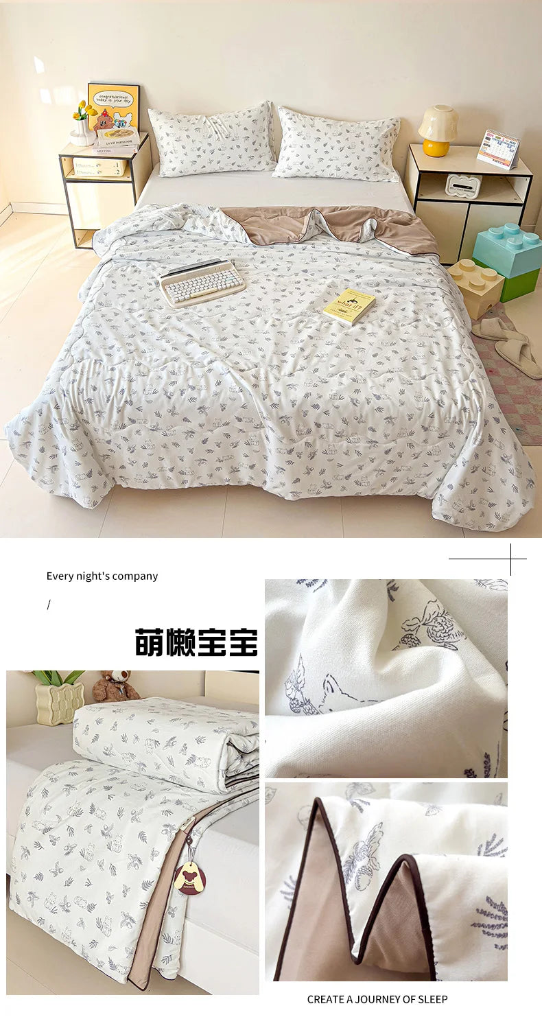 Washed Cotton Printed Summer Quilt Air Conditioner Thin Quilt Machine Washable Lightweight Single Double Bedding Soft Breathable