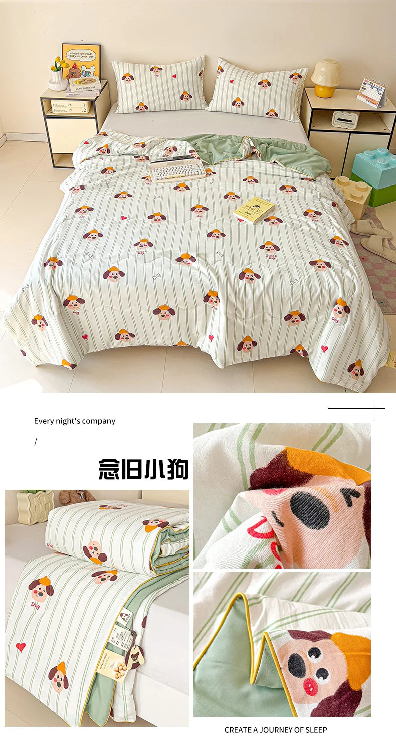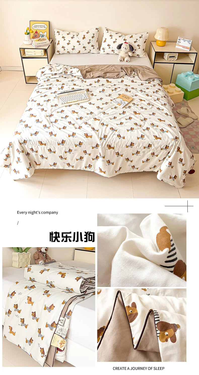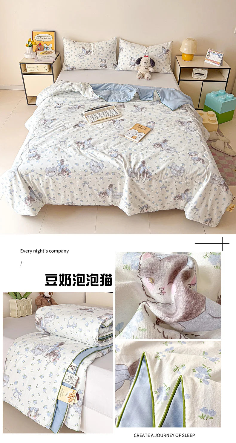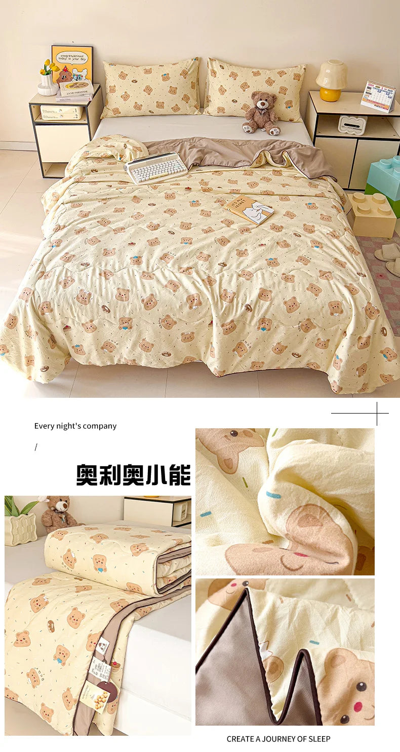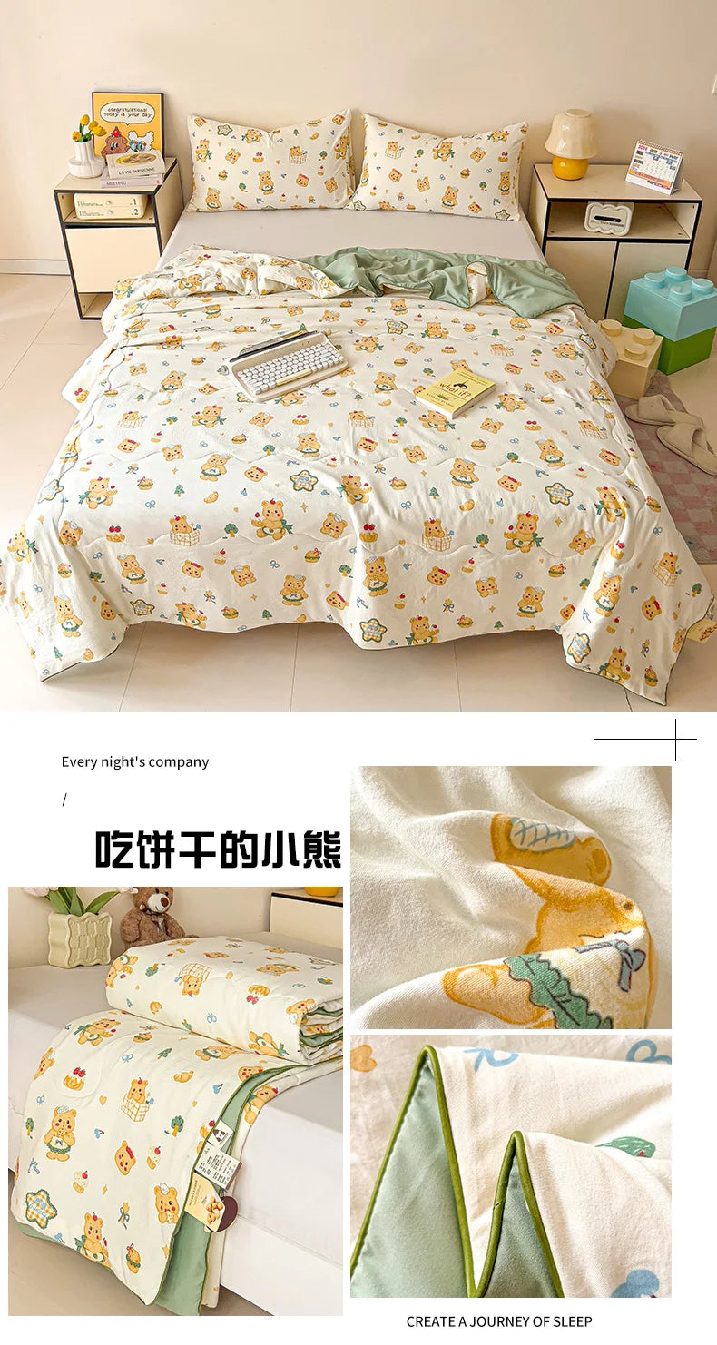 Washed Cotton Printed Summer Quilt Air Conditioner Thin Quilt Machine Washable Lightweight Single Double Bedding Soft Breathable