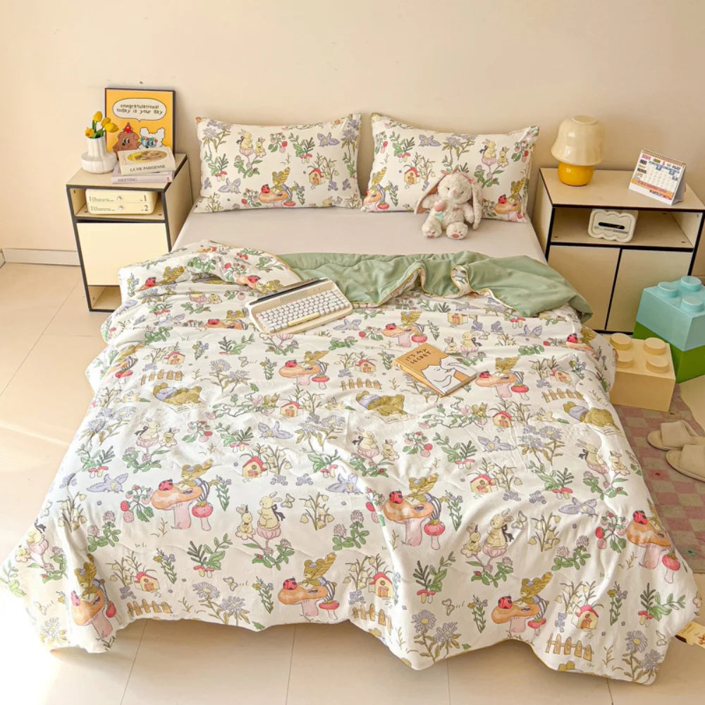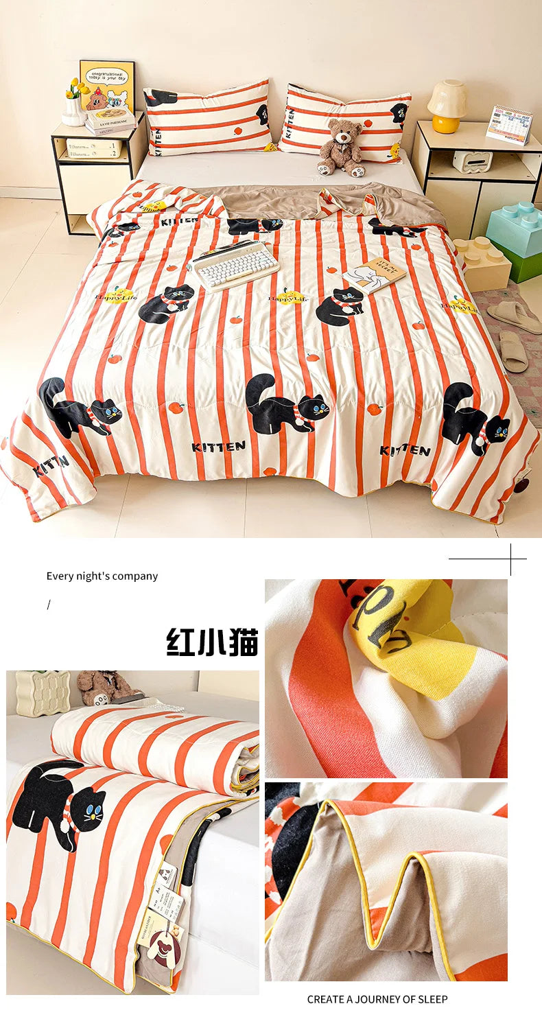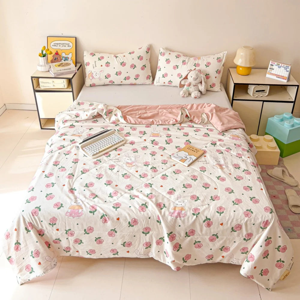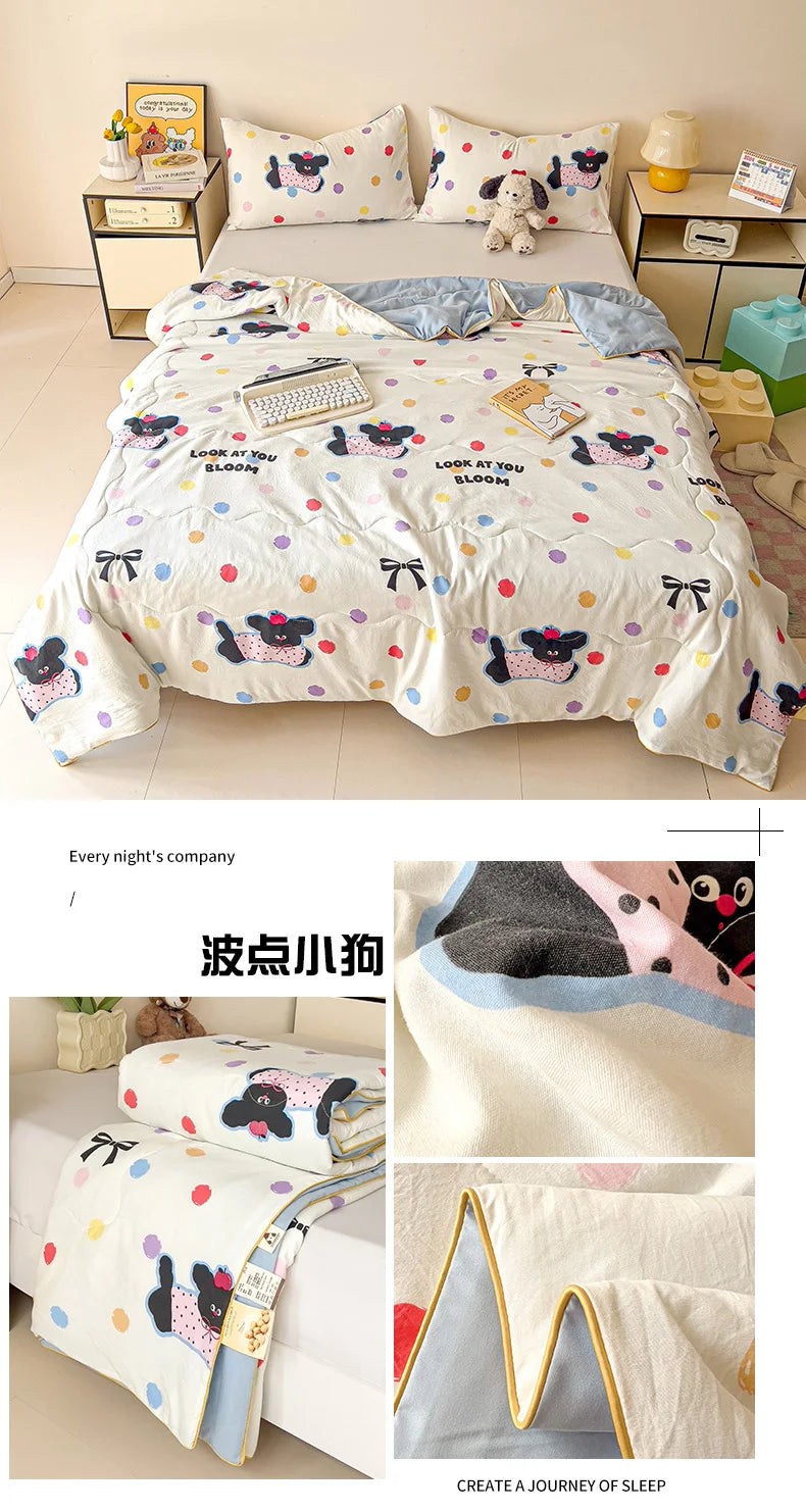Washed Cotton Printed Summer Quilt Air Conditioner Thin Quilt Machine Washable Lightweight Single Double Bedding Soft Breathable