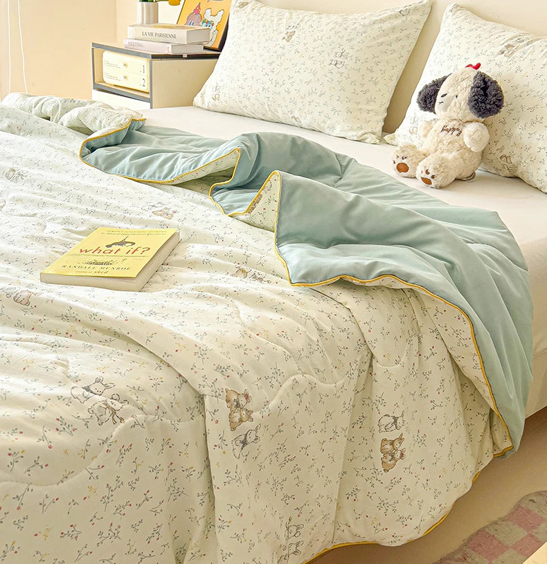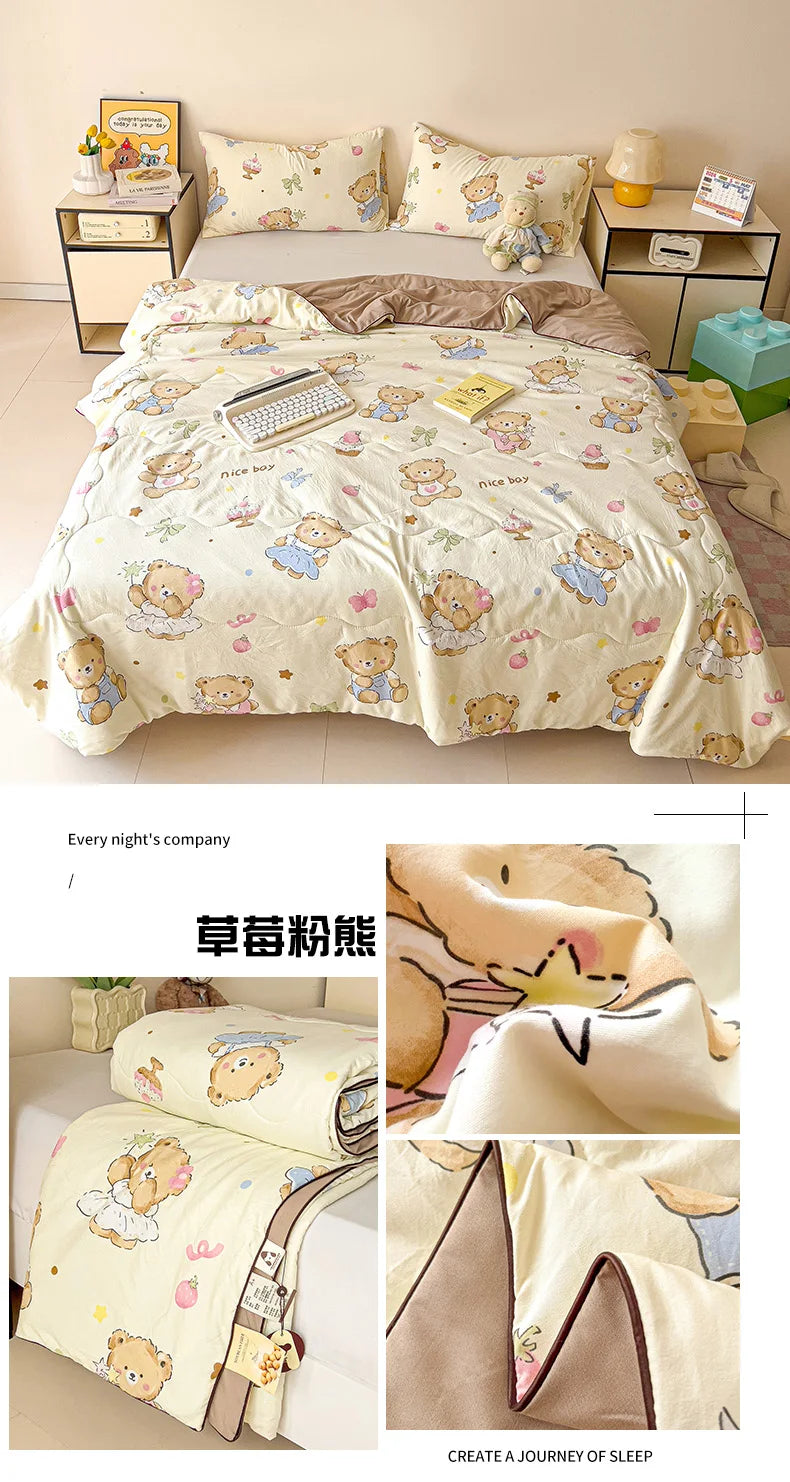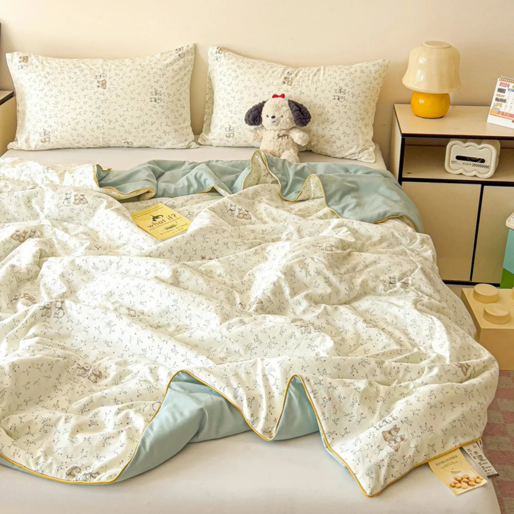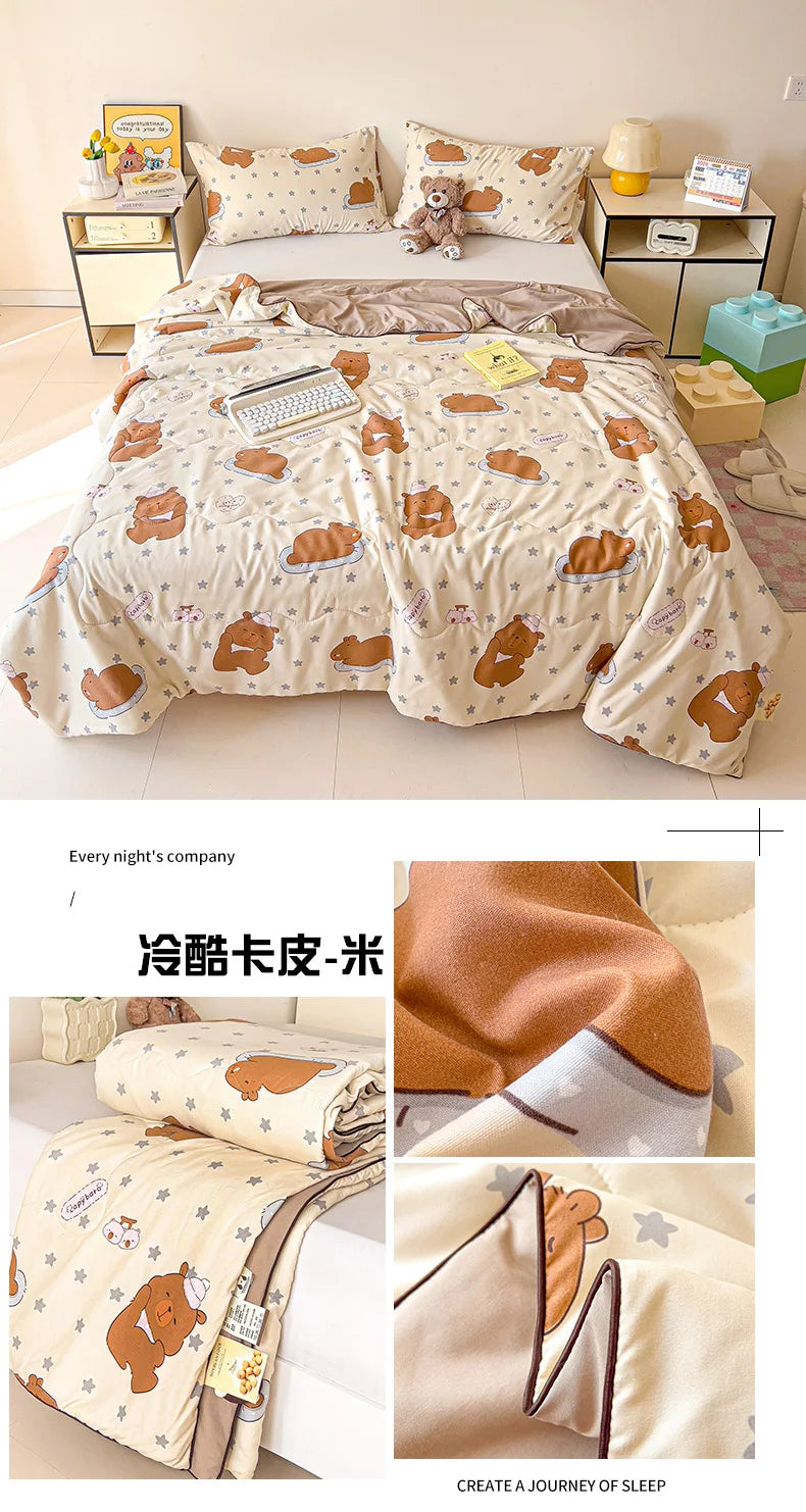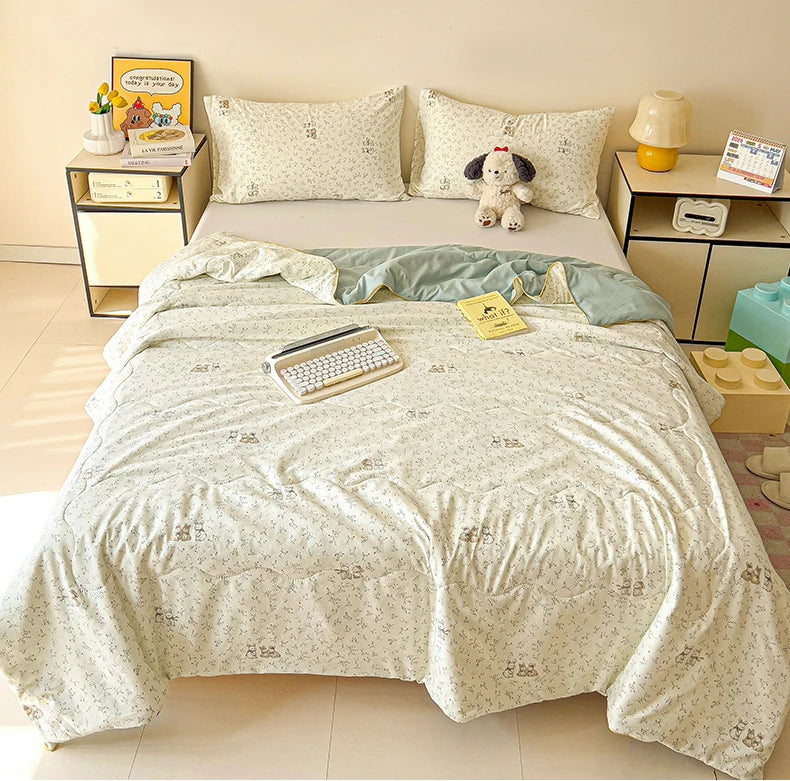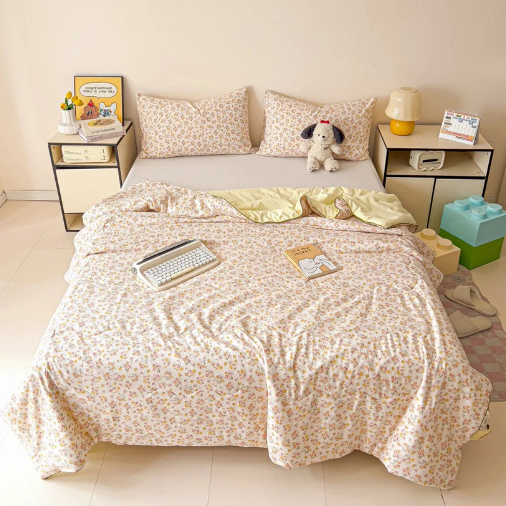 Washed Cotton Printed Summer Quilt Air Conditioner Thin Quilt Machine Washable Lightweight Single Double Bedding Soft Breathable