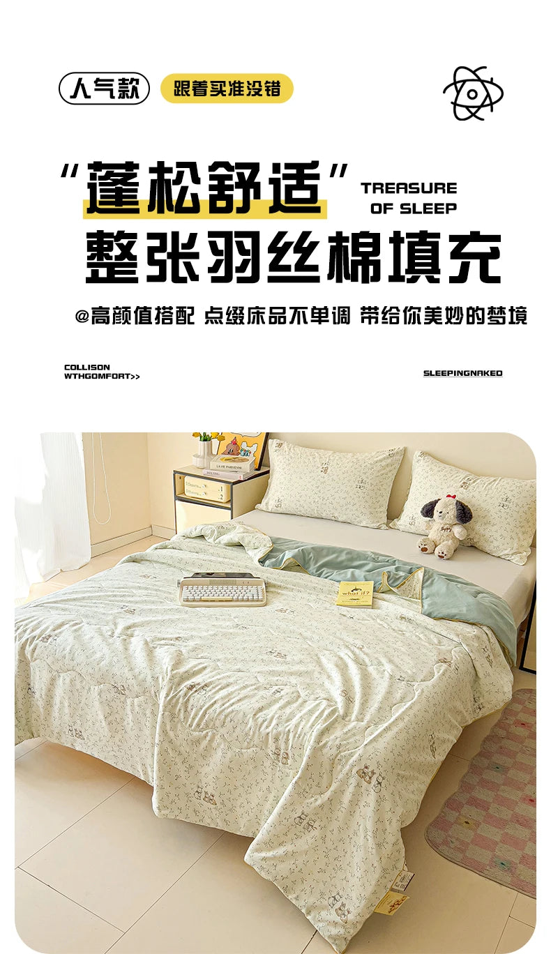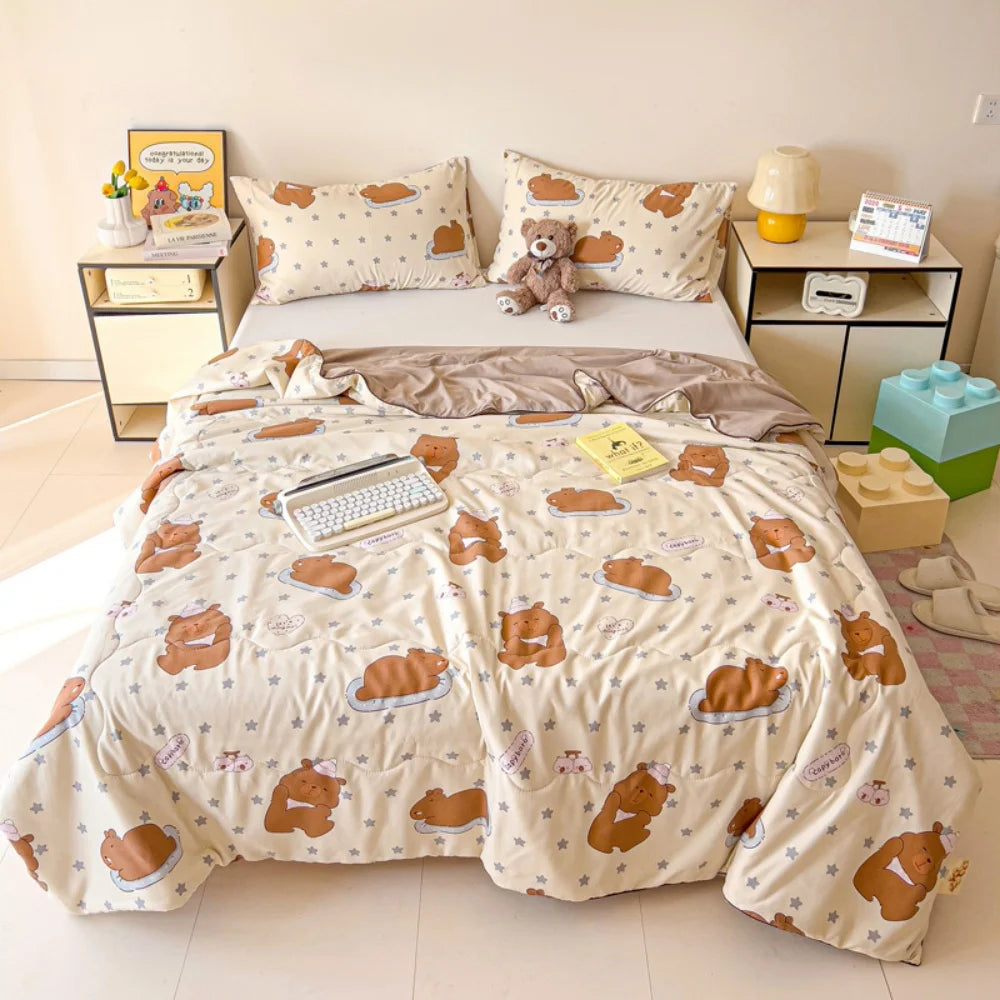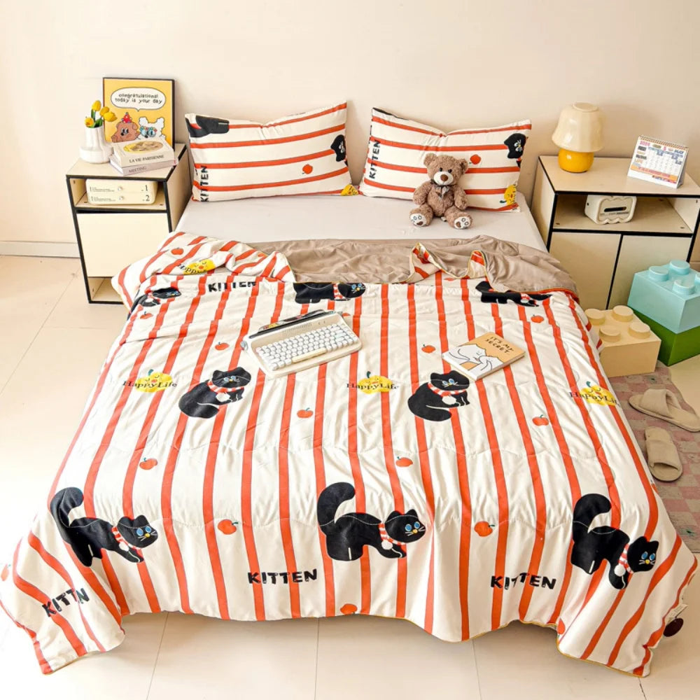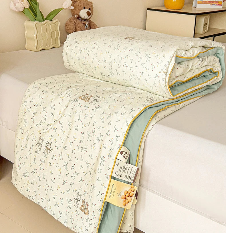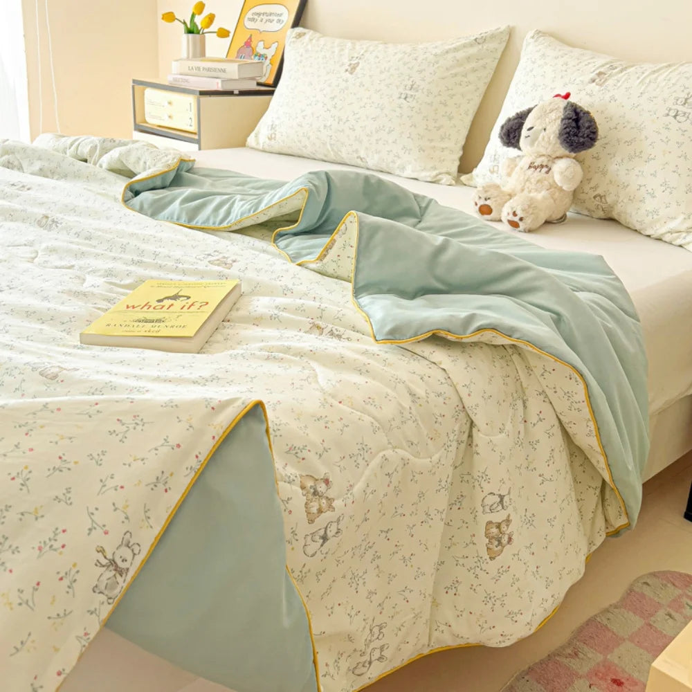 Washed Cotton Printed Summer Quilt Air Conditioner Thin Quilt Machine Washable Lightweight Single Double Bedding Soft Breathable