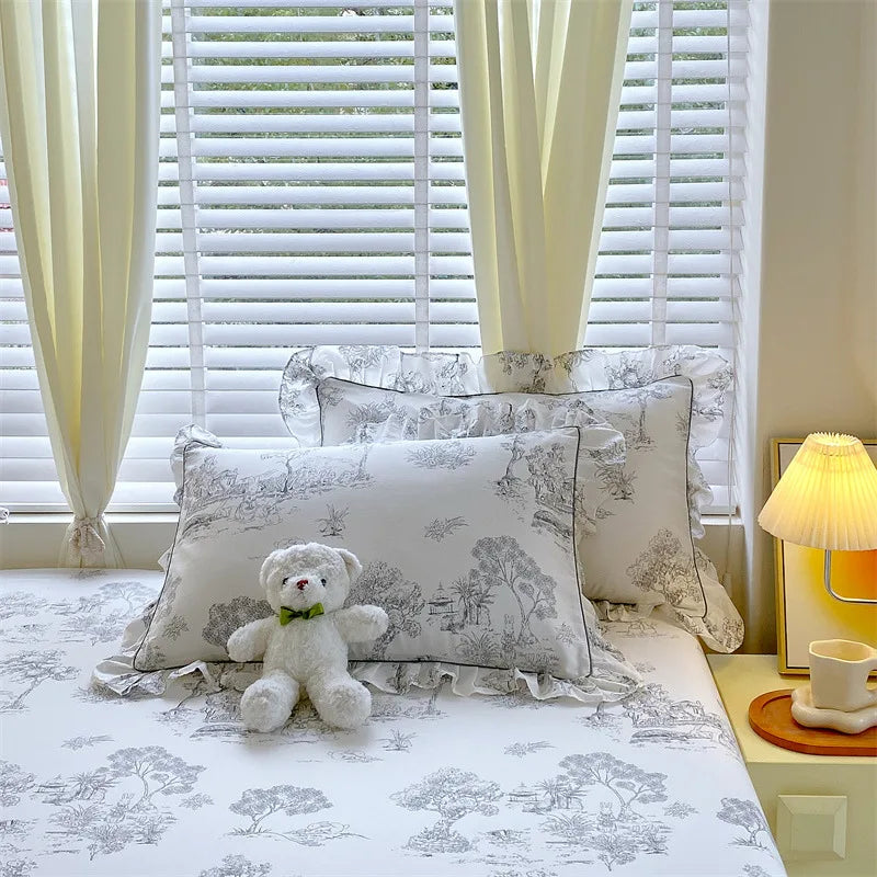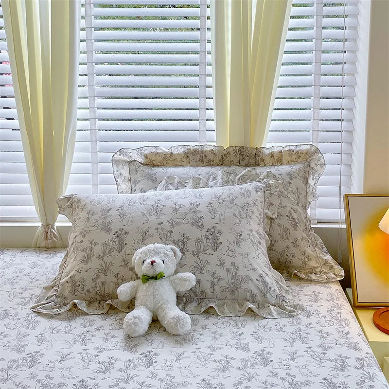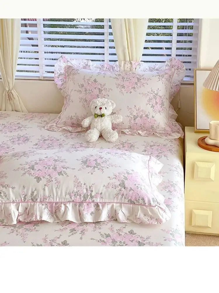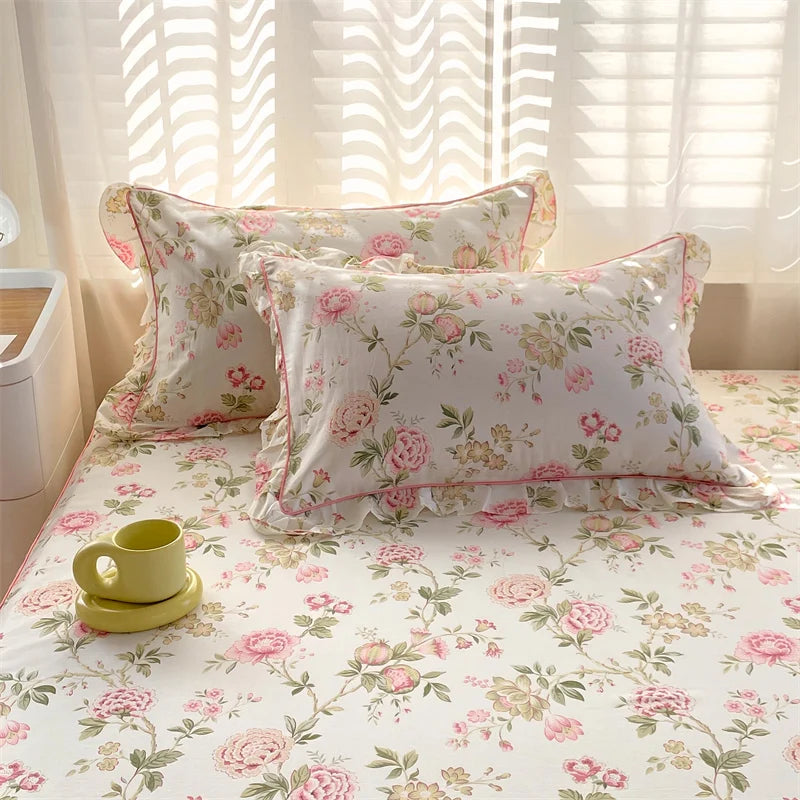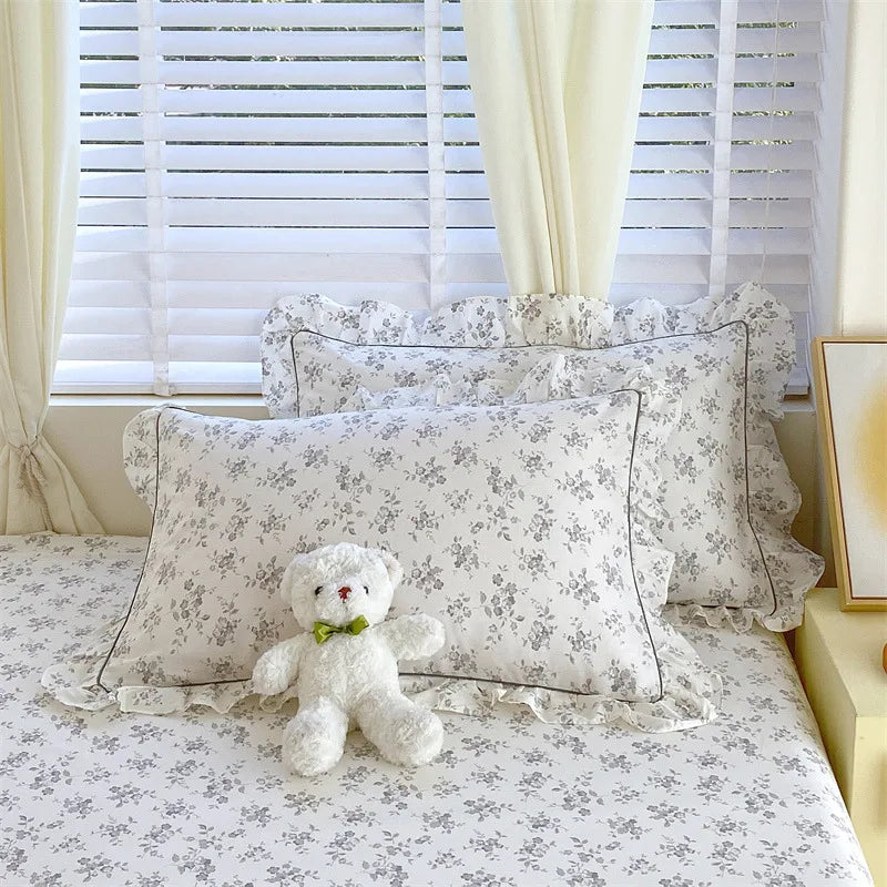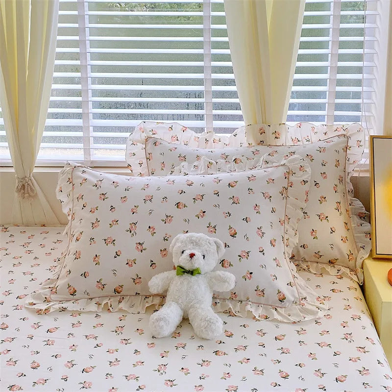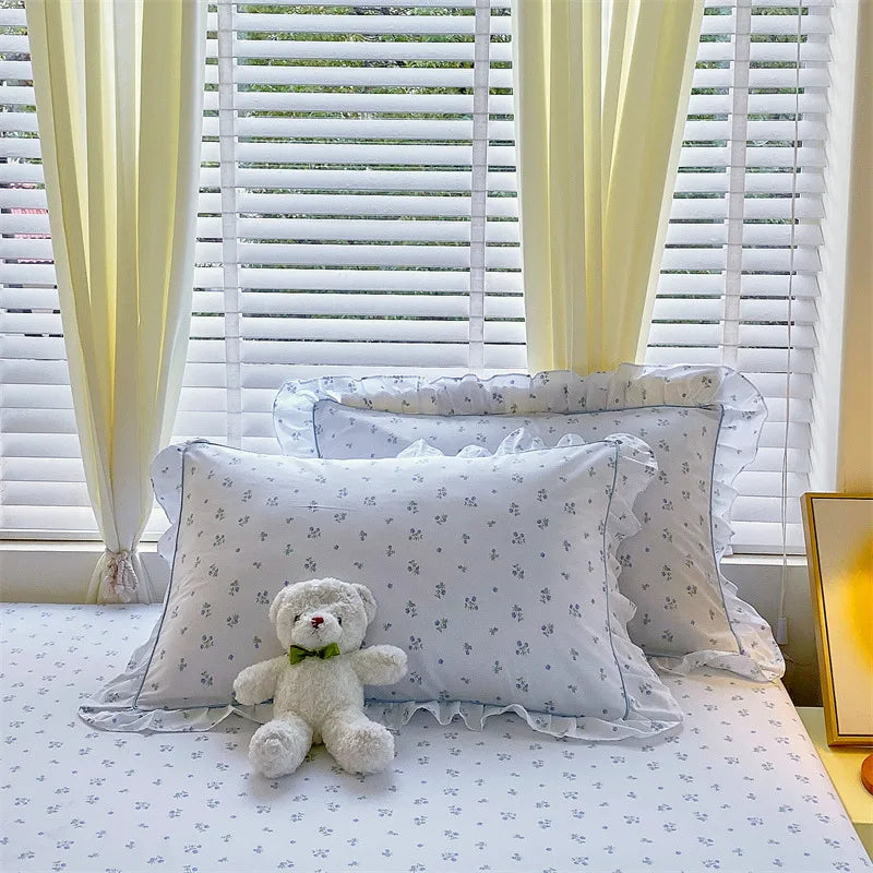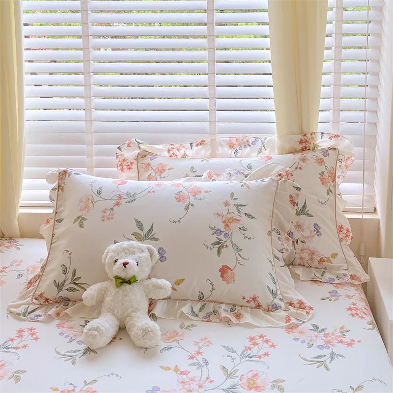 100% Cotton 2pcs Flower Prints Ruffles Pillowcases 48x74cm Sizes Cushion Cover for Bed Floral Style Adults Kids Pillowslip 베개커버