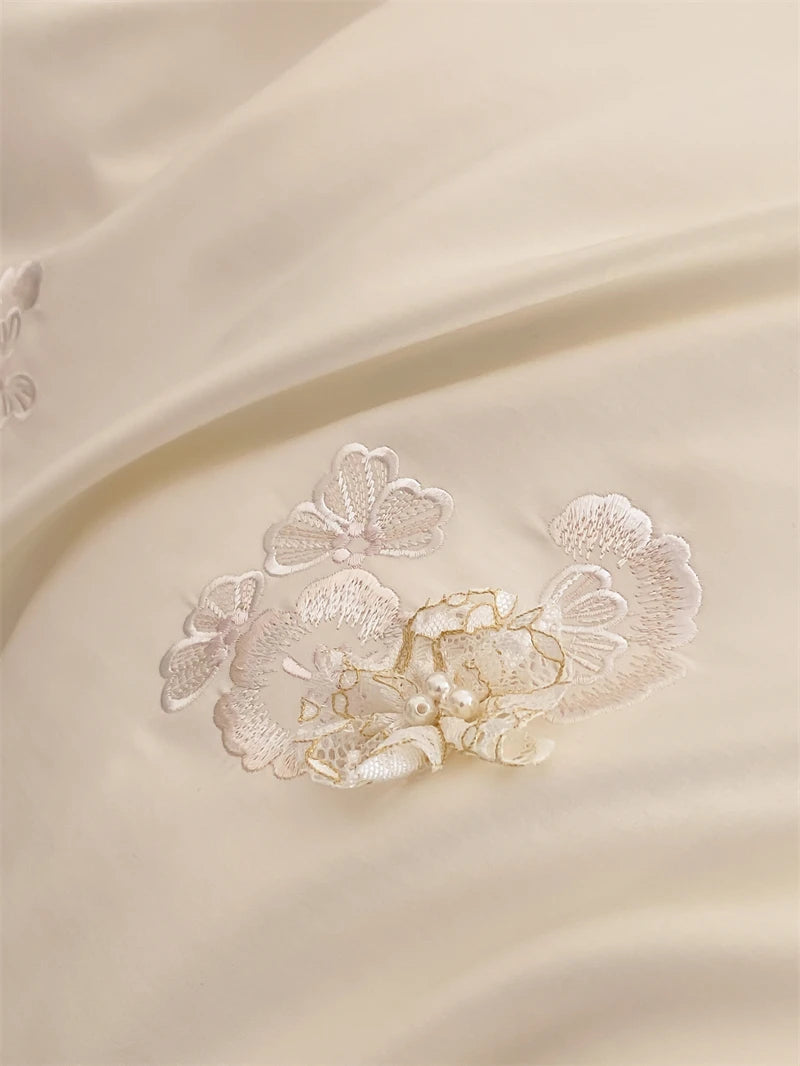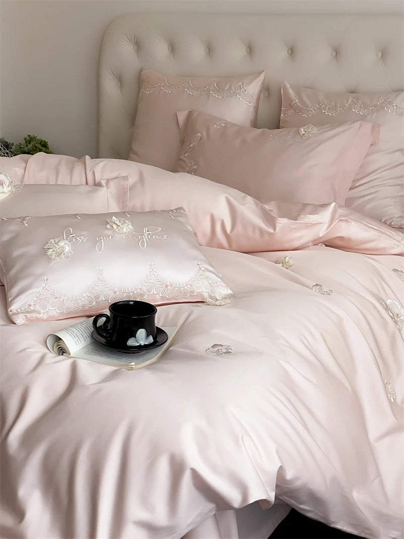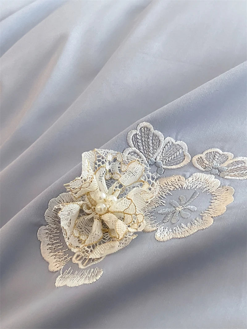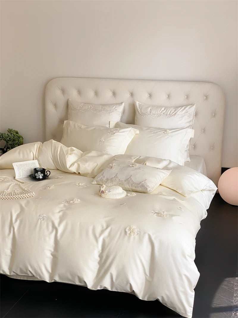 1000TC Egyptian Cotton Three-dimensional Flowers Embroidery Bedding Set Duvet Cover Set Flat/Fitted Bed Sheet Pillowcases 4Pcs
