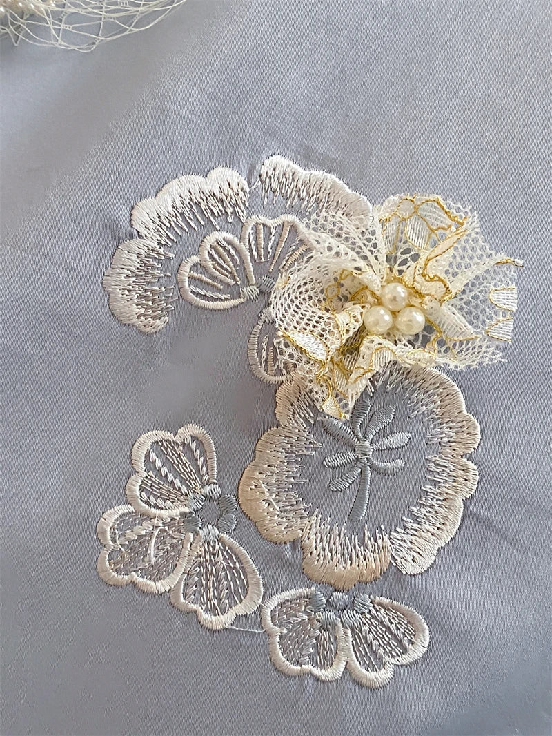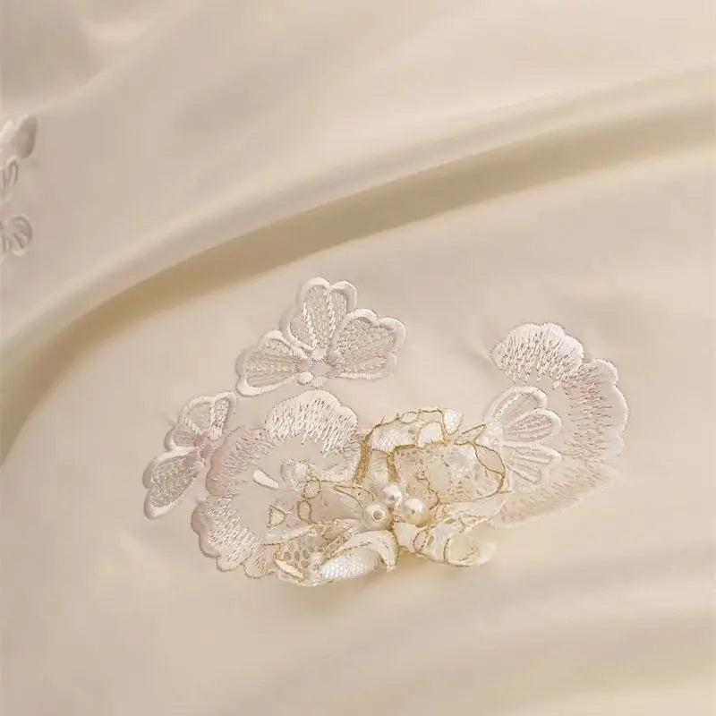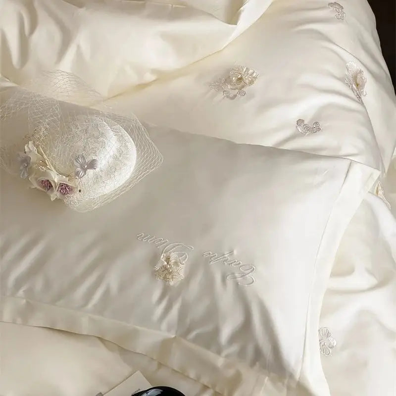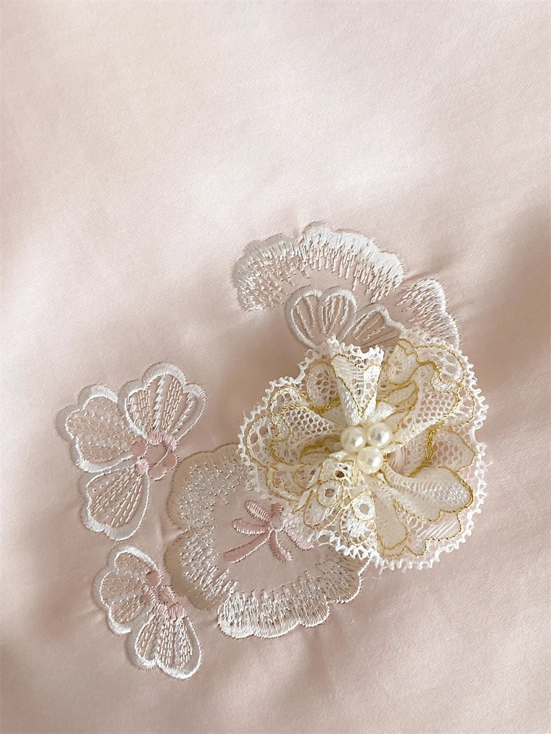 1000TC Egyptian Cotton Three-dimensional Flowers Embroidery Bedding Set Duvet Cover Set Flat/Fitted Bed Sheet Pillowcases 4Pcs