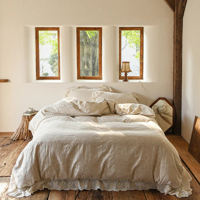 4/6Pcs Bedding Set Vintage French Flower Lace Edge Cotton and Linen Duvet Cover Flat/Fitted Bed Sheet Pillowcases Home Textiles