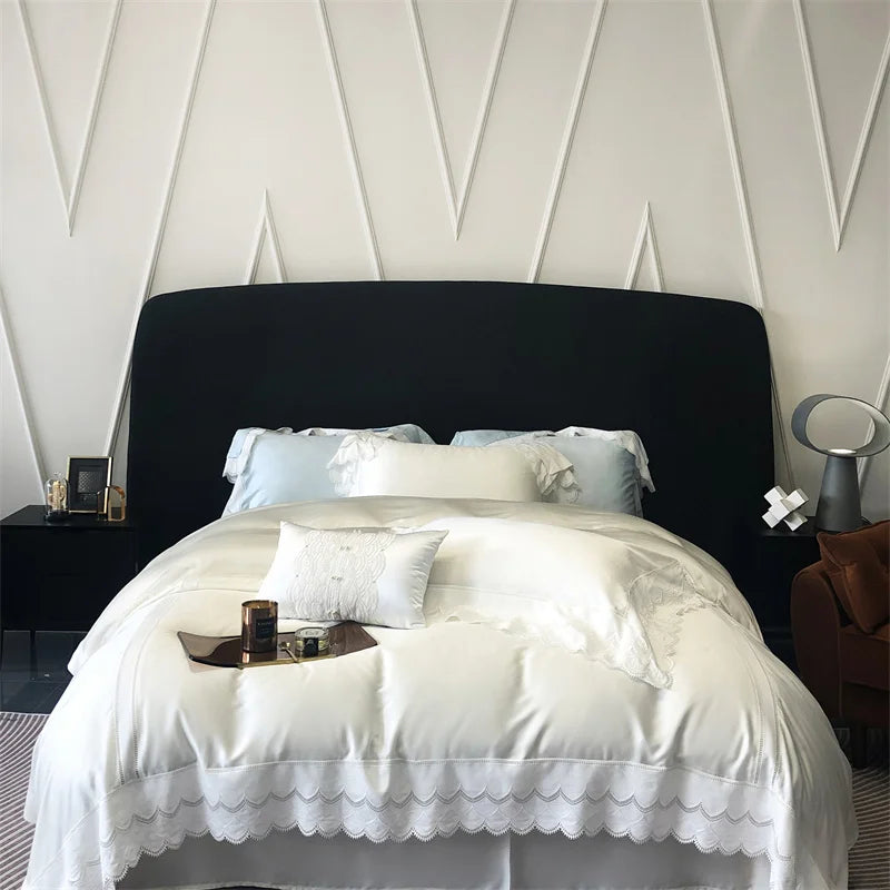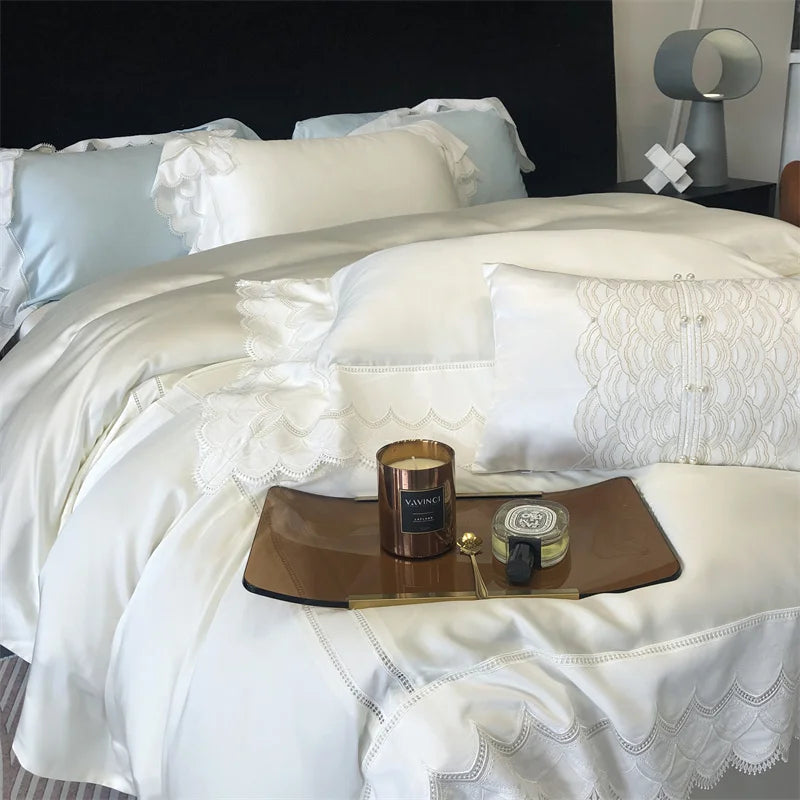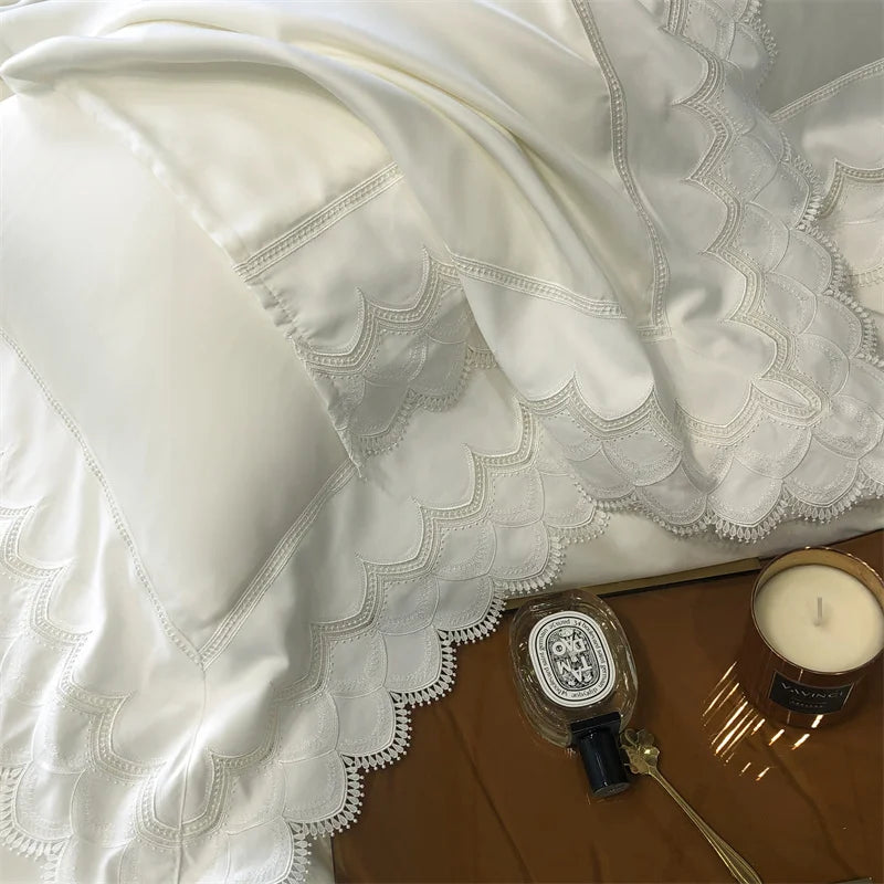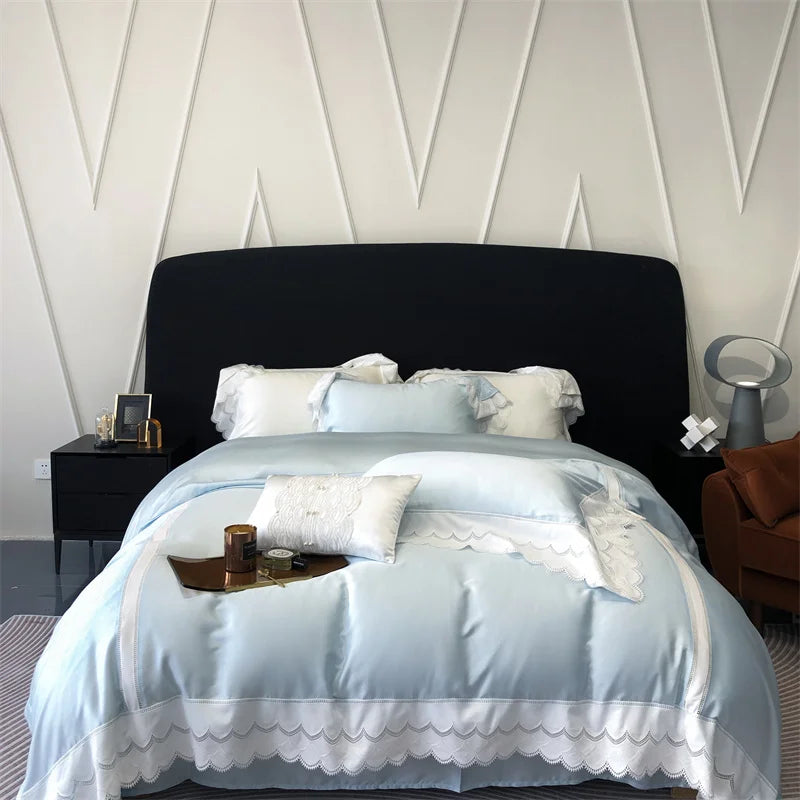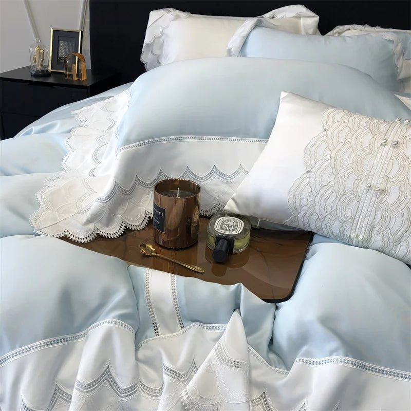 4Pcs Pink Princess Lace Edge Lyocell Eucalyptus Fiber Soft Silky Bedding Set Duvet Cover Set Bed Sheet/Fitted Sheet Pillowcases