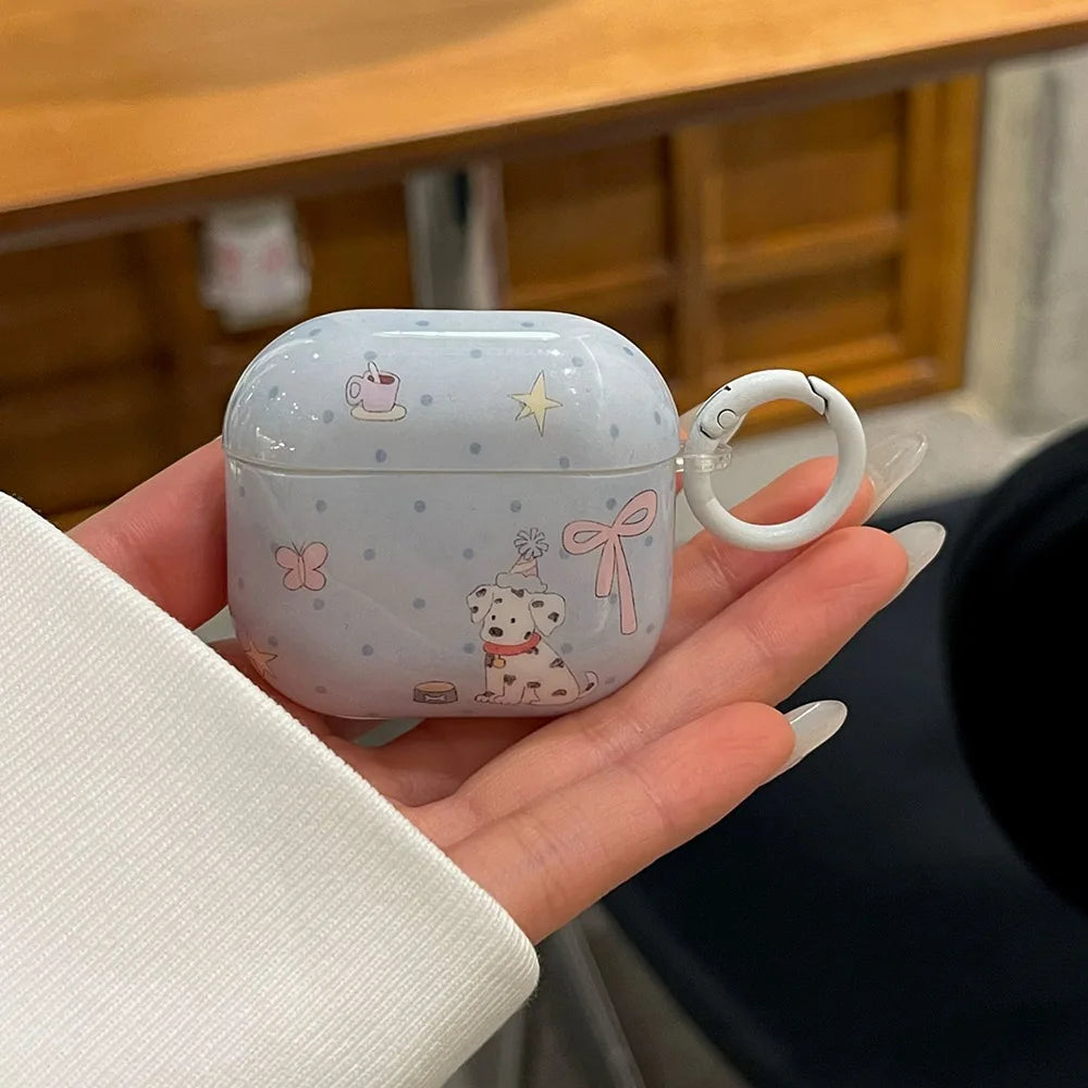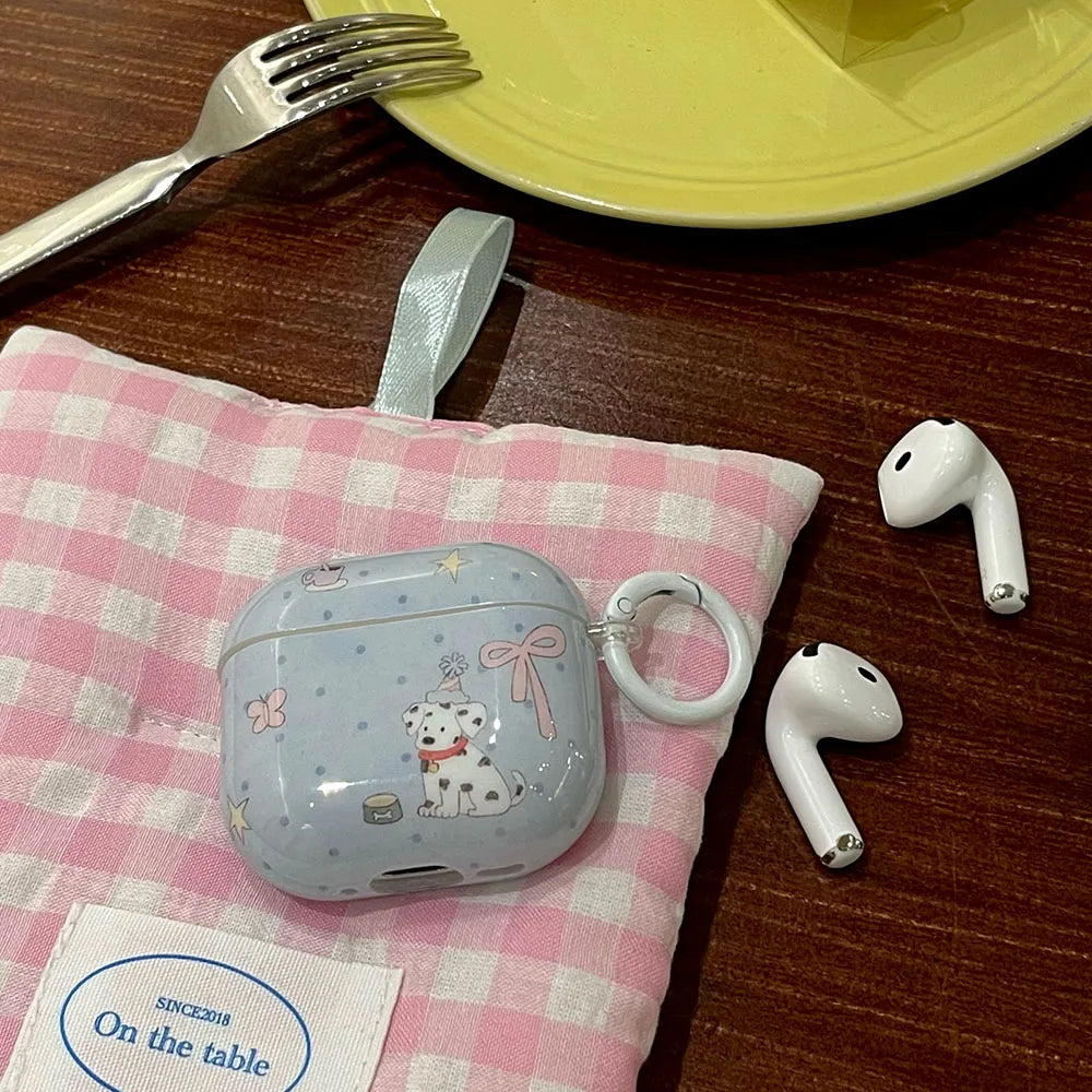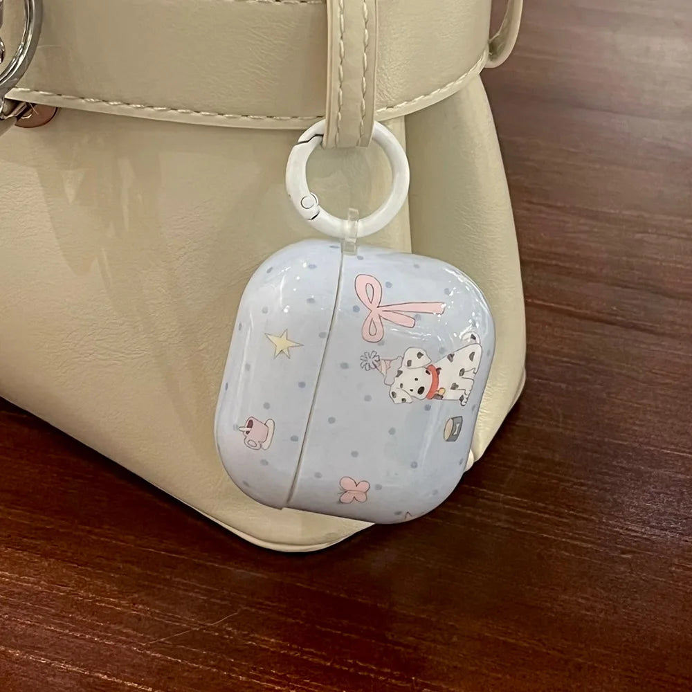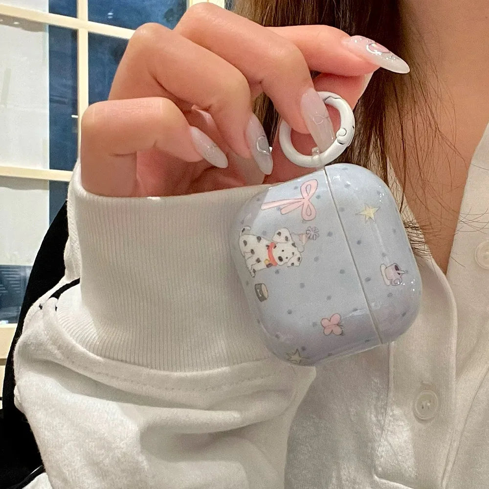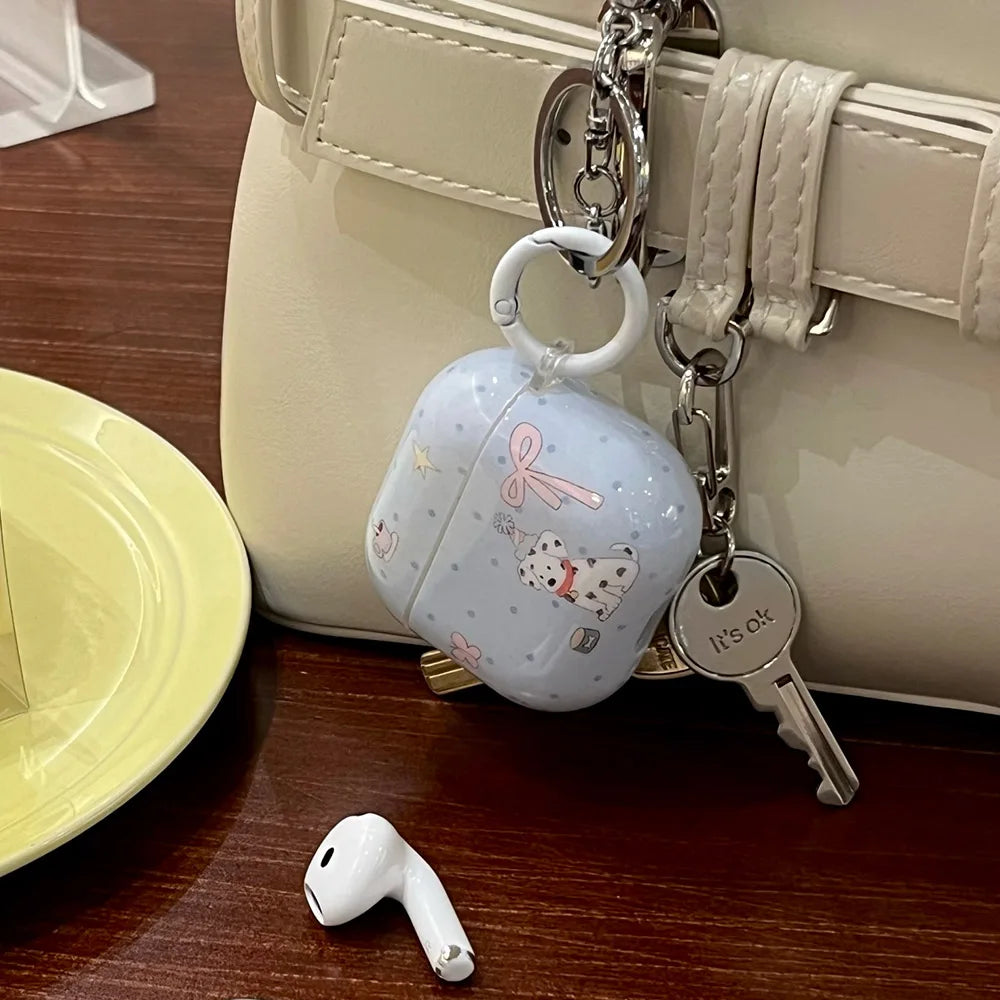 Cartoon cute dalmatian pink bow silicone earphone case for apple airpods 1 2 3 4 airpods pro 2 protection cover with keychain