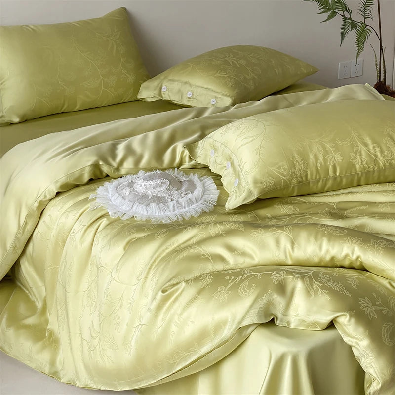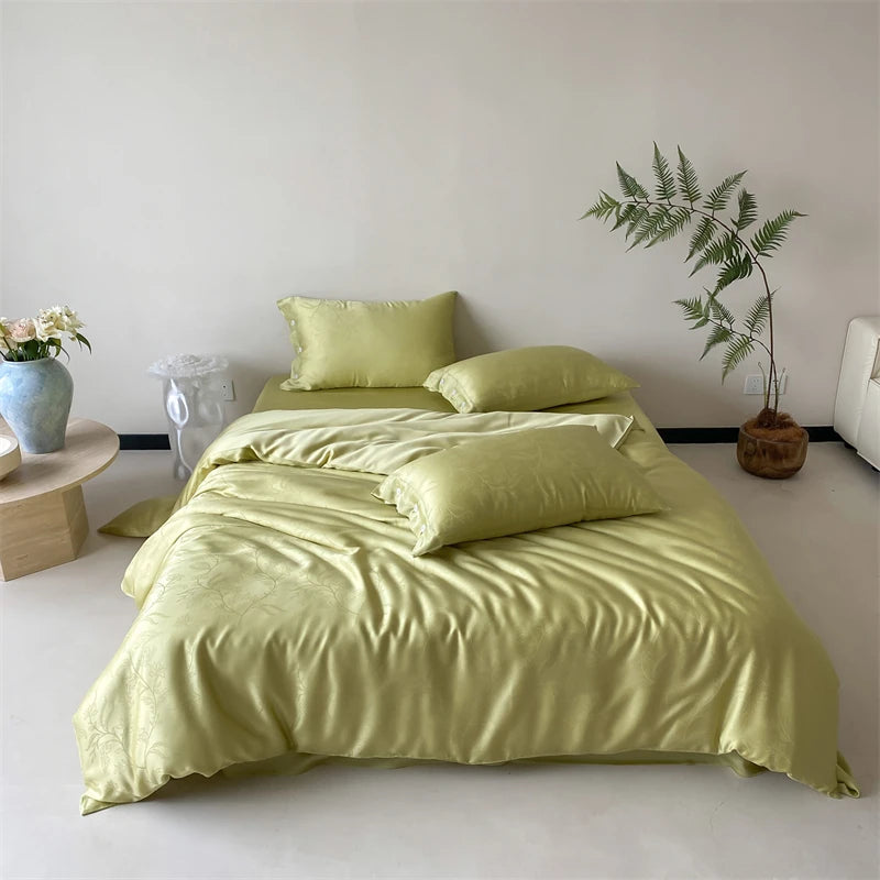 Lyocell Jacquard Soft Silky Cooling Bedding Set Single Double Queen King Duvet Cover Bed Sheet/Fitted Sheet Pillowcases 3/4Pcs
