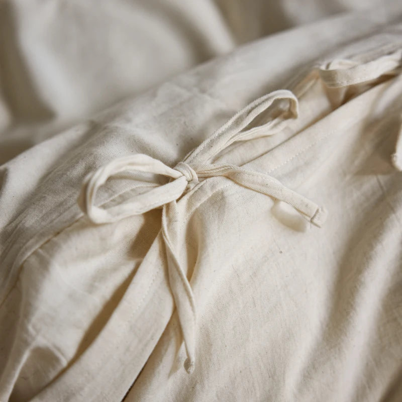 Original Cotton Linen Lace-Up Bedding Set Single Queen King Size Duvet Cover Flat/Fitted Bed Sheet Pillowcases 3/4Pcs