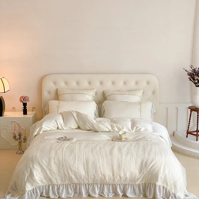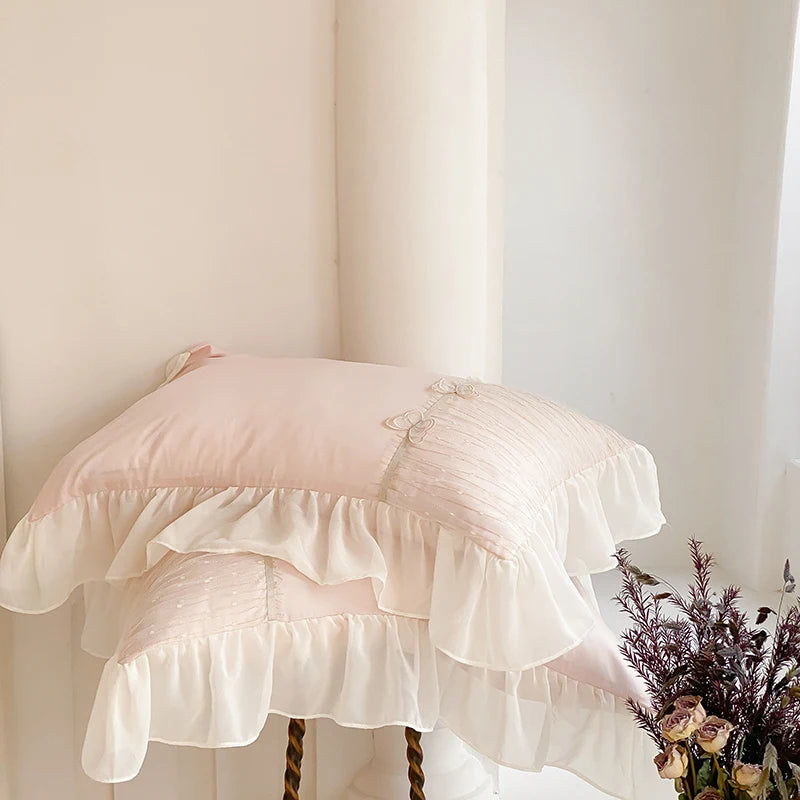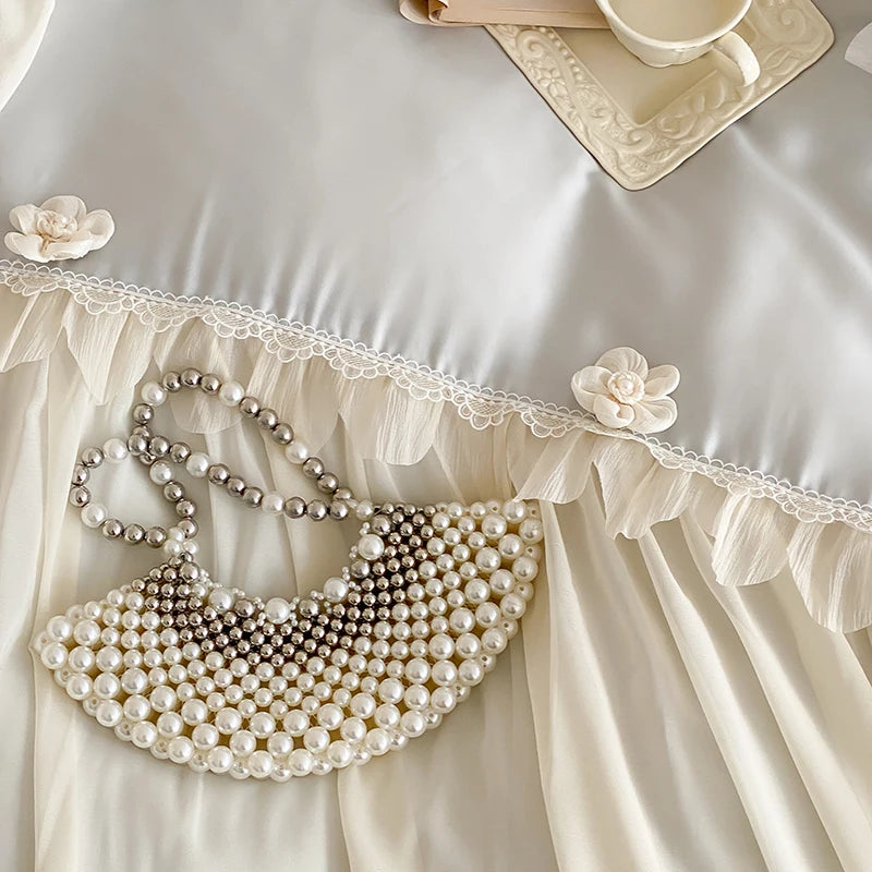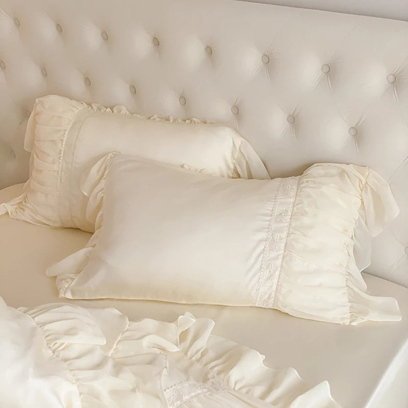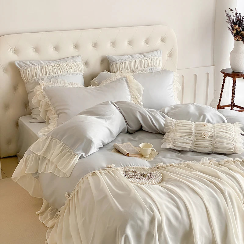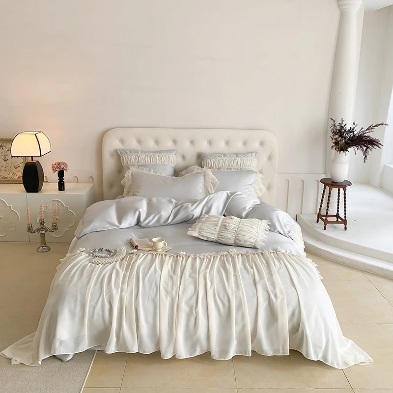Pink Romantic Lace Princess Wedding Bedding Set Lyocell Bamboo Fiber Soft Silky Duvet Cover Flat/Fitted Bed Sheet Pillowcases