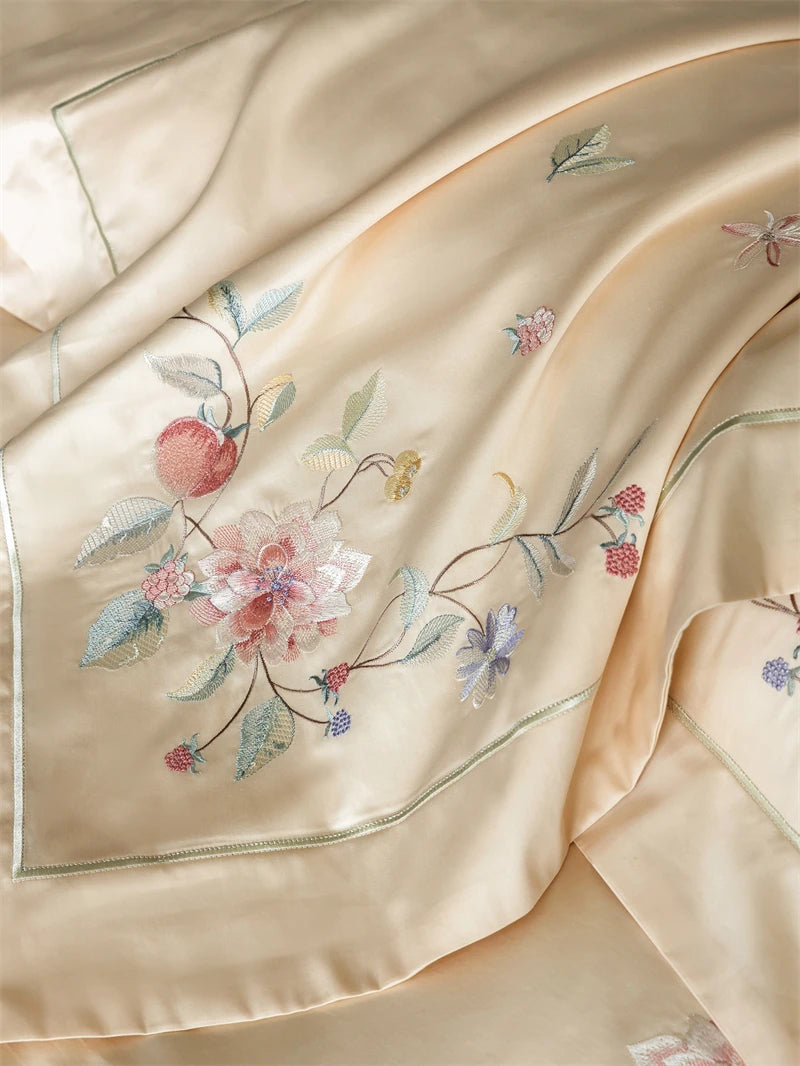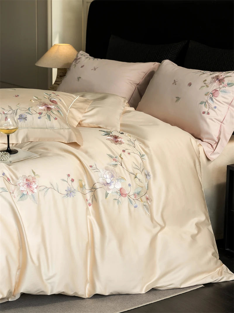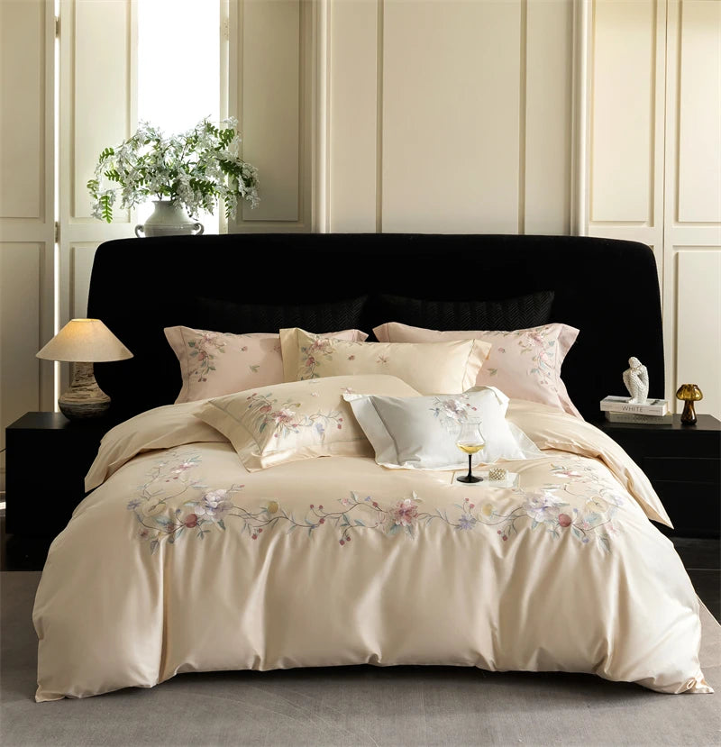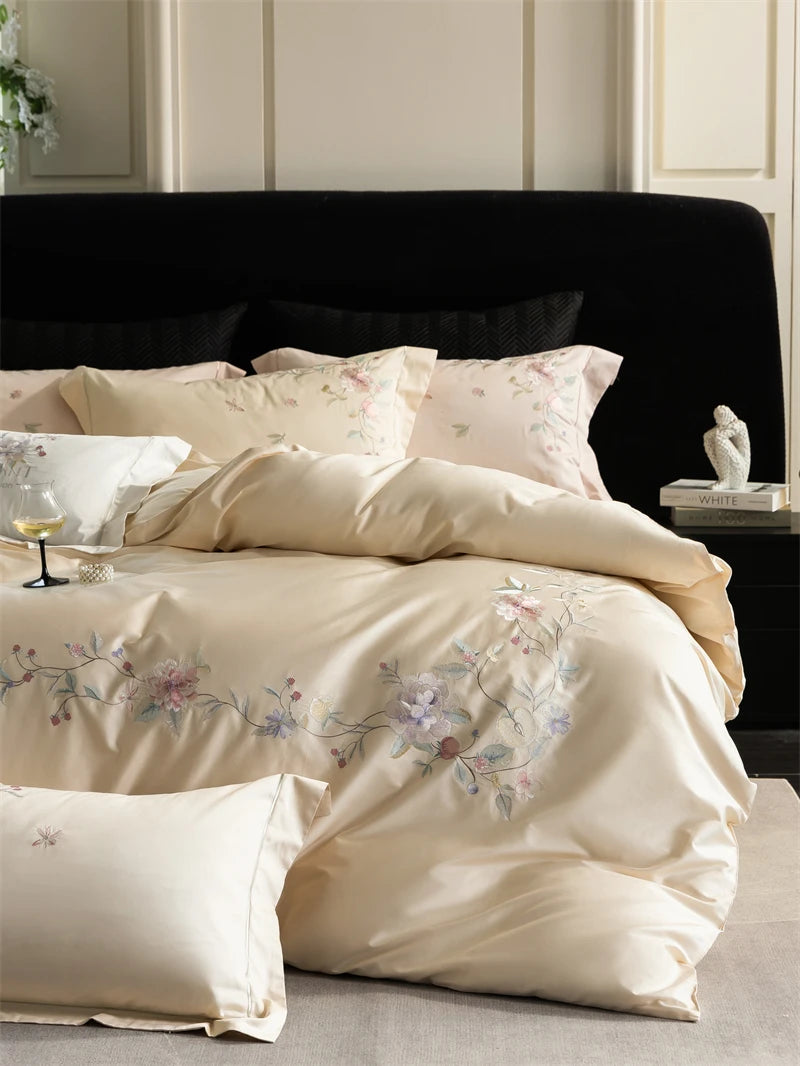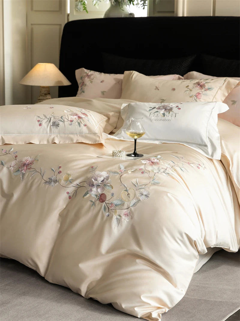 Premium 1000TC Egyptian Cotton Flowers Embroidery Pink Luxury Bedding Set Duvet Cover Flat/Fitted Bed Sheet Pillowcases 4Pcs