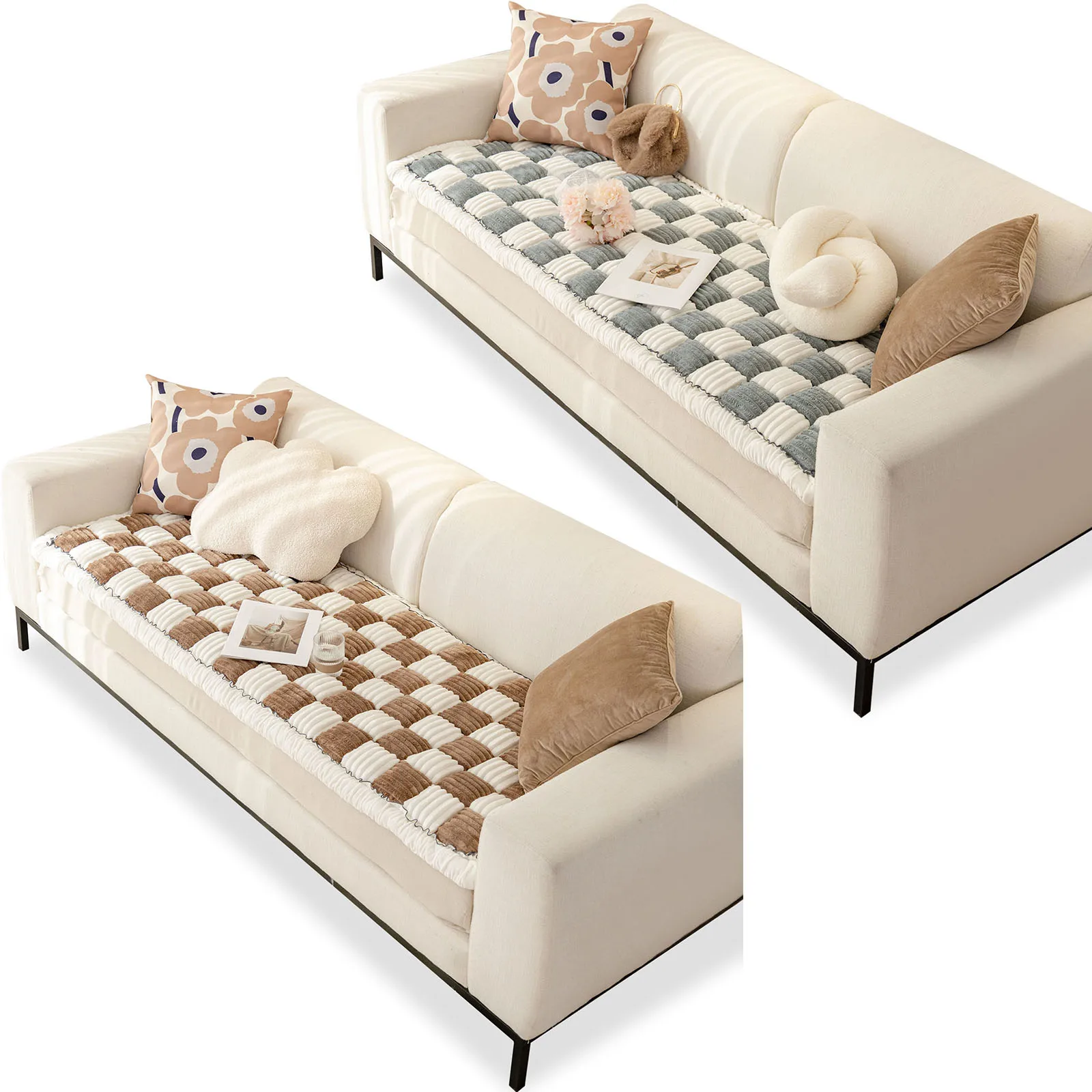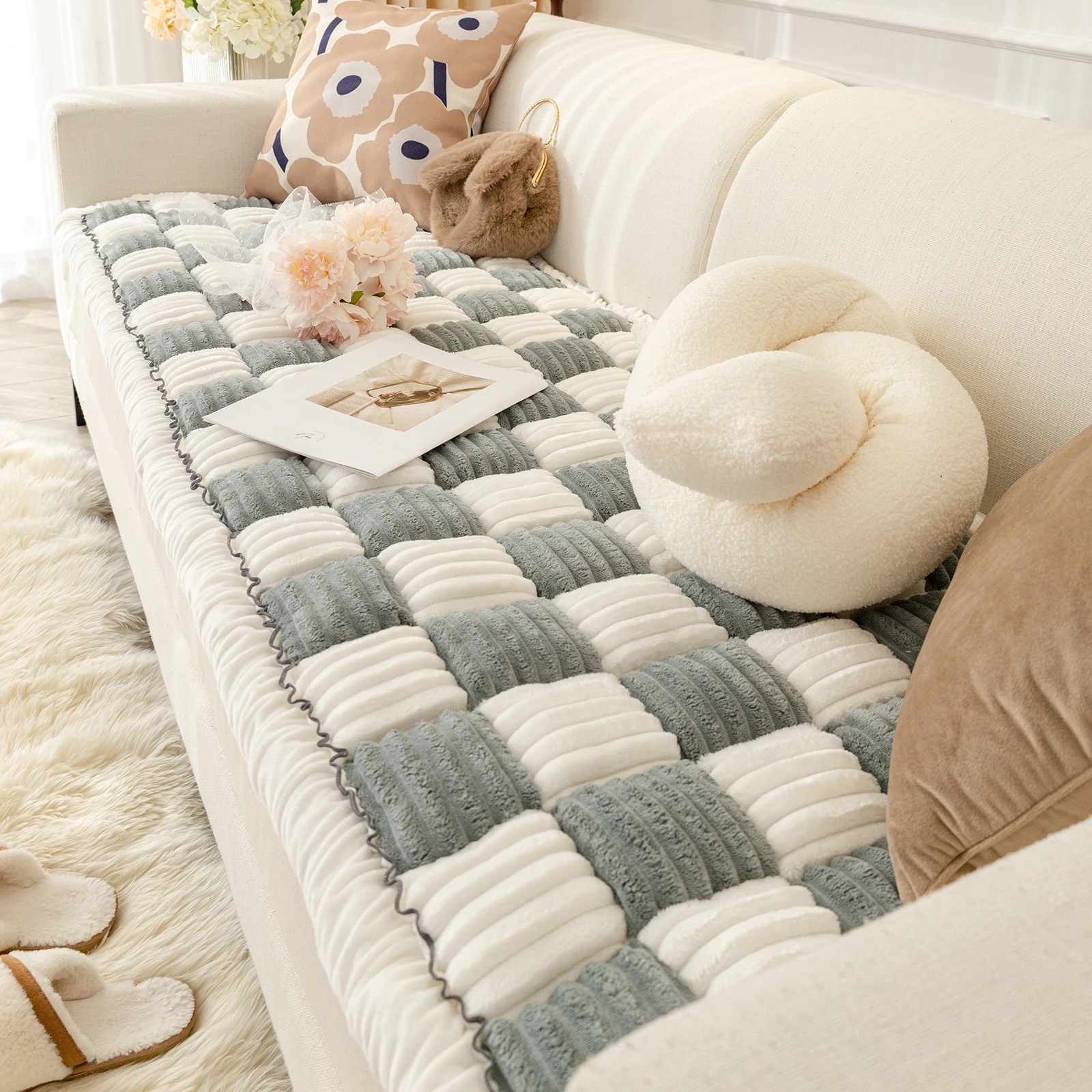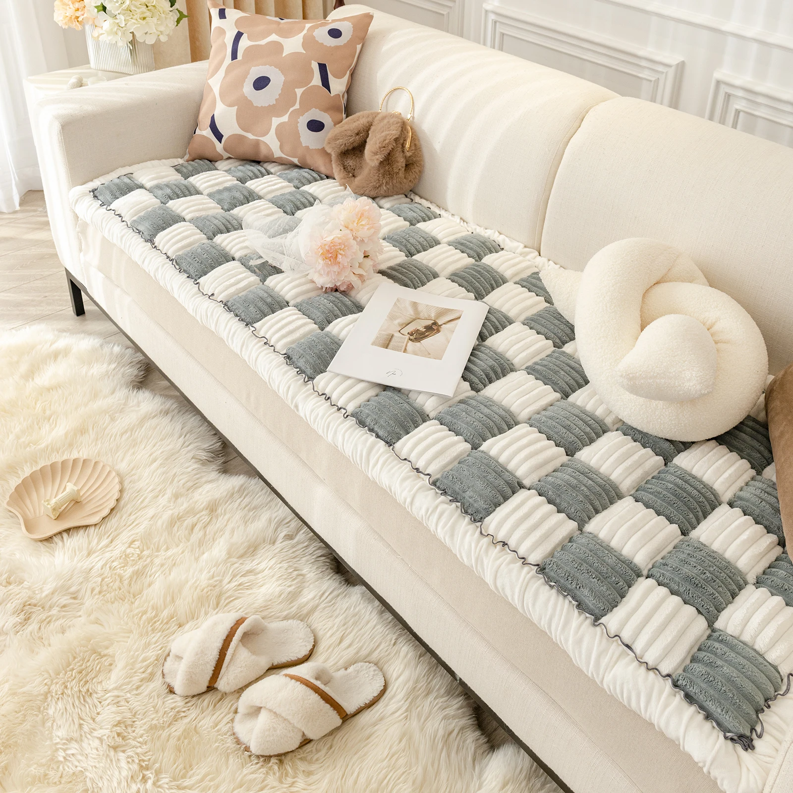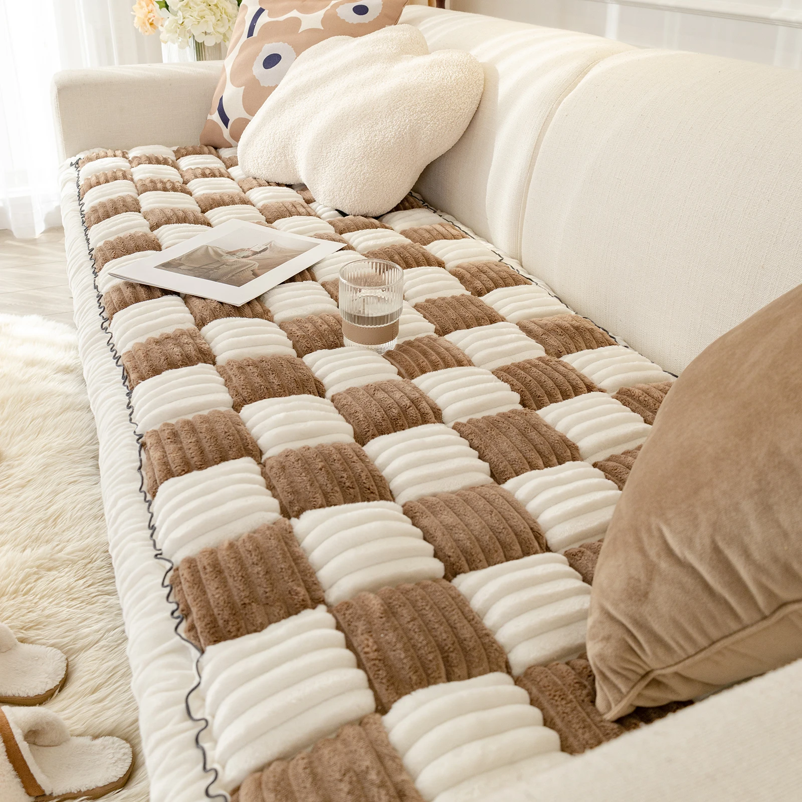 Thick Winter Sofa Covers Living Room Plaid Slipcovers Pets Mat Bed Couch Protector Non-Slip Rugs Carpet Velvet Seat Cushion Mats