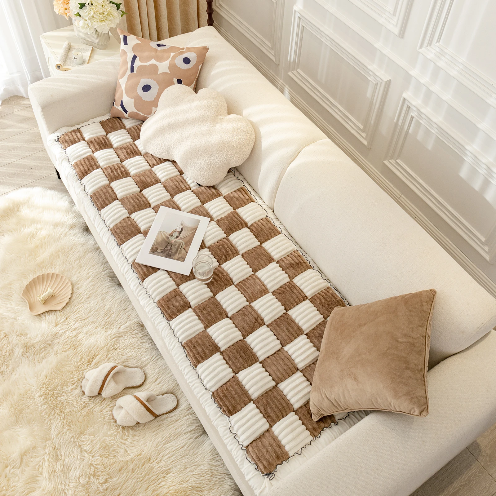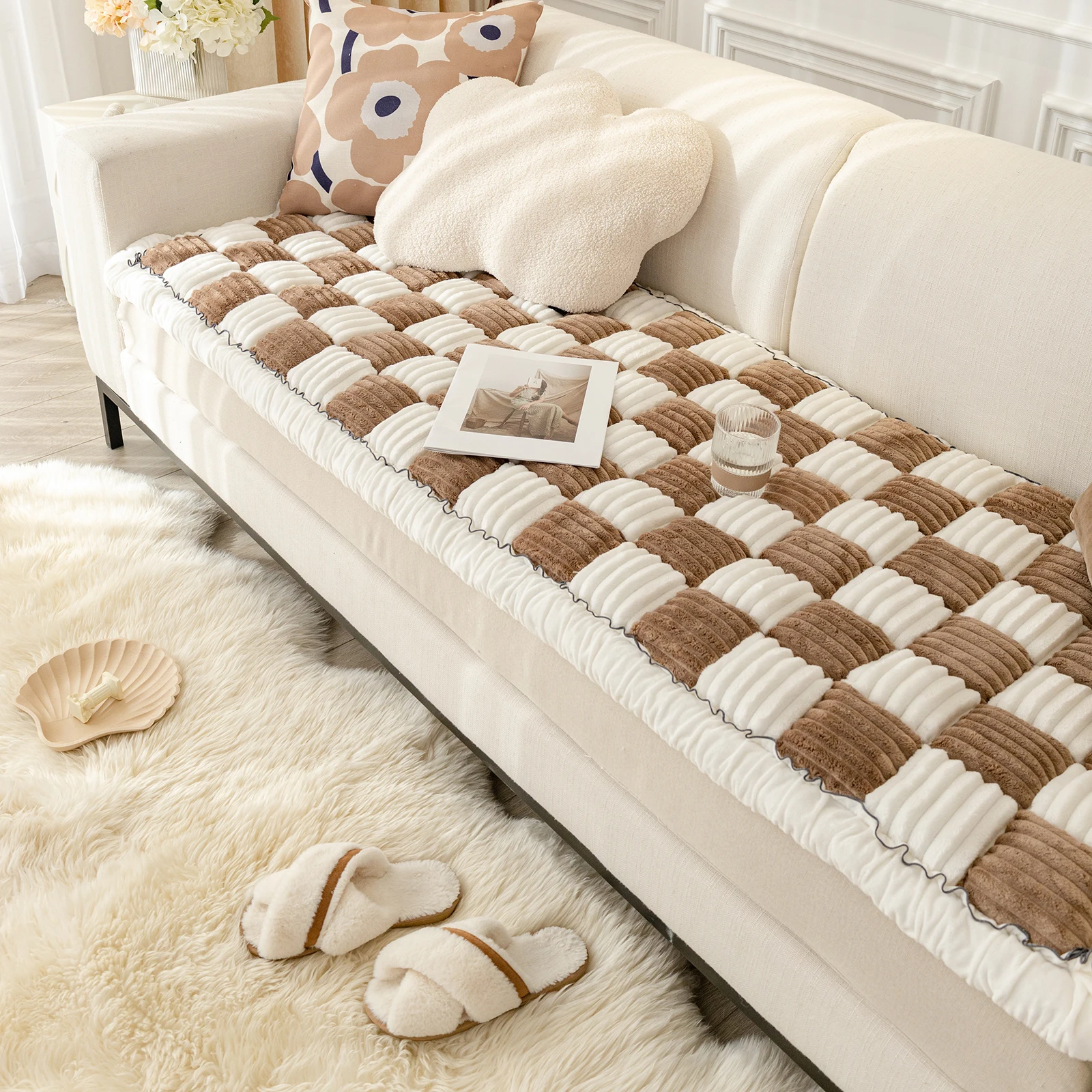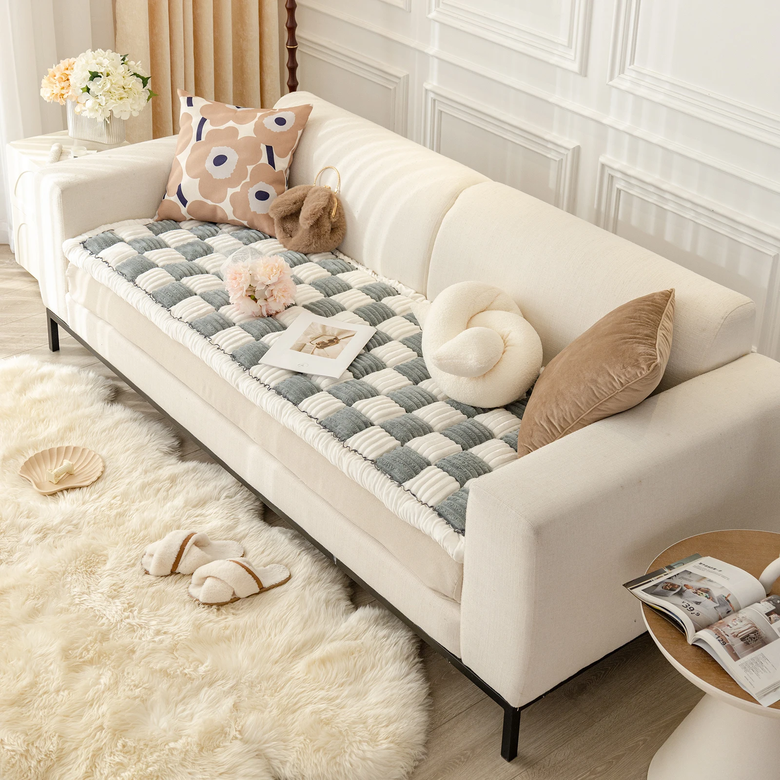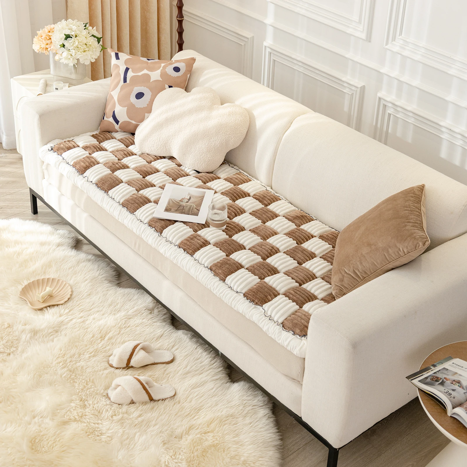 Thick Winter Sofa Covers Living Room Plaid Slipcovers Pets Mat Bed Couch Protector Non-Slip Rugs Carpet Velvet Seat Cushion Mats