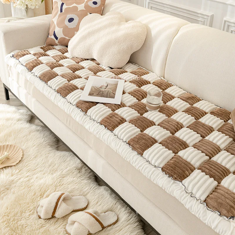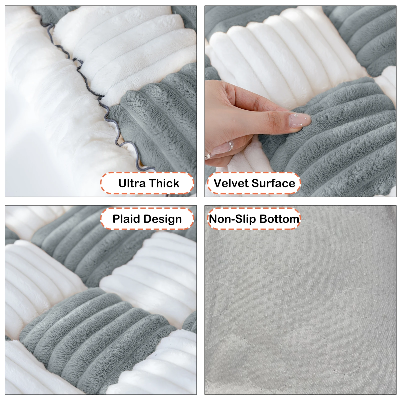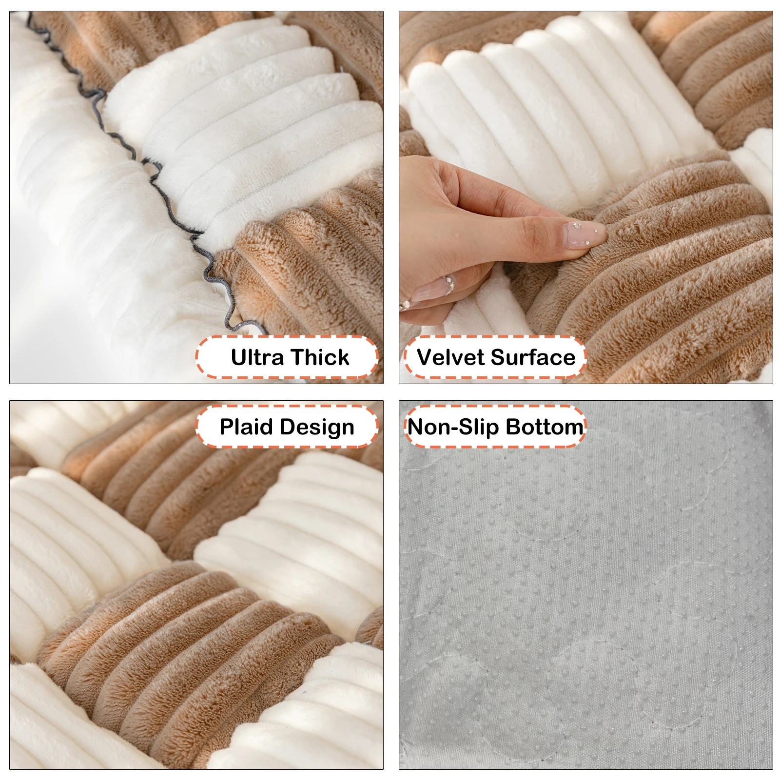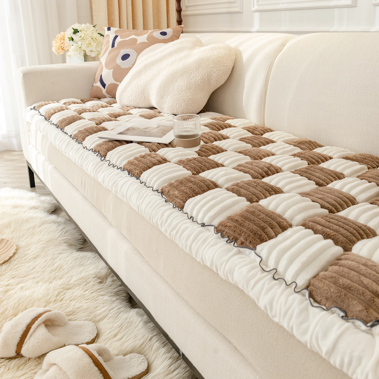 Thick Winter Sofa Covers Living Room Plaid Slipcovers Pets Mat Bed Couch Protector Non-Slip Rugs Carpet Velvet Seat Cushion Mats