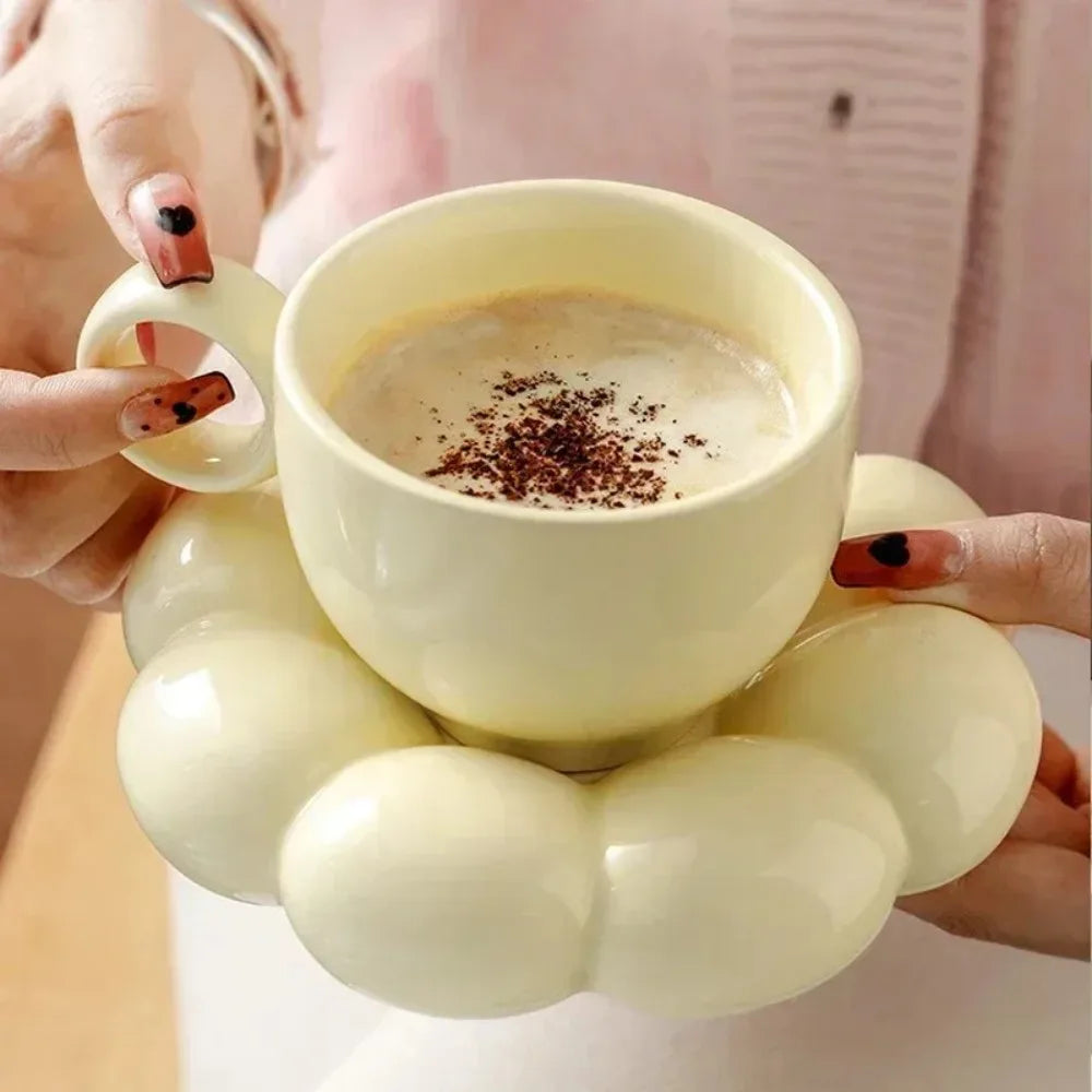 200ml Ceramic Mug Cute Cloud Decorative Plate Coffee Cup Set Creative Ceramic Cup Gift Box Modern Living Room Home Decoration
