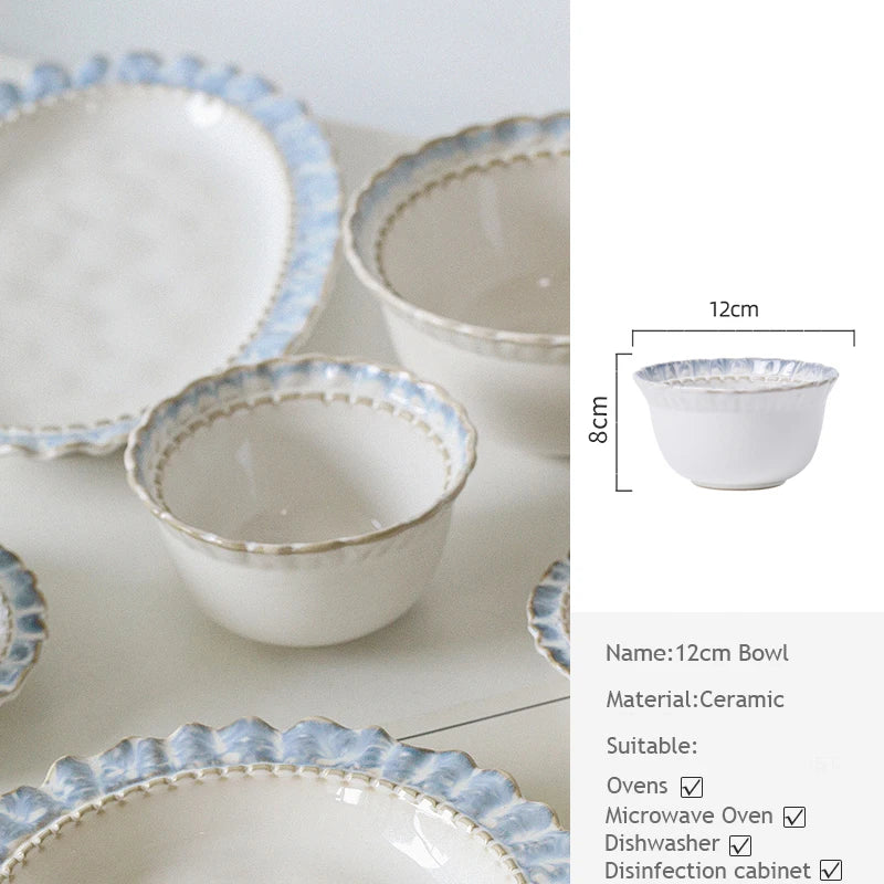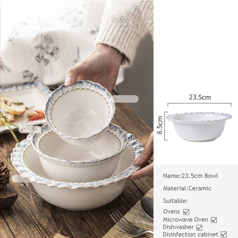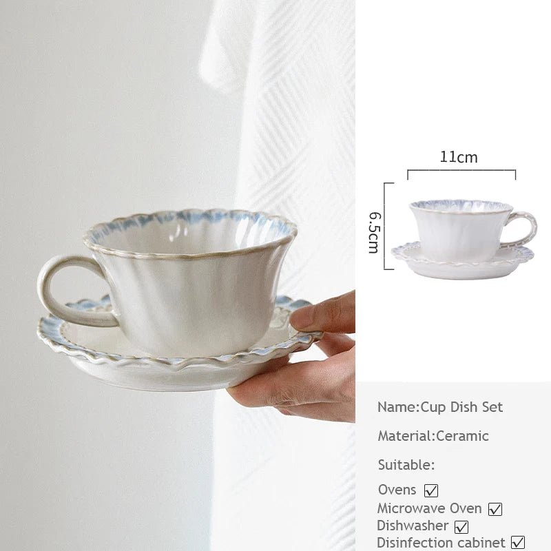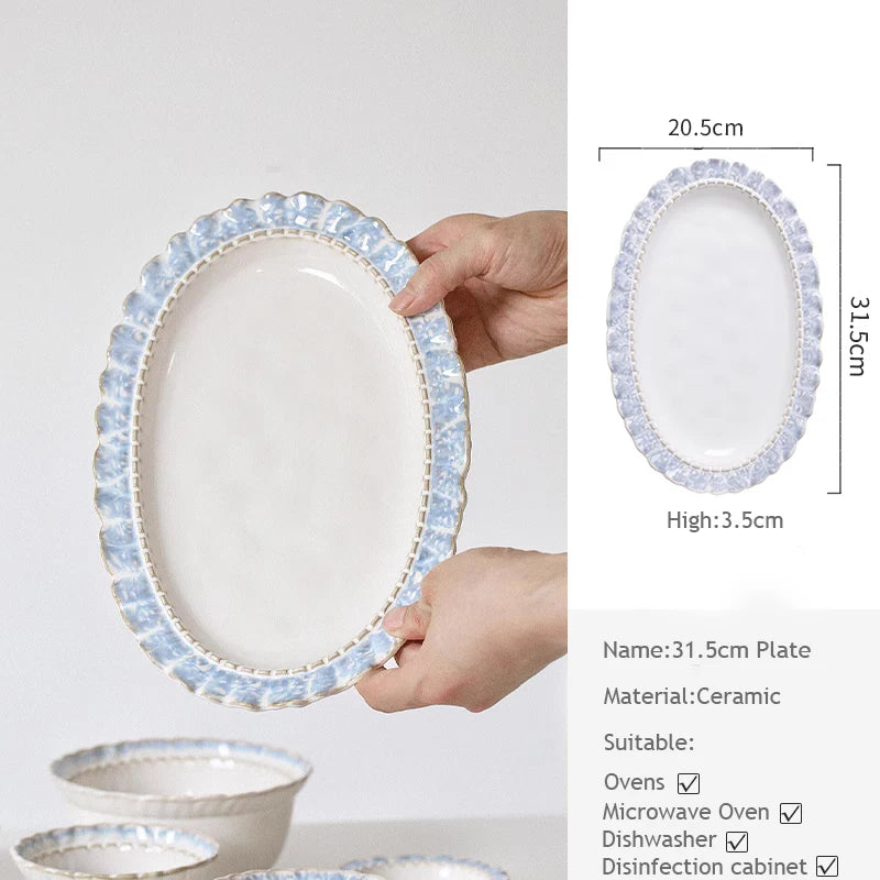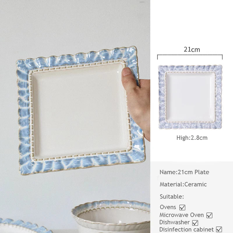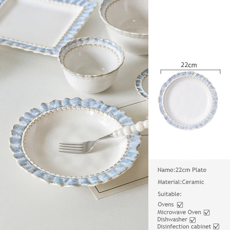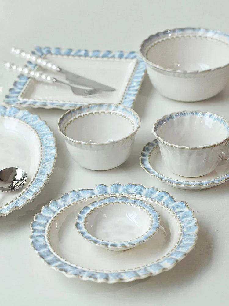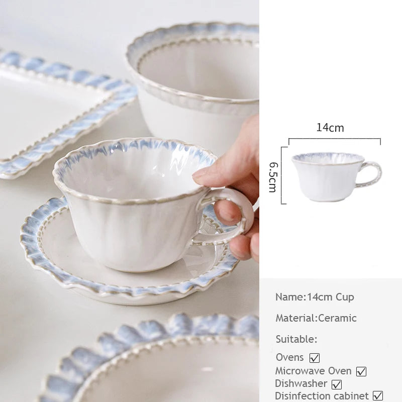 European-Style Court Ceramic Lace Staple Plate, Simple Blue Breakfast Mug, Underglaze Coffee Mug, Home Tableware Set